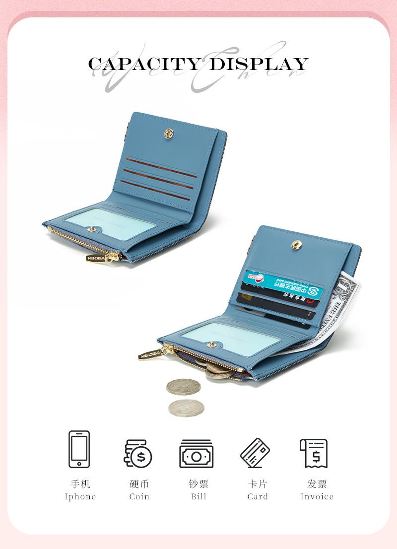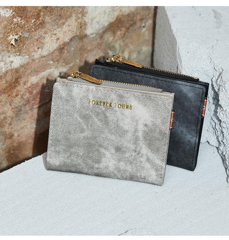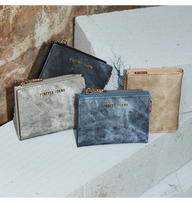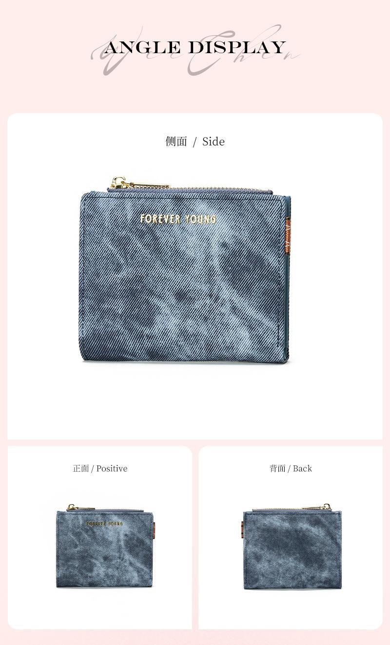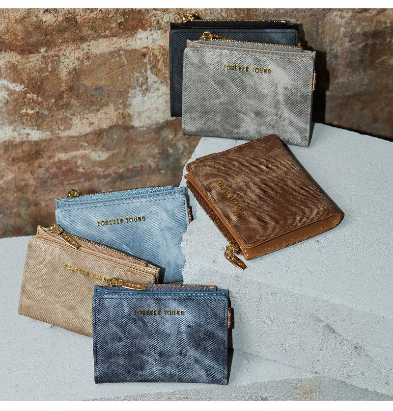 Cartera Forever Young para mujer, estilo coreano corto, monedero de alta calidad con dos pliegues y tarjetero de PU.