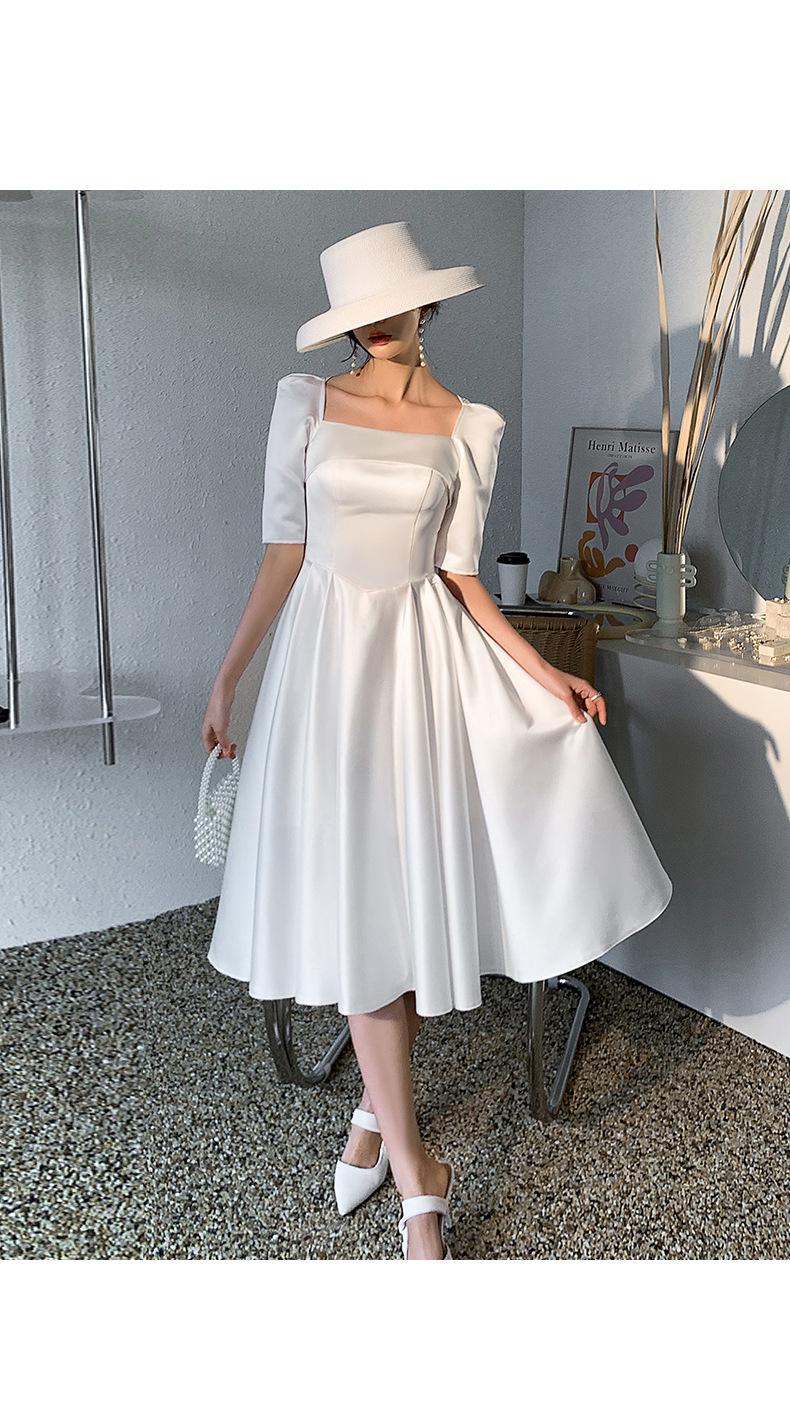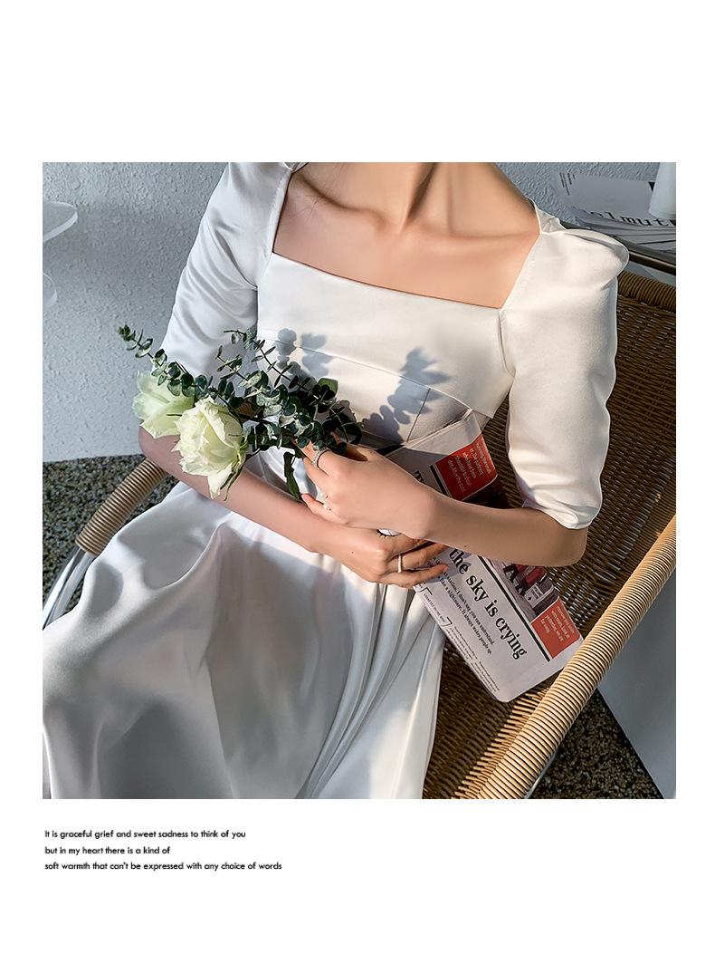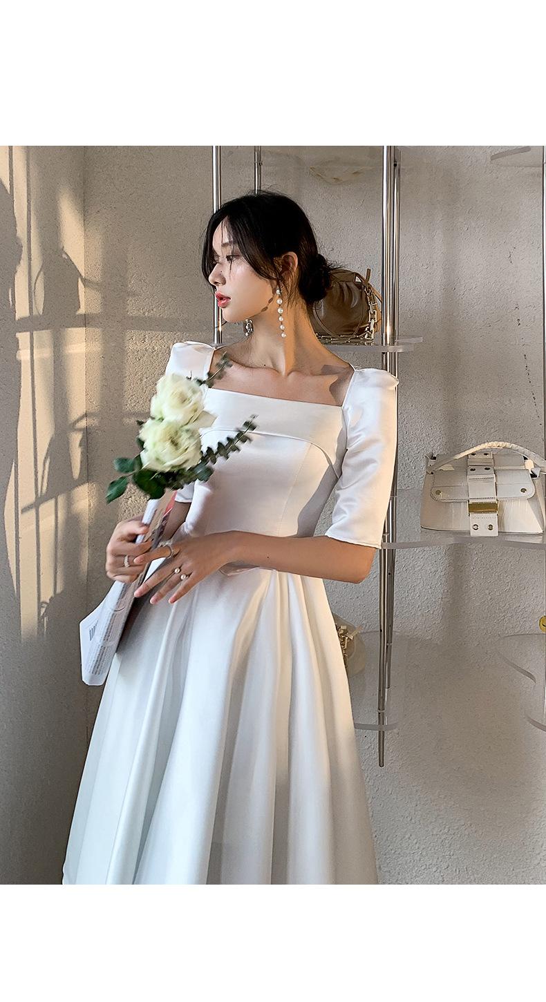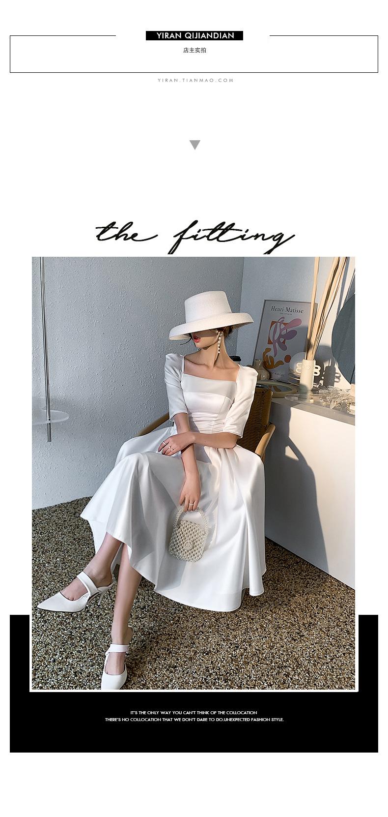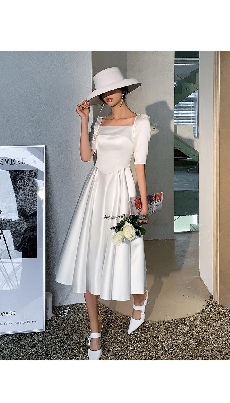 Vestido de noche blanco para mujer 2021 primavera y verano nuevo temperamento para banquete satén compromiso vestido de novia ligero para obtener un certificado de vestido blanco pequeño