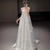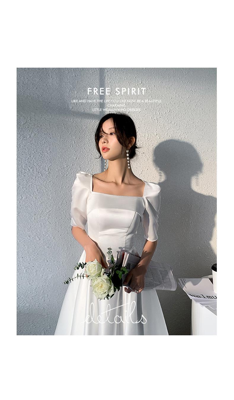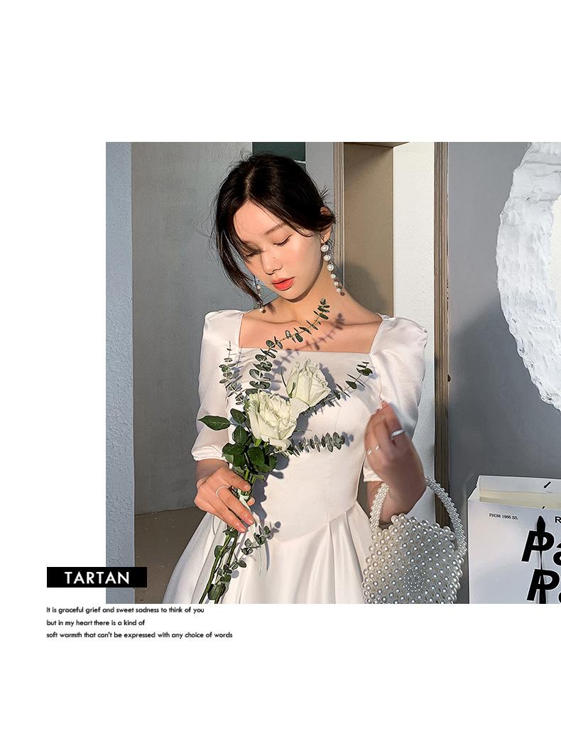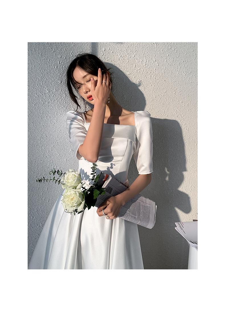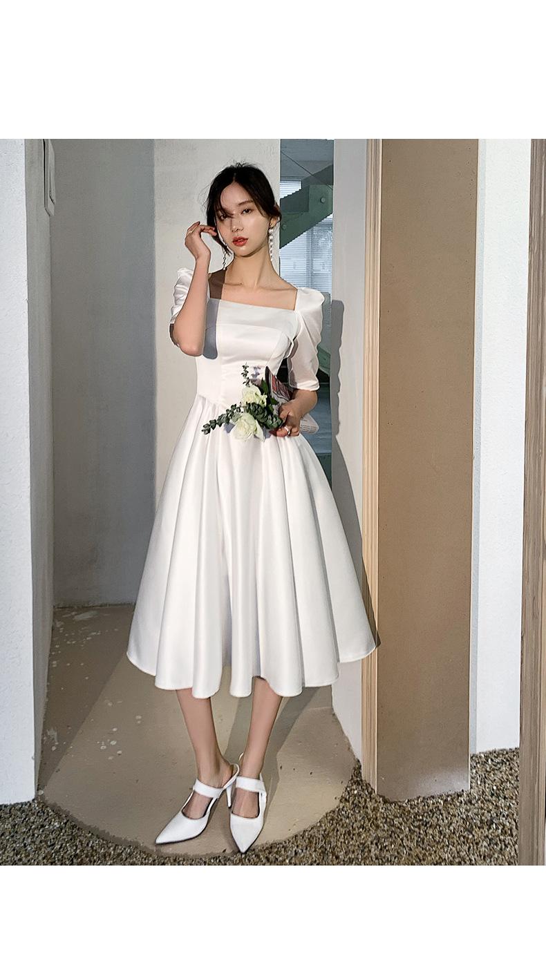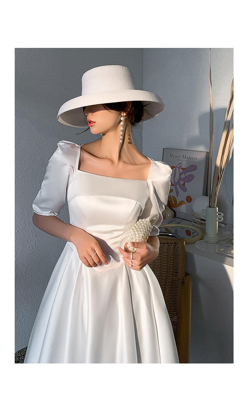 Vestido de noche blanco para mujer 2021 primavera y verano nuevo temperamento para banquete satén compromiso vestido de novia ligero para obtener un certificado de vestido blanco pequeño