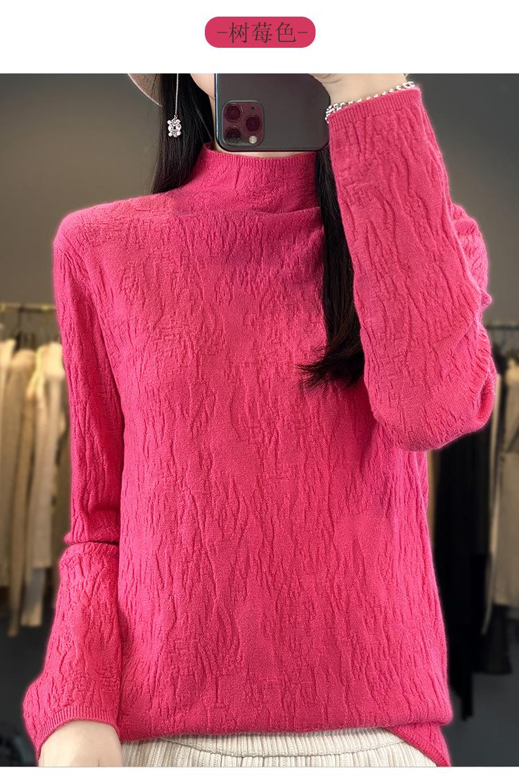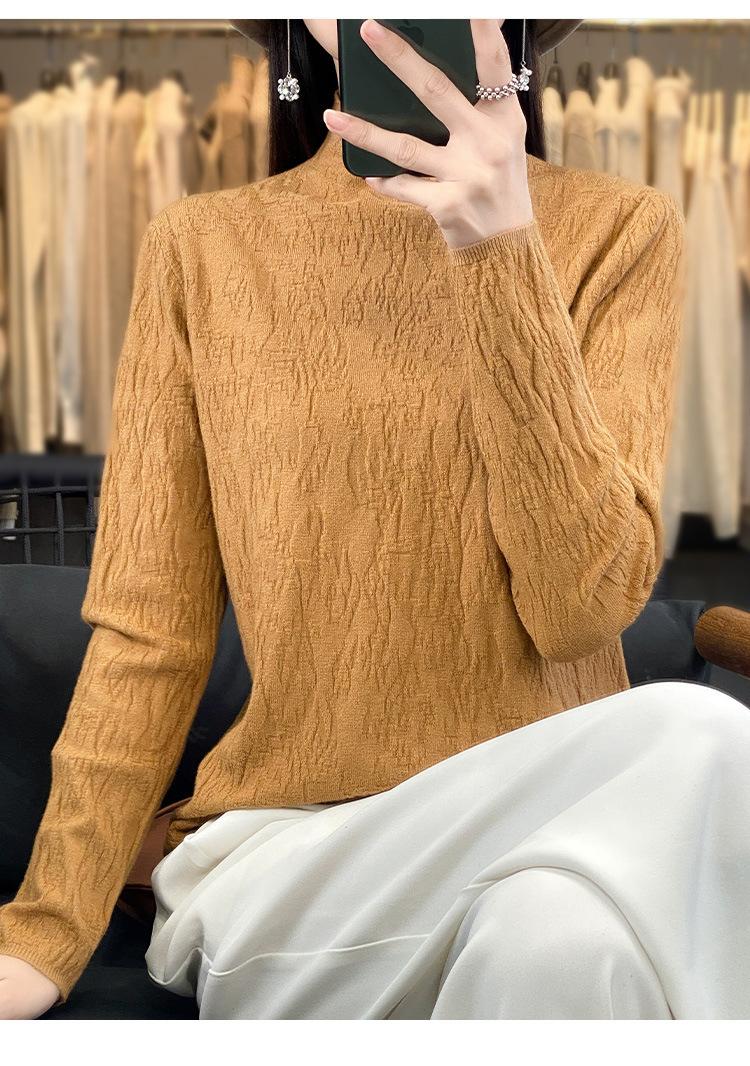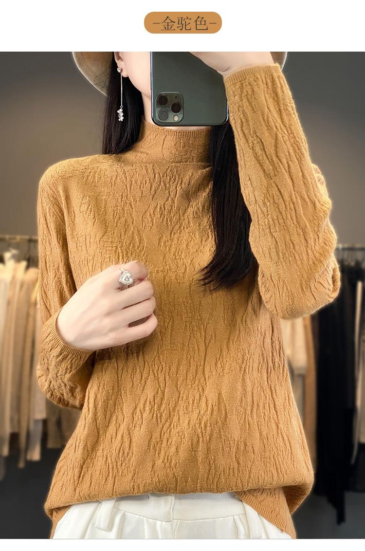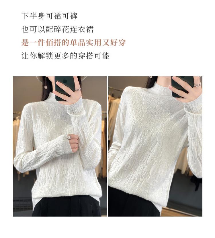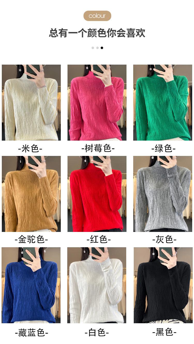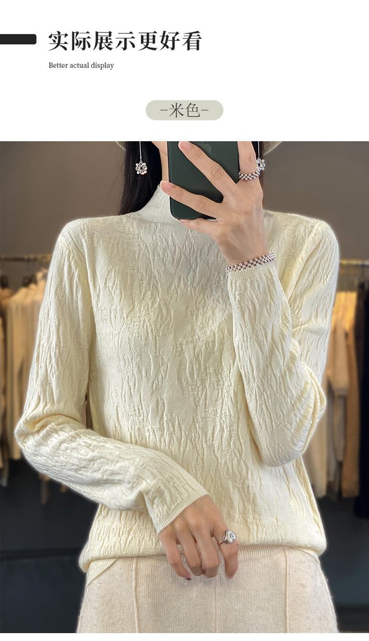 2023 Otoño/Invierno Nuevo Camiseta Base Versátil de Color Sólido con Cuello Medio Alto para Mujer, Suéter de Terciopelo Andy de Corte Ajustado Estilo Europeo para Mujer