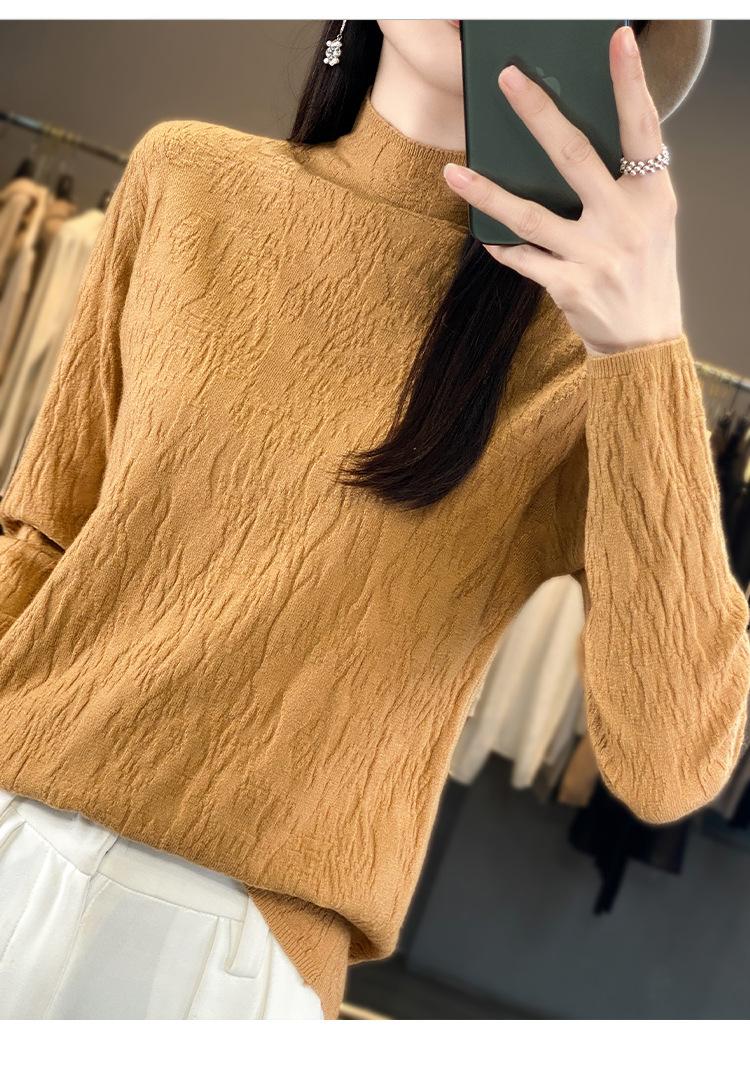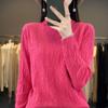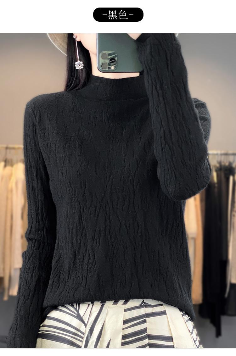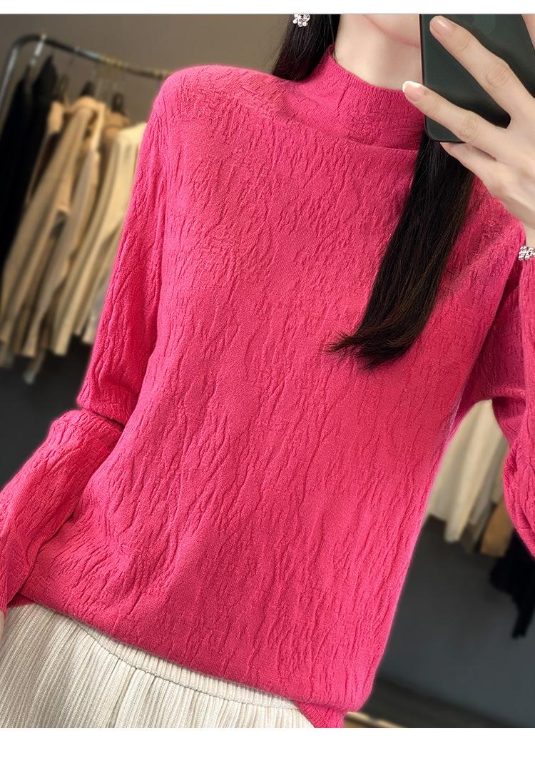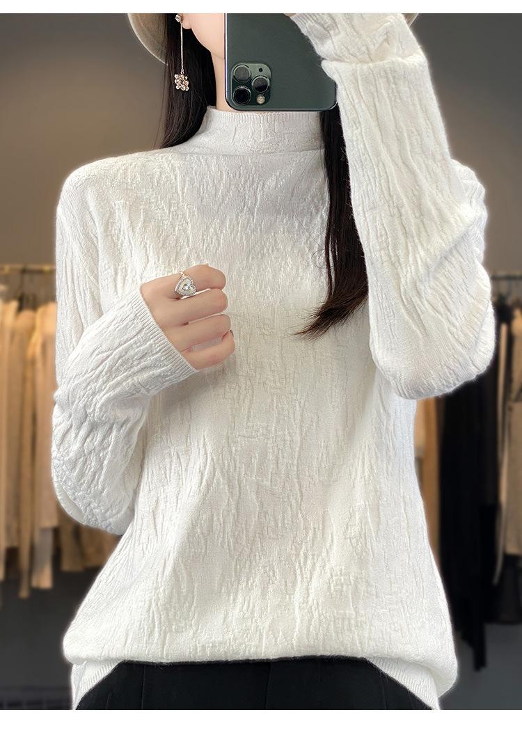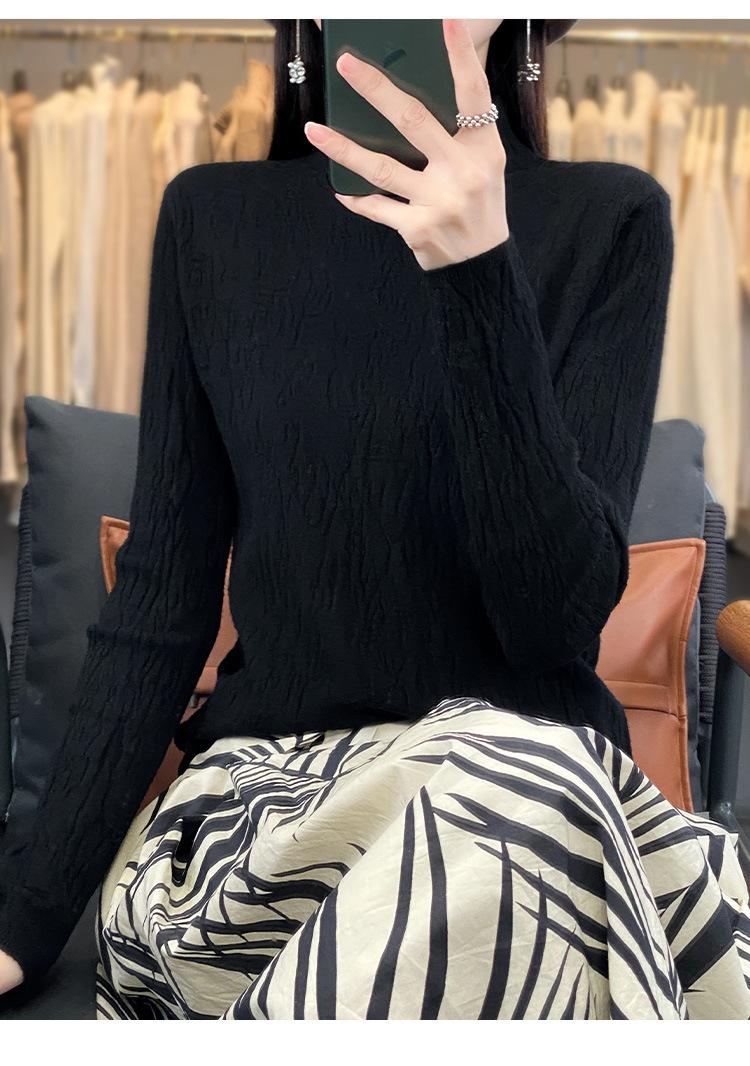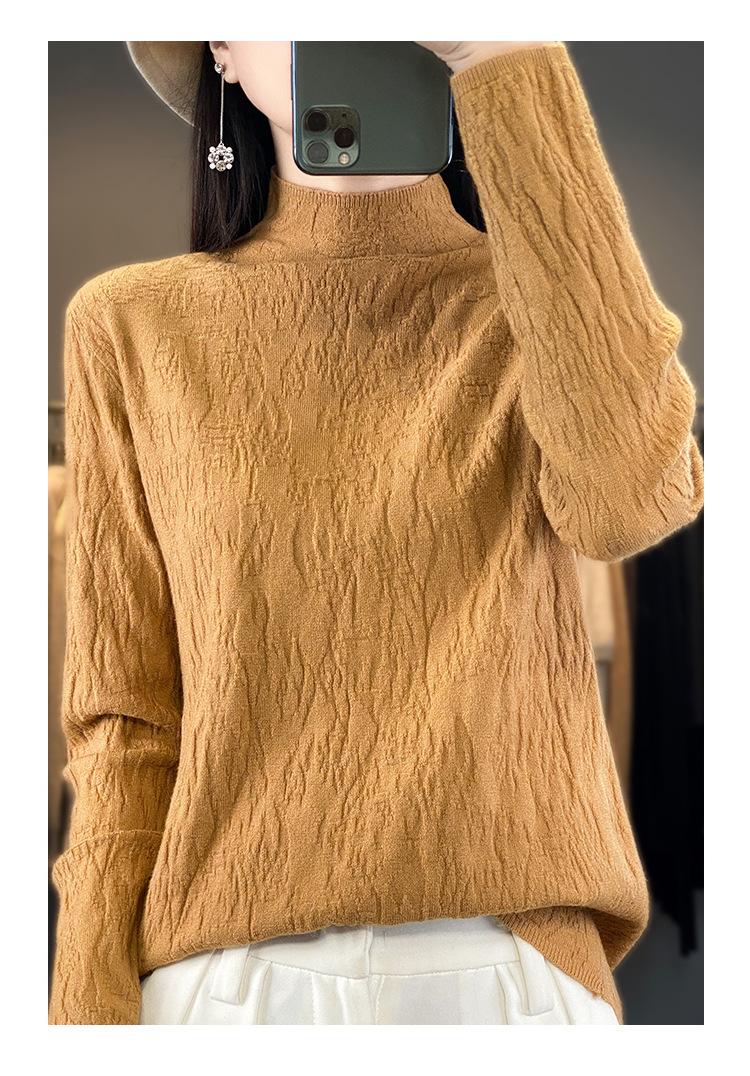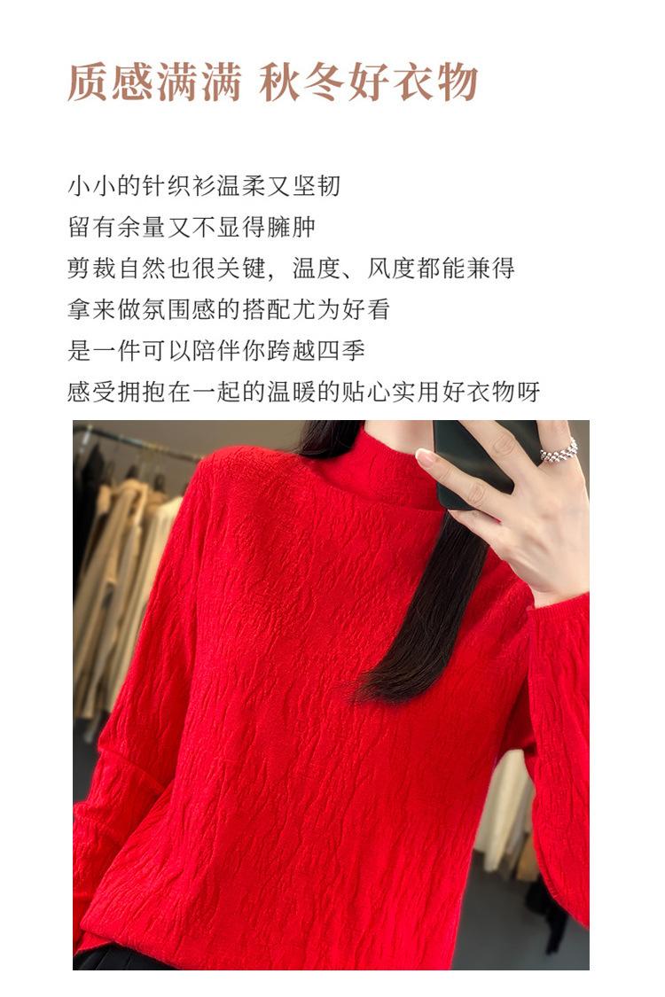 2023 Otoño/Invierno Nuevo Camiseta Base Versátil de Color Sólido con Cuello Medio Alto para Mujer, Suéter de Terciopelo Andy de Corte Ajustado Estilo Europeo para Mujer