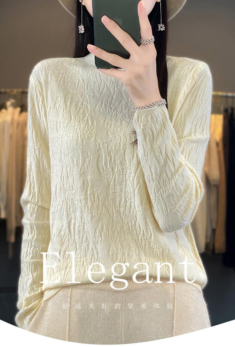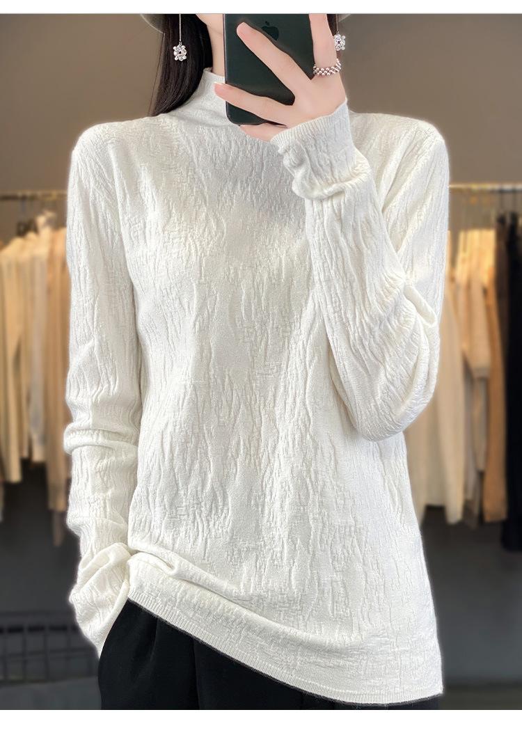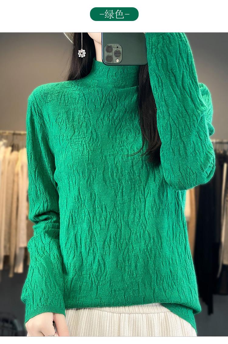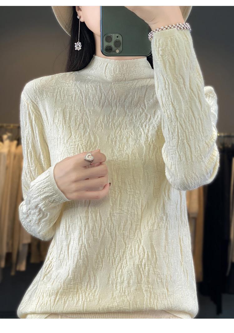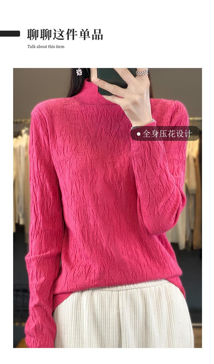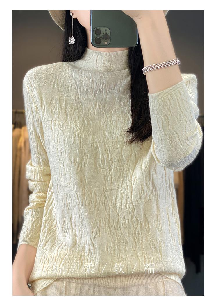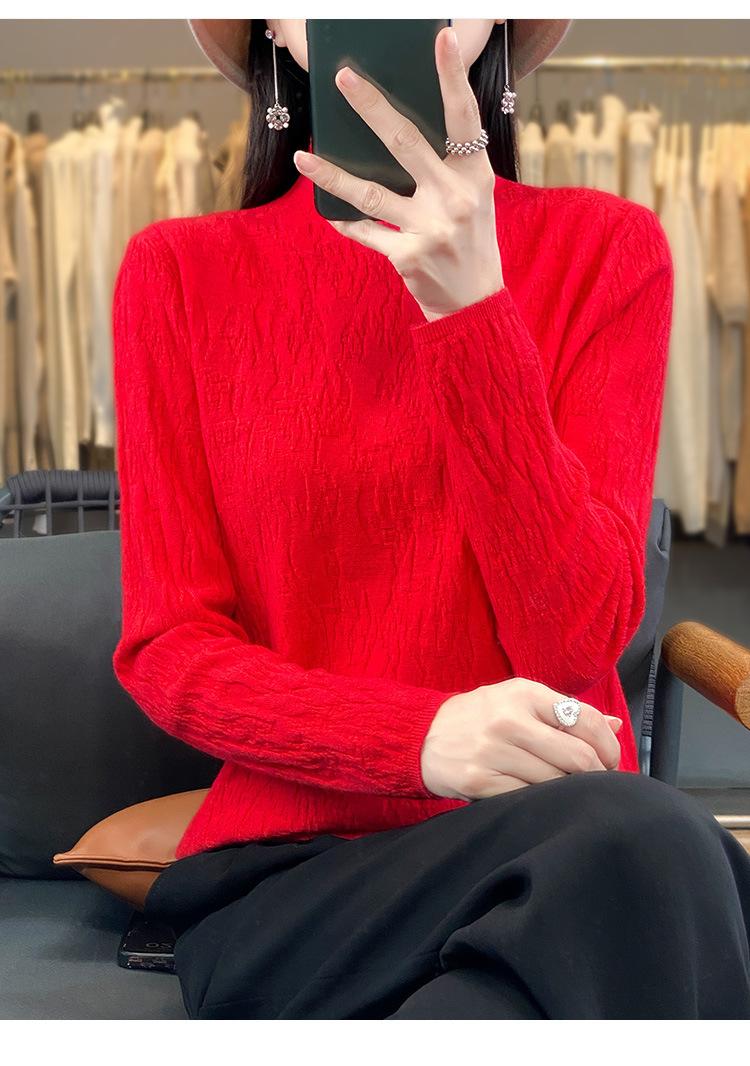 2023 Otoño/Invierno Nuevo Camiseta Base Versátil de Color Sólido con Cuello Medio Alto para Mujer, Suéter de Terciopelo Andy de Corte Ajustado Estilo Europeo para Mujer
