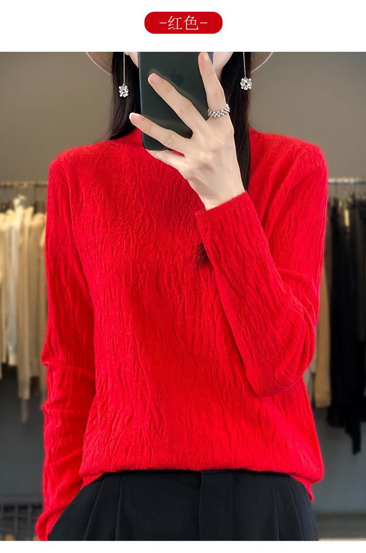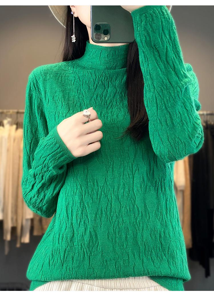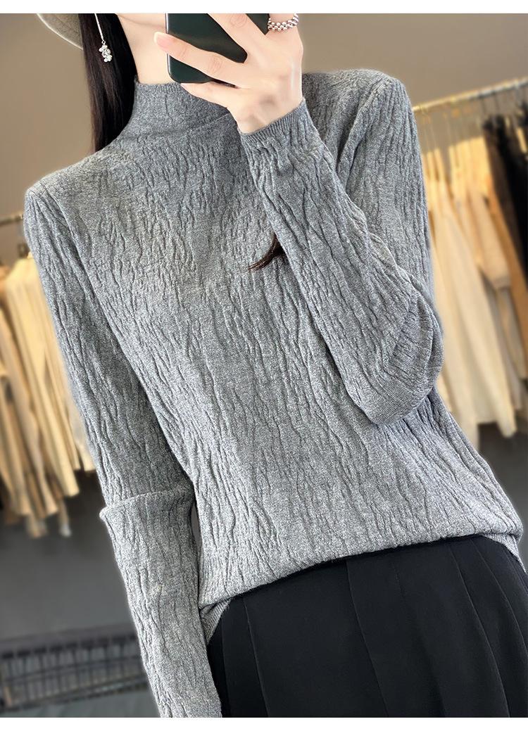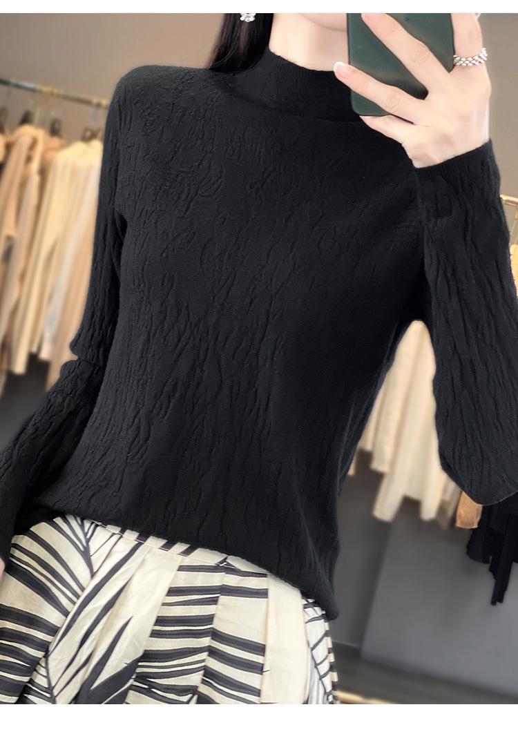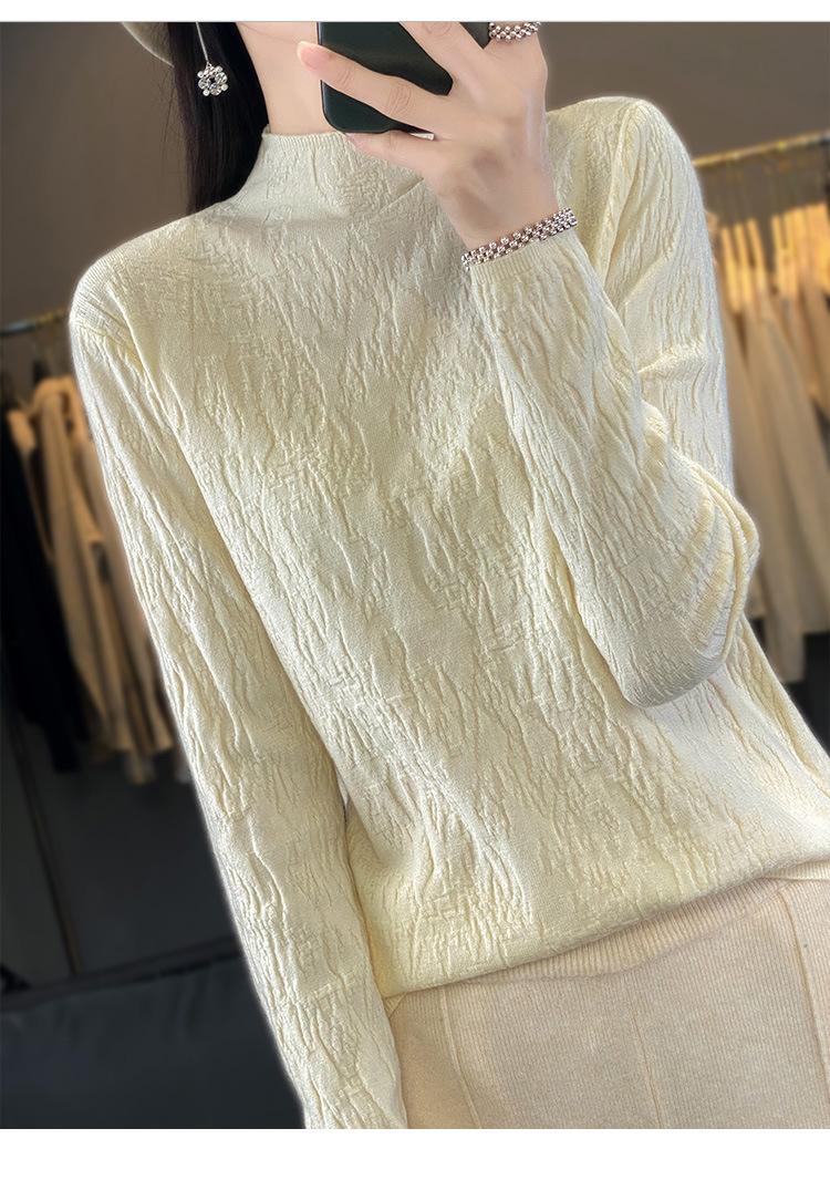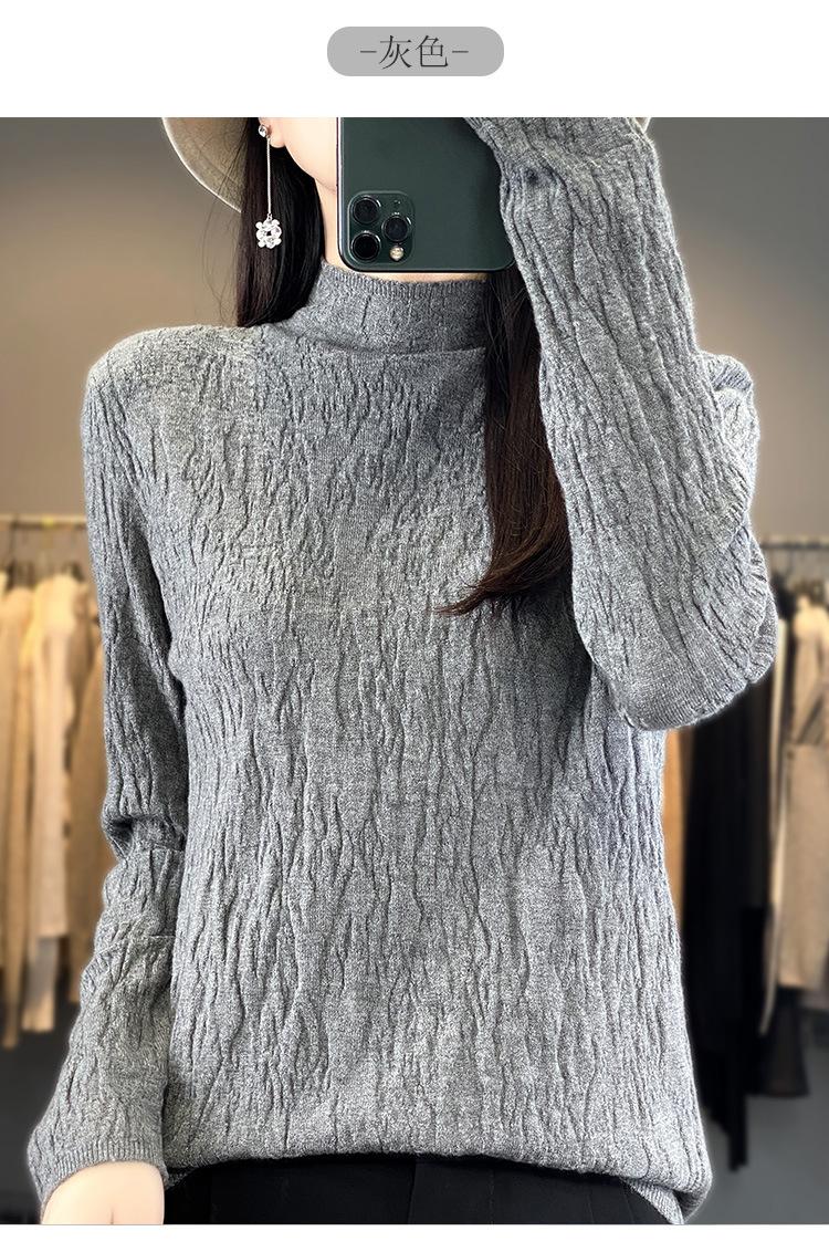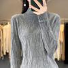 2023 Otoño/Invierno Nuevo Camiseta Base Versátil de Color Sólido con Cuello Medio Alto para Mujer, Suéter de Terciopelo Andy de Corte Ajustado Estilo Europeo para Mujer