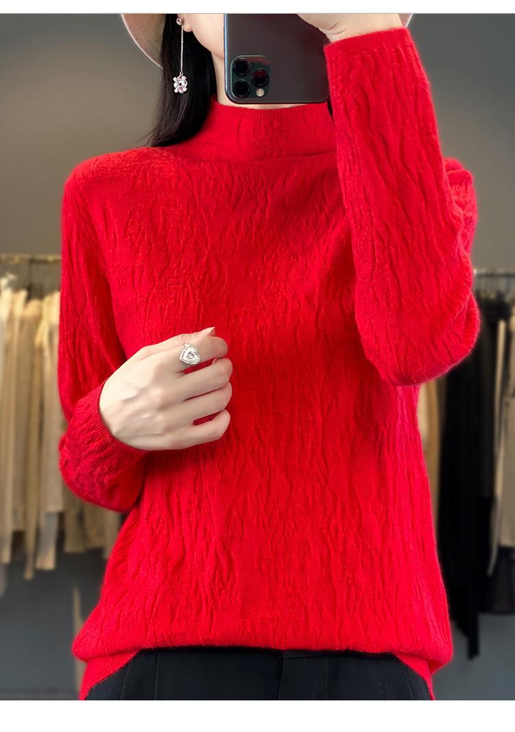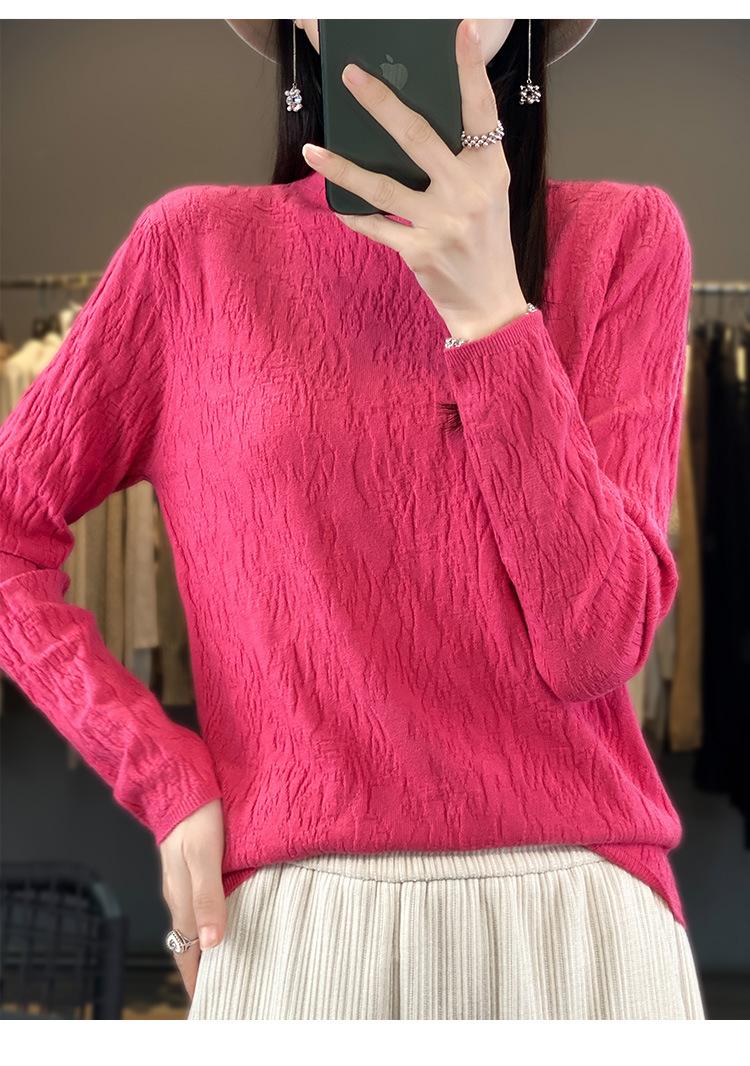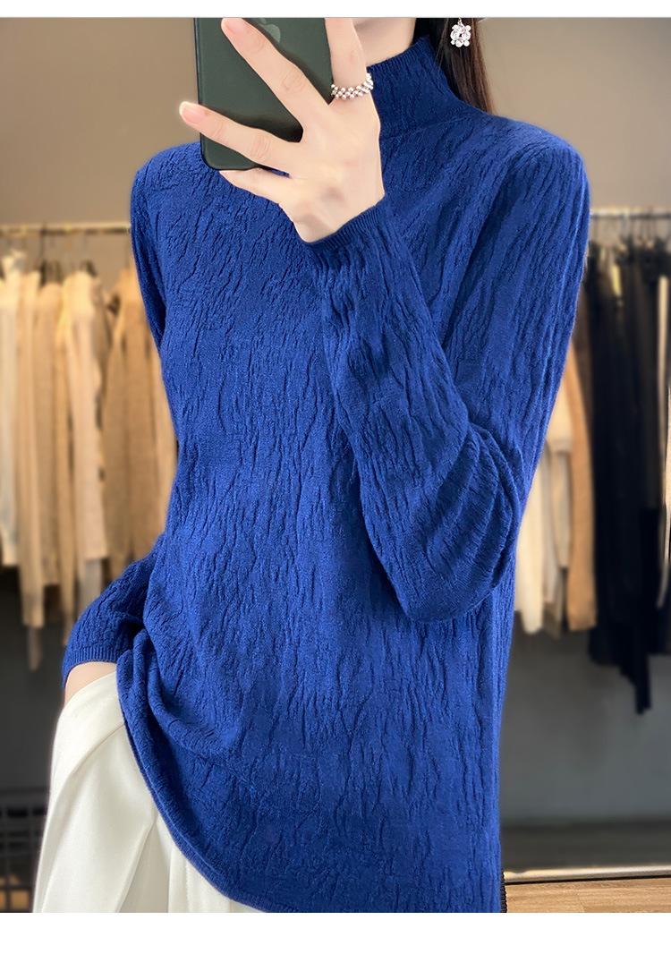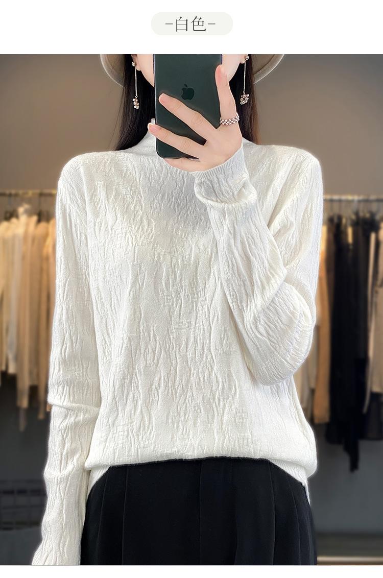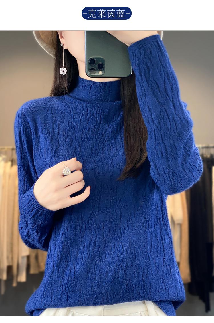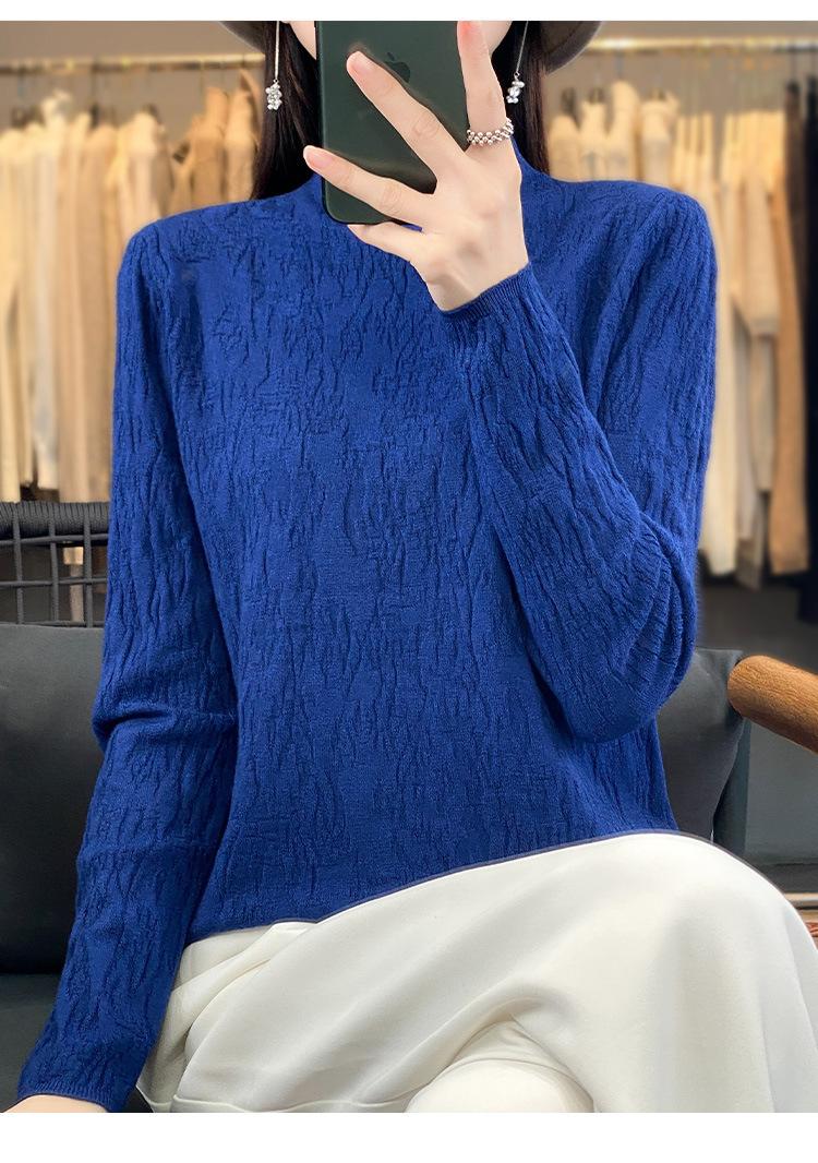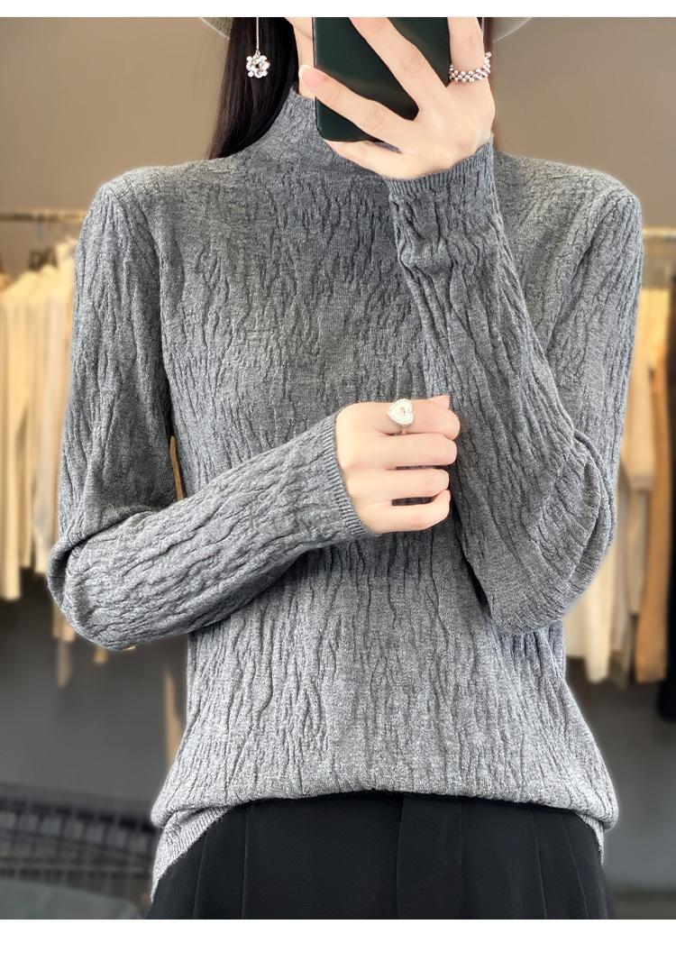 2023 Otoño/Invierno Nuevo Camiseta Base Versátil de Color Sólido con Cuello Medio Alto para Mujer, Suéter de Terciopelo Andy de Corte Ajustado Estilo Europeo para Mujer