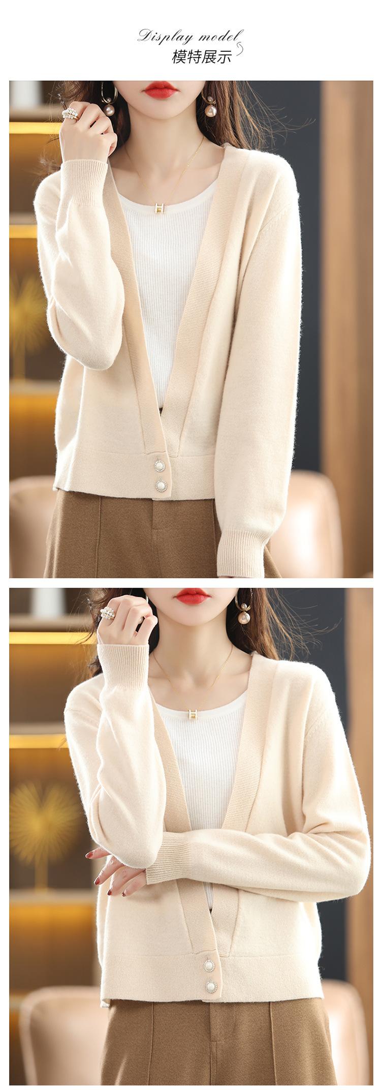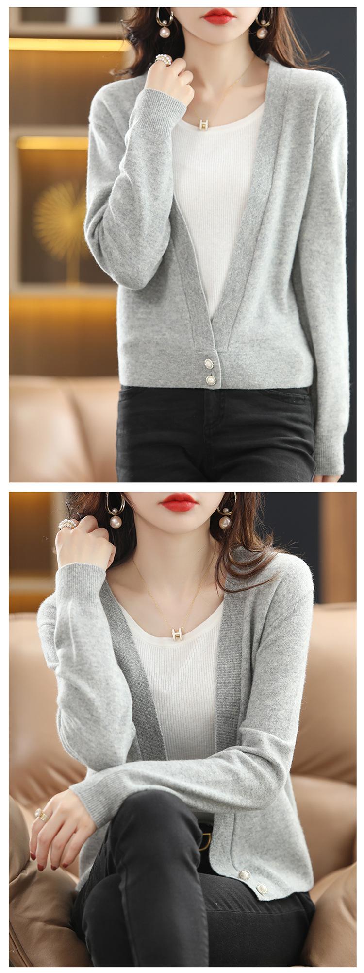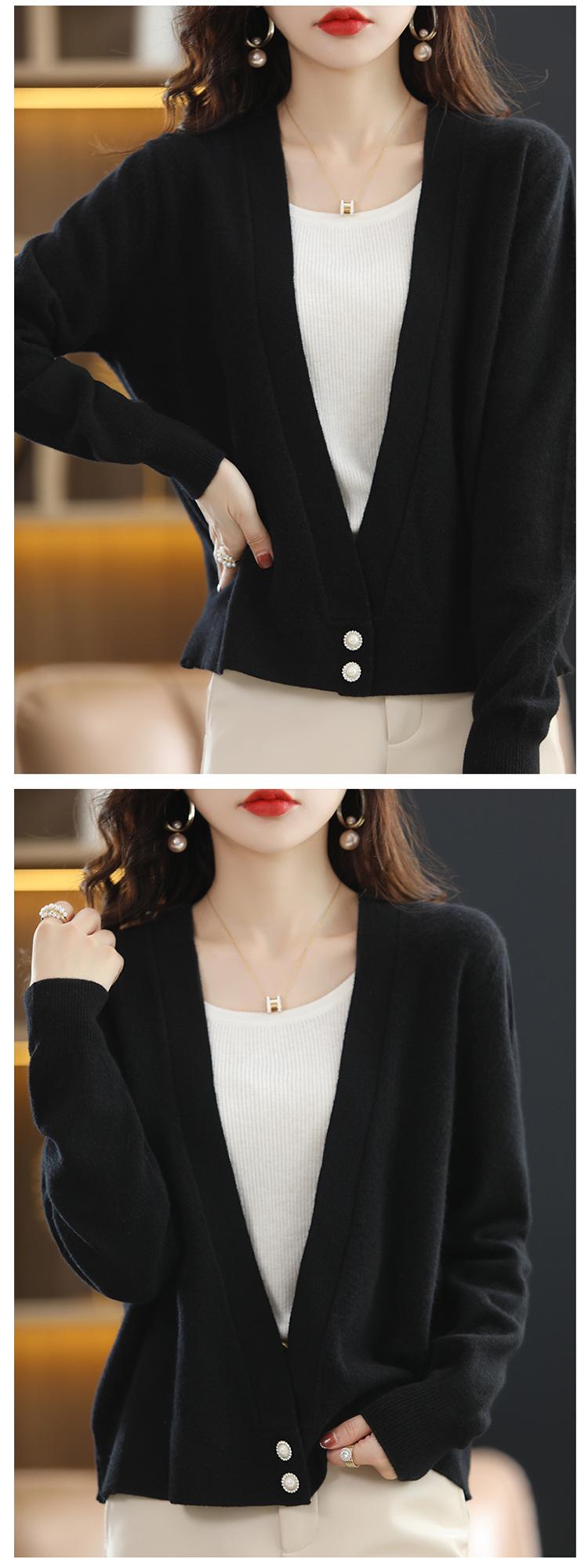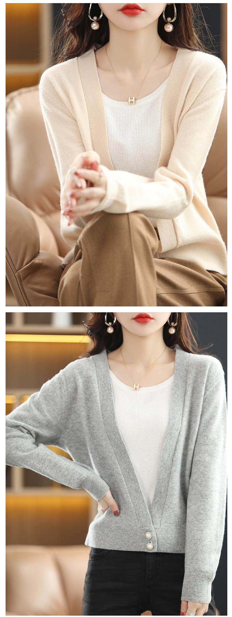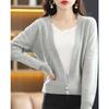 Suéter cárdigan de lana con cuello en V holgado de estilo coreano para mujer, abrigo de color liso, camisa de punto, prenda exterior corta