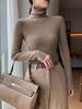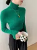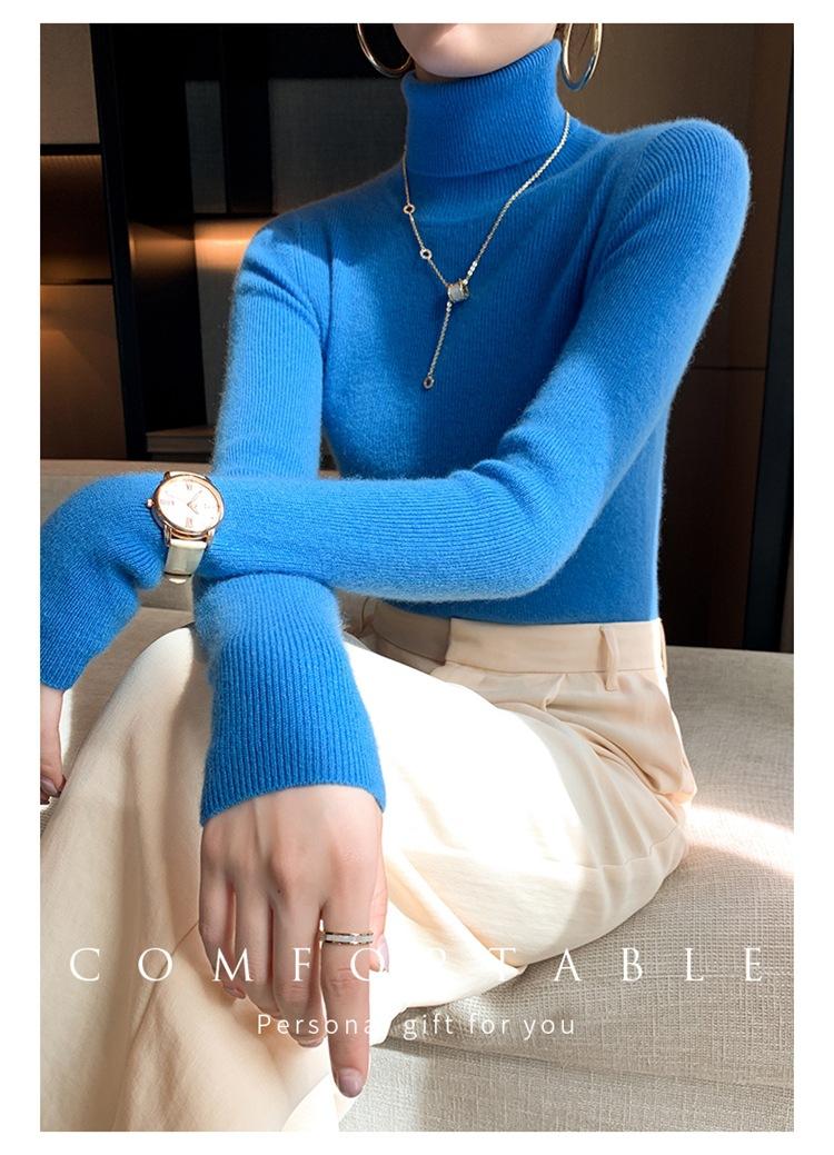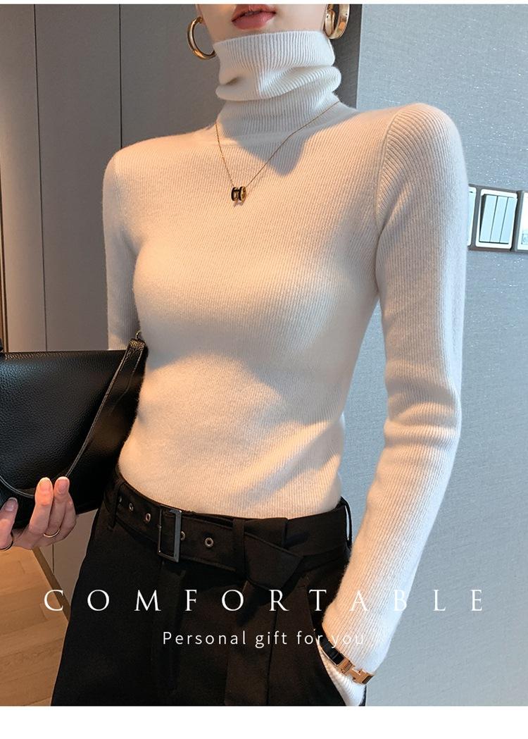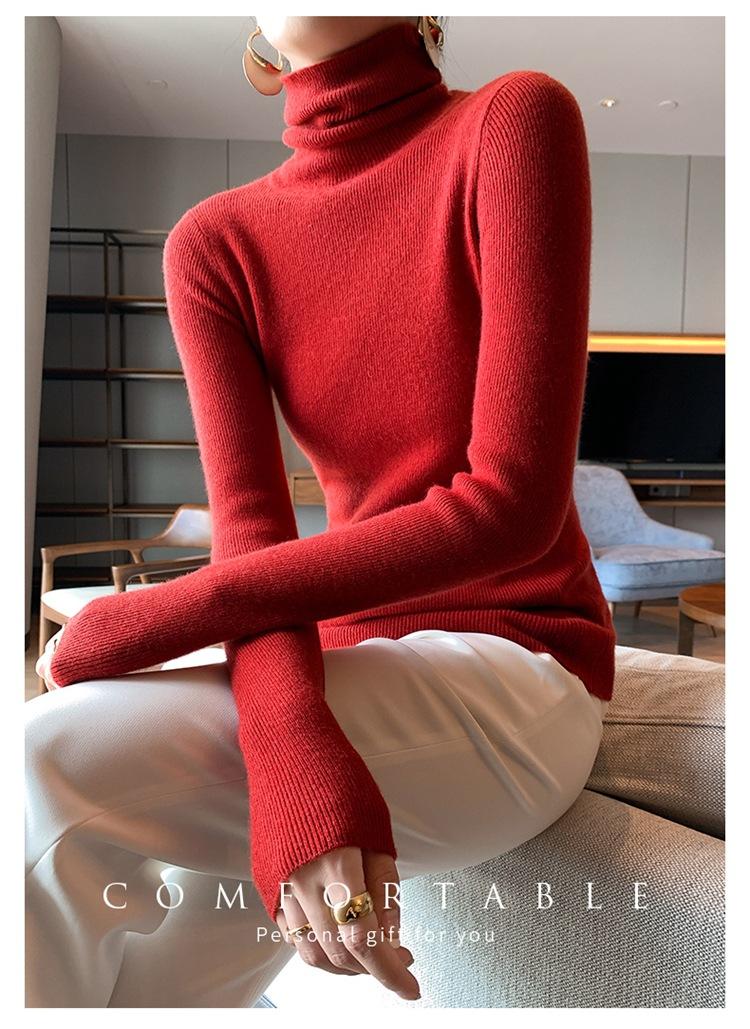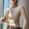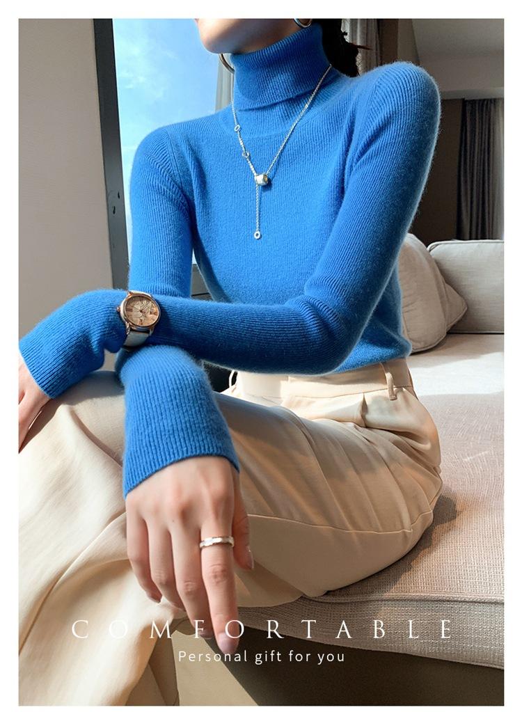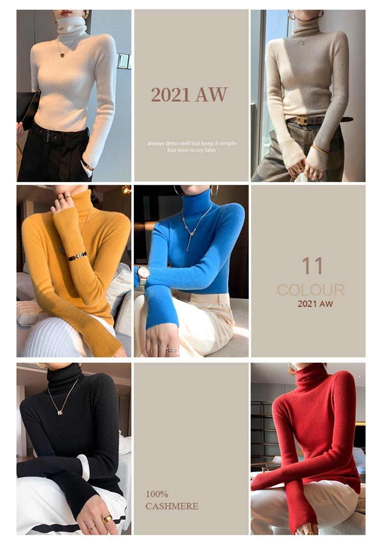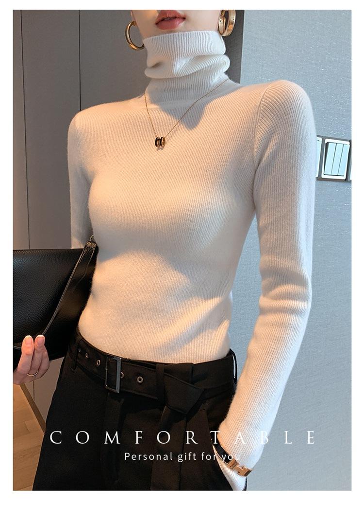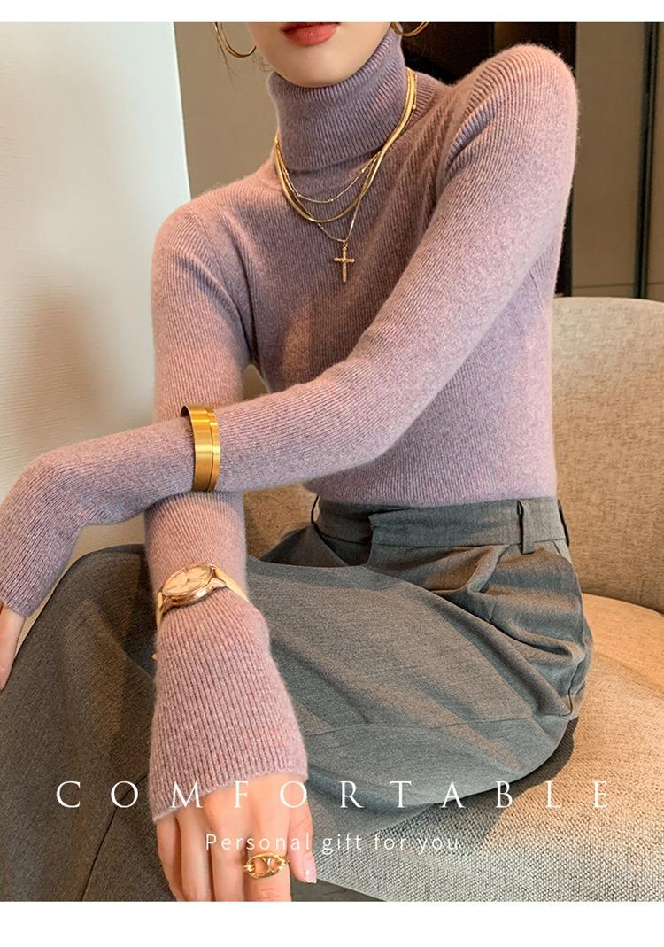 Suéter de cachemira 100% pura para mujer, suéter ajustado de manga larga, sin costuras, con solapa alta y cordón, para otoño e invierno