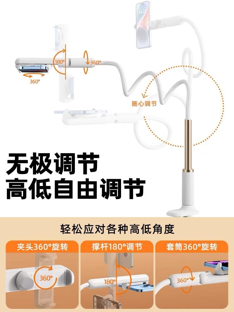 Soporte universal de cabecera para teléfono móvil transfronterizo, soporte para phablet con cabezal universal para transmisión en vivo de video, soporte giratorio de 360° para persona perezosa