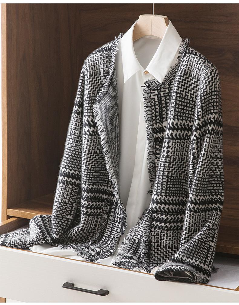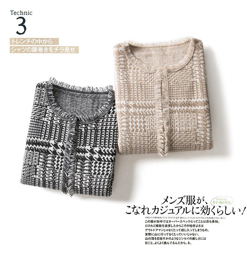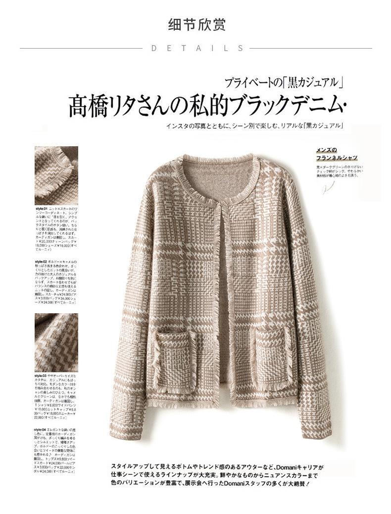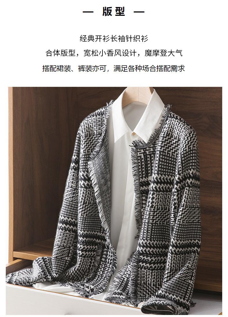 2021 Nuevo Cárdigan de Lana 100% Pura para Mujer con Borlas Talla Grande Suéter Grueso para Mujer Combinación de Colores Camisa Tejida de Fondo