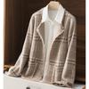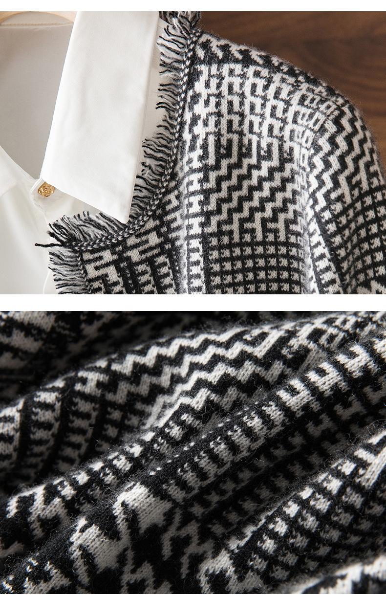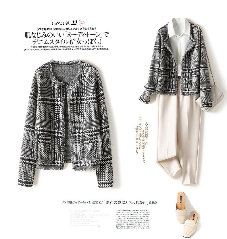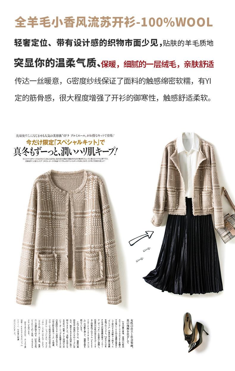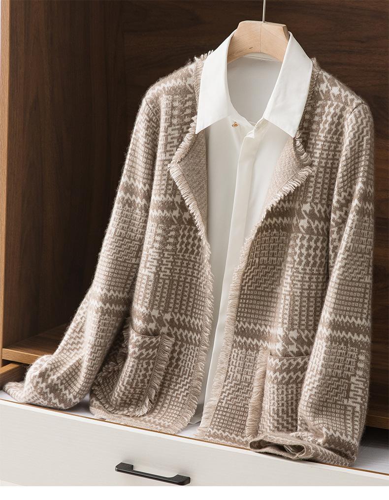 2021 Nuevo Cárdigan de Lana 100% Pura para Mujer con Borlas Talla Grande Suéter Grueso para Mujer Combinación de Colores Camisa Tejida de Fondo