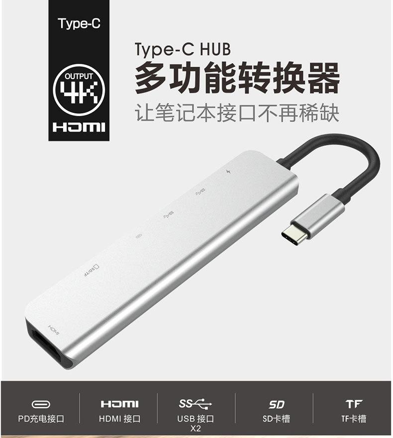 HDMI + USB 3.0 * 2 + Carga PD + USB C + SD + TF