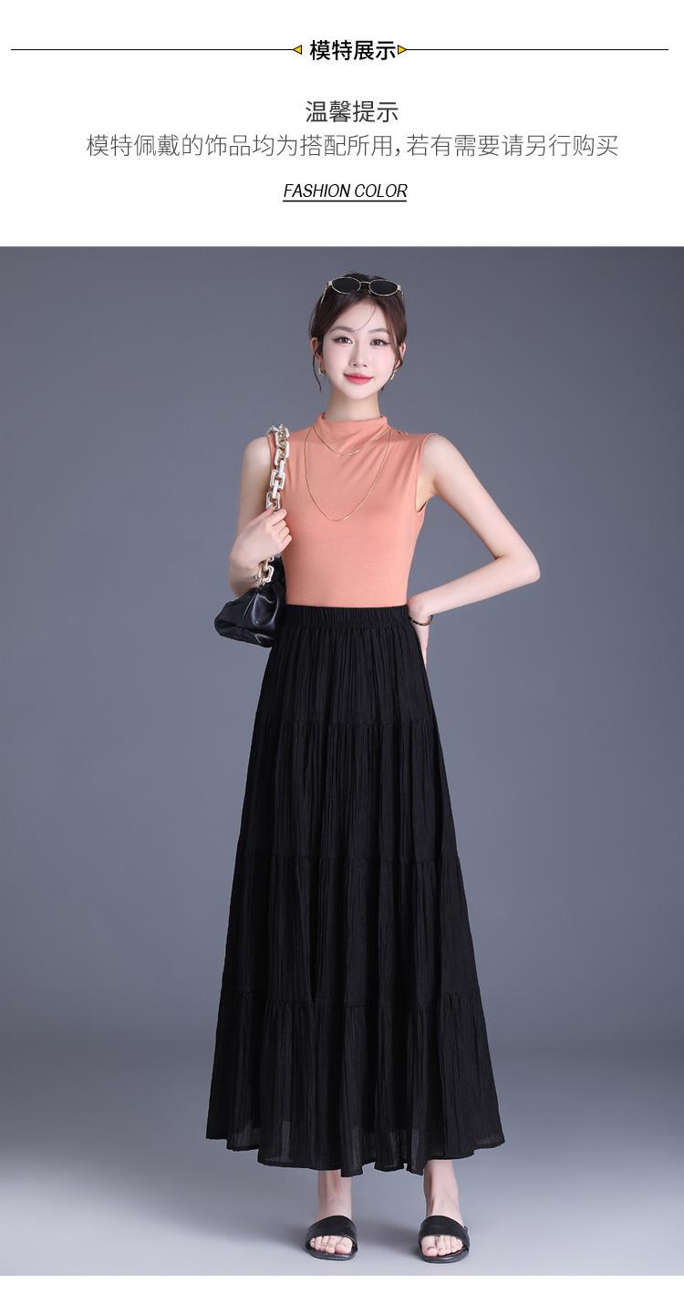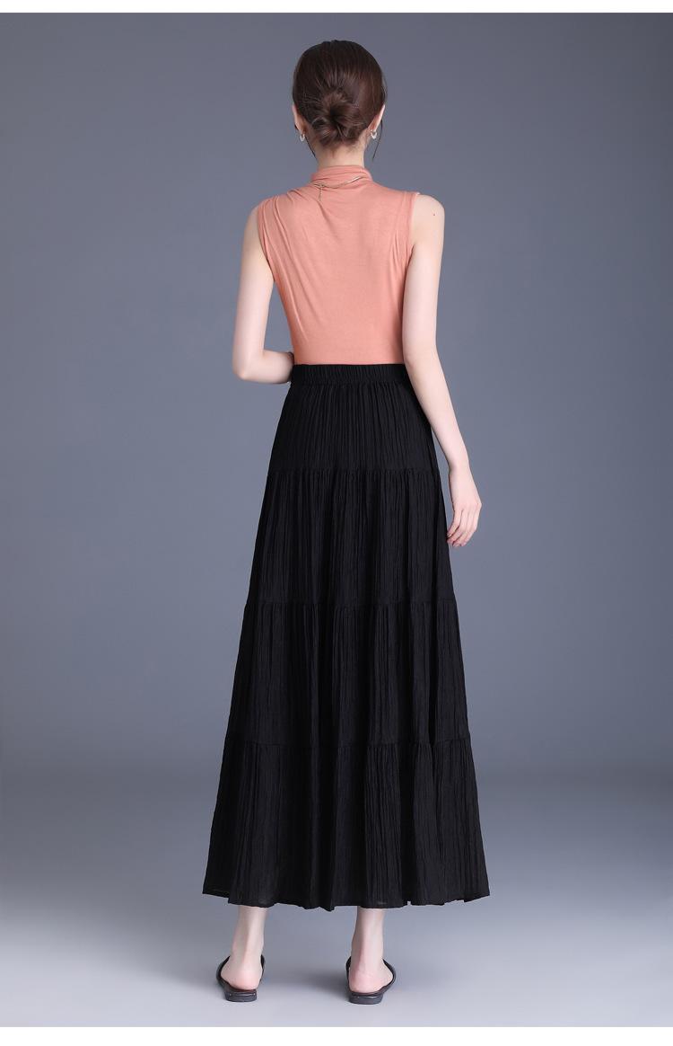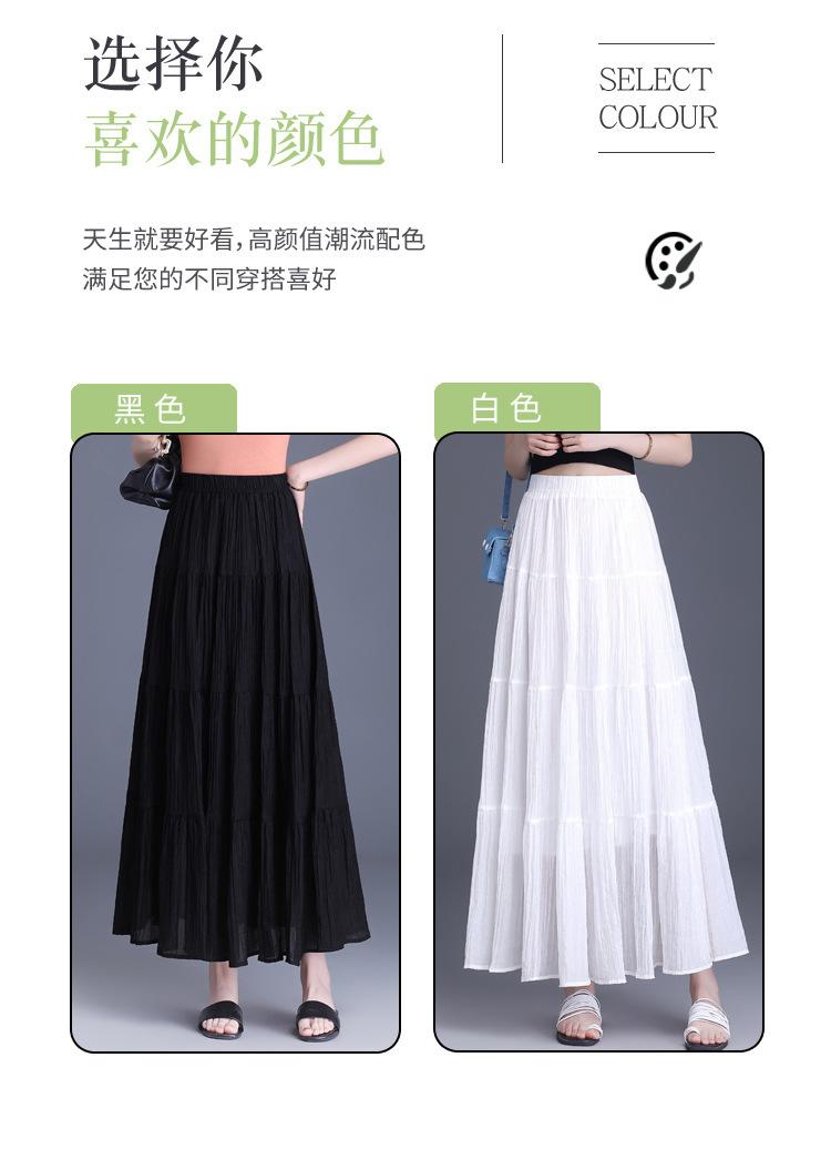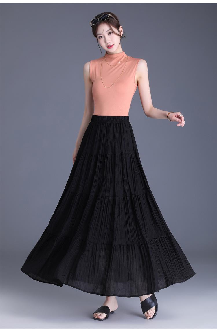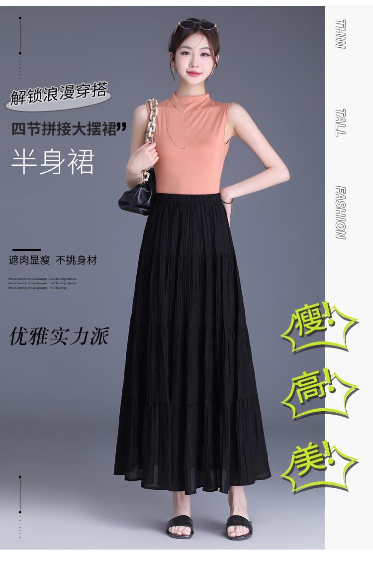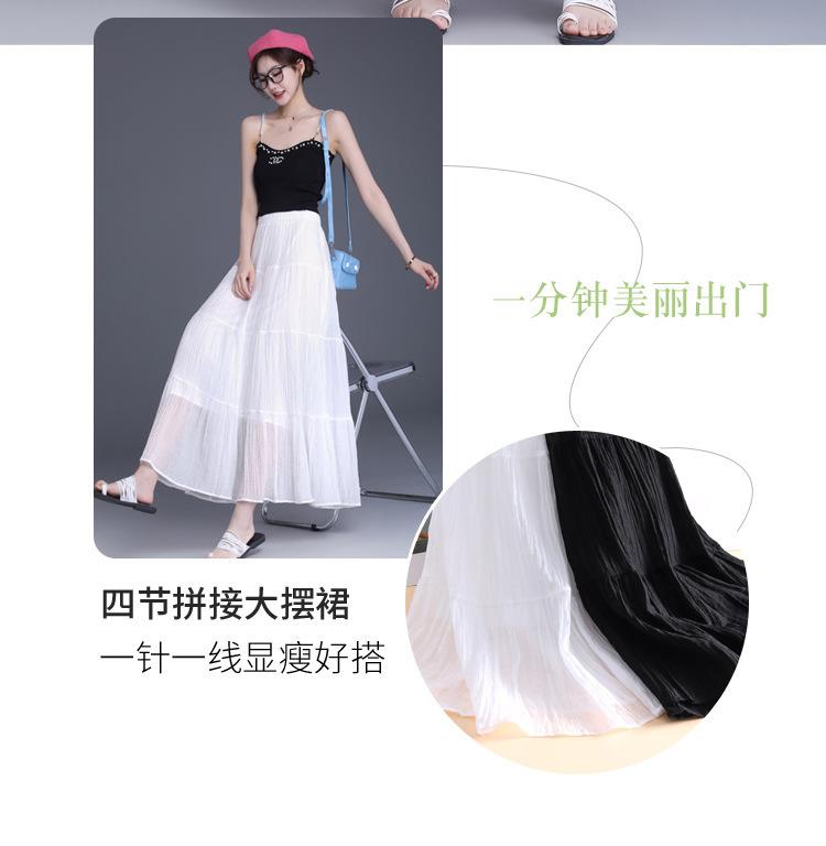 Falda de Empalme de Cintura Elástica a la Moda para Mujer 2025 Verano Nuevo Falda Plisada de Cintura Alta Falda A-Línea Falda Larga de Dobladillo Grande