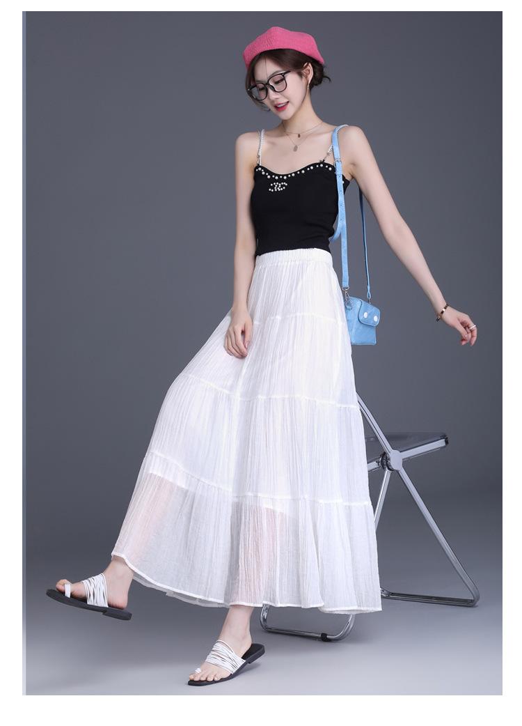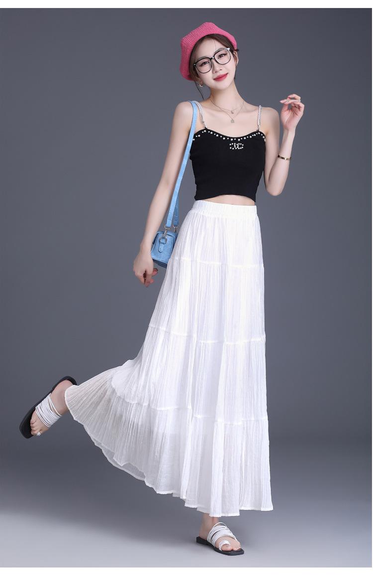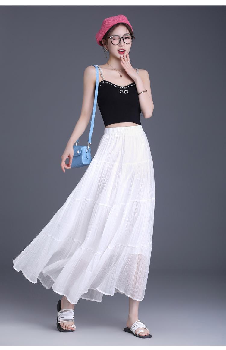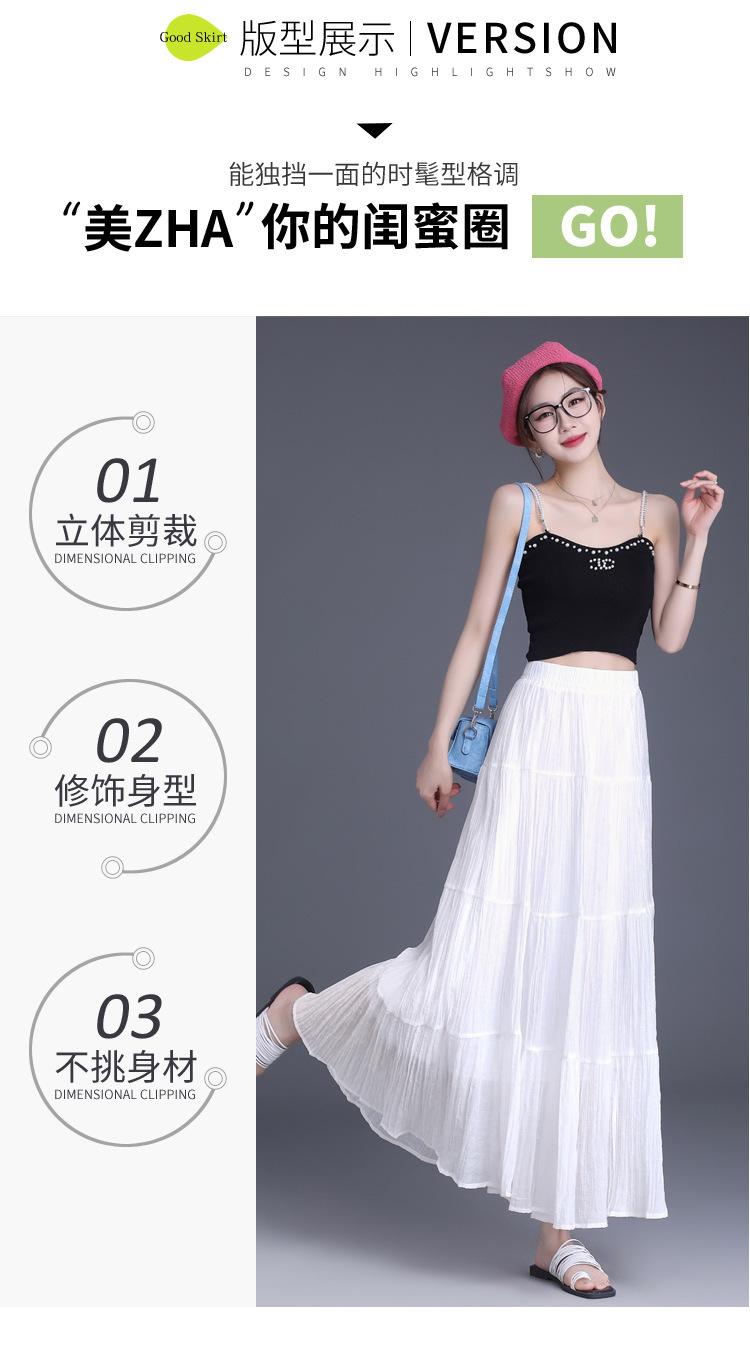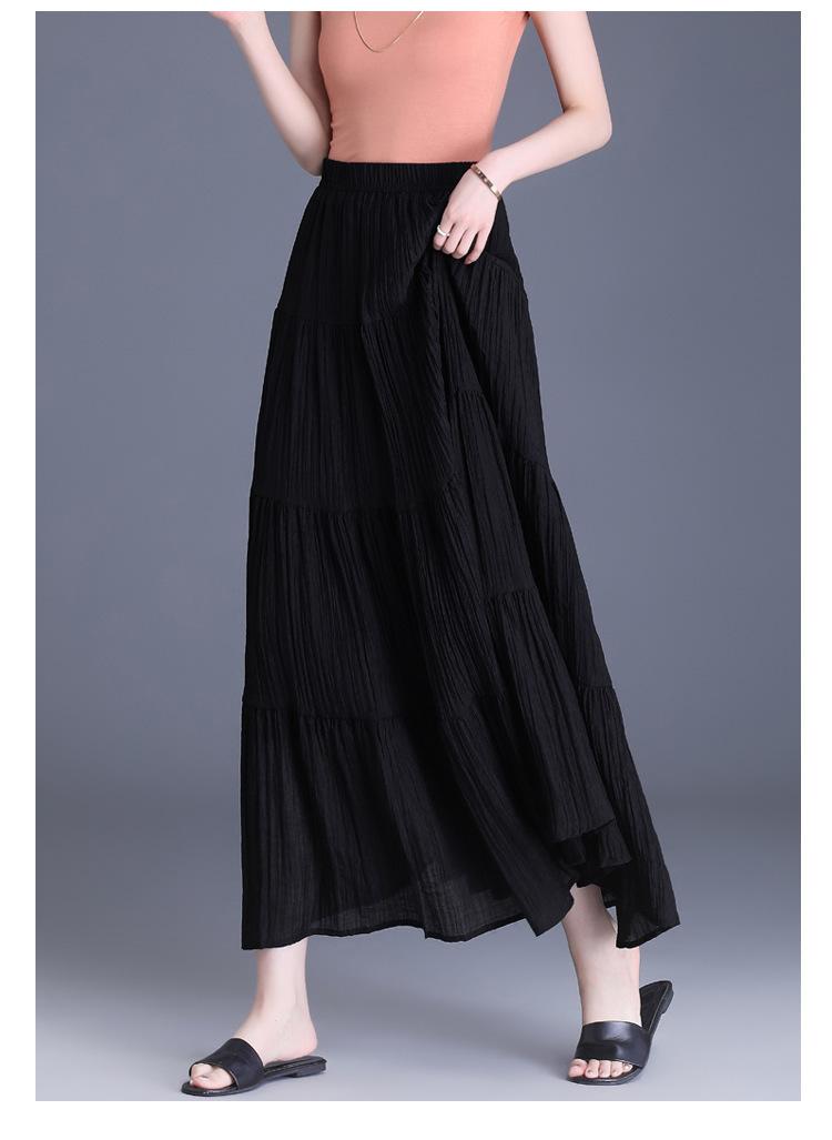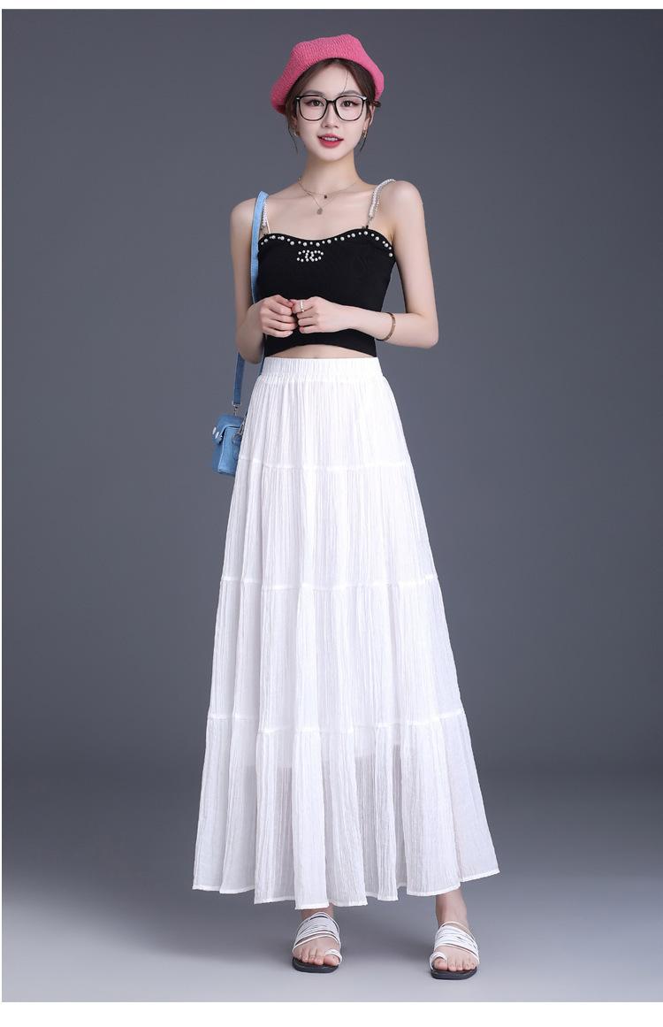 Falda de Empalme de Cintura Elástica a la Moda para Mujer 2025 Verano Nuevo Falda Plisada de Cintura Alta Falda A-Línea Falda Larga de Dobladillo Grande