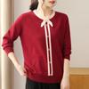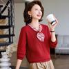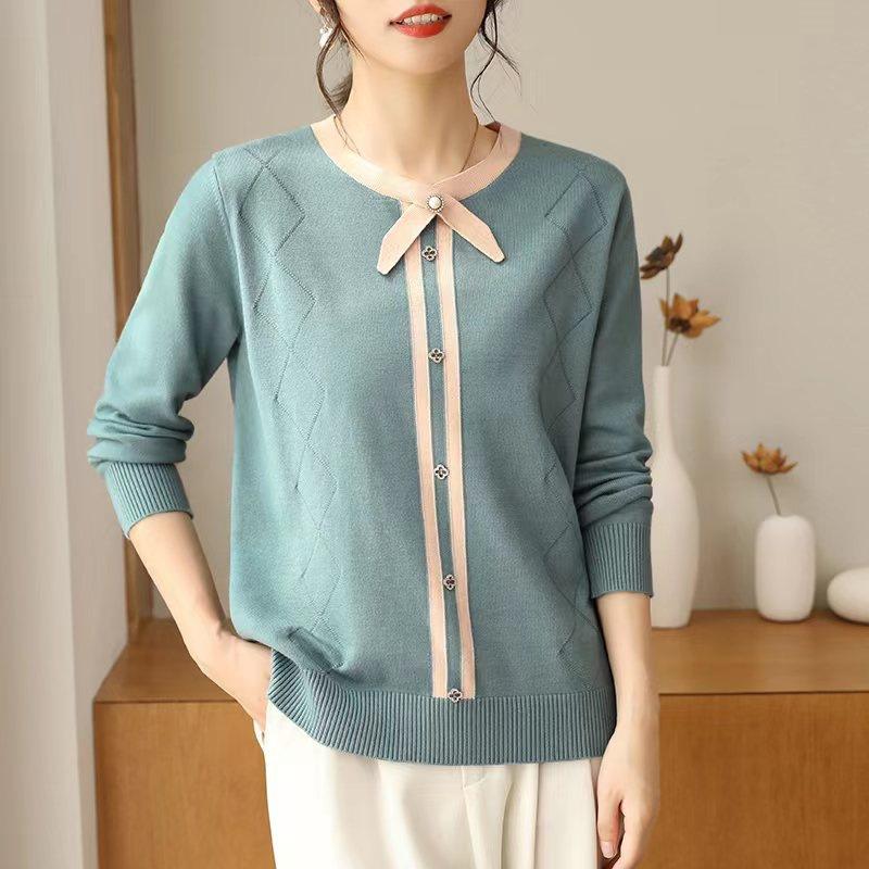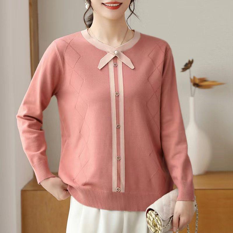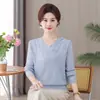 Ropa de Primavera y Otoño para Madre de Mediana Edad Estilo Occidental Nuevo Suéter Tejido Base Elegante Suéter Camiseta Base Cómoda para Medianos y Mayores
