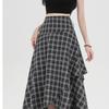 Falda a cuadros negra para mujer, otoño e invierno 2023, nueva falda adelgazante de cintura alta irregular, falda versátil de un solo paso.