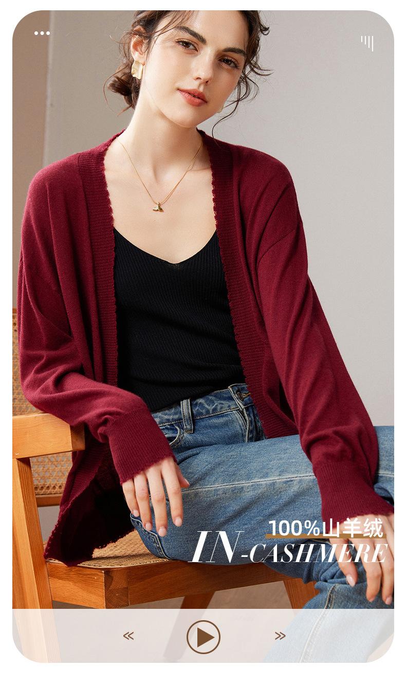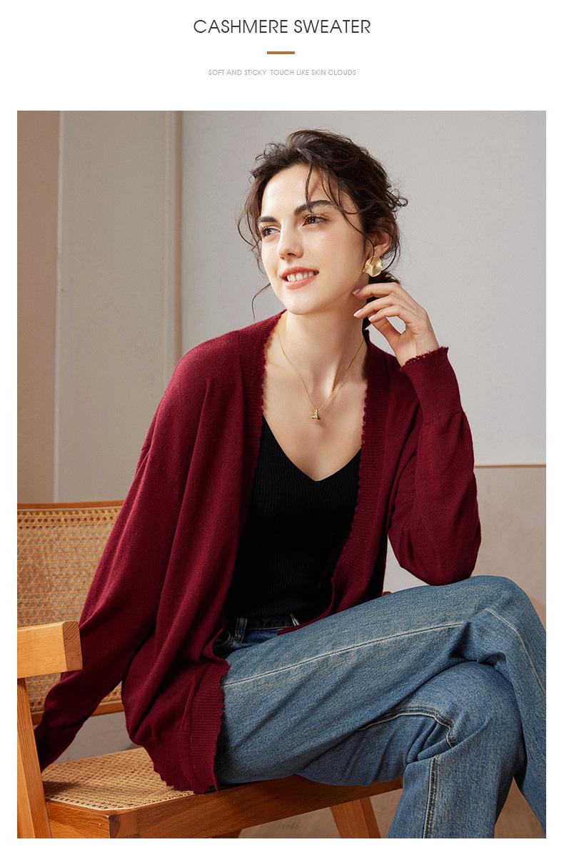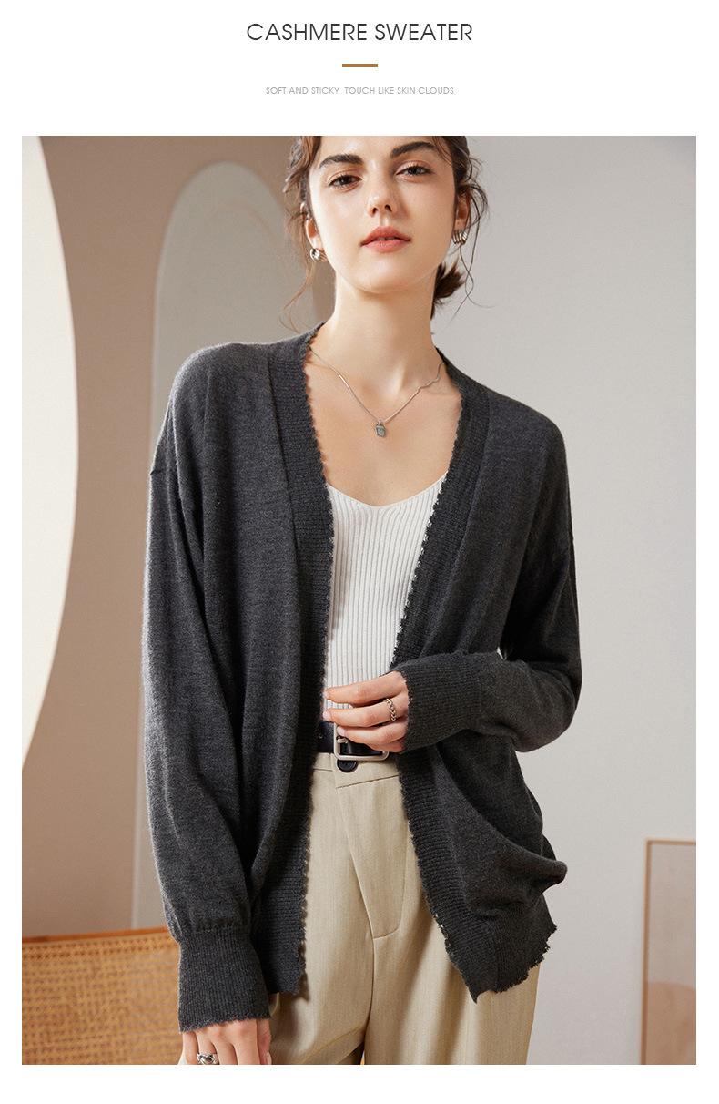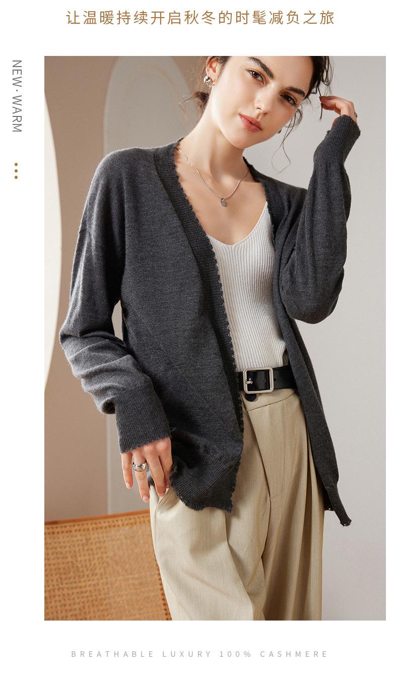 Cárdigan holgado de cachemira para mujer, otoño e invierno 2023, 100 % cachemira pura, largo medio, de punto fino