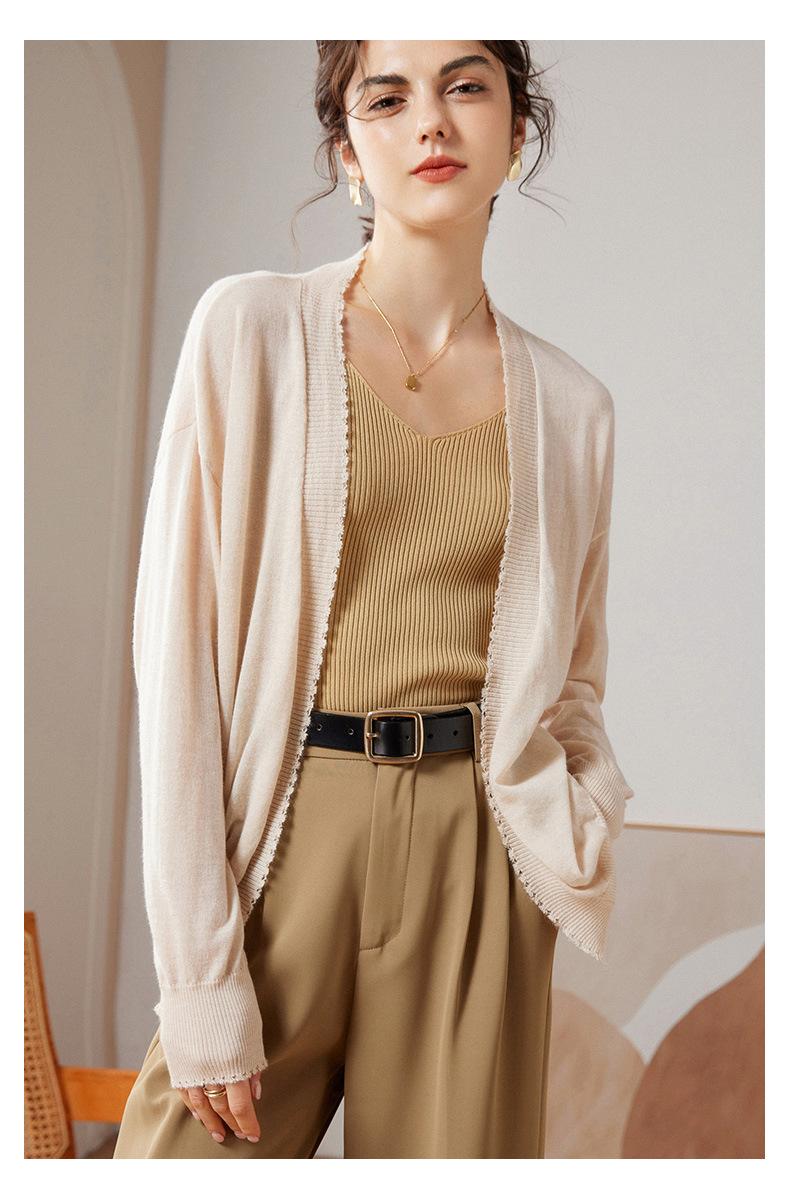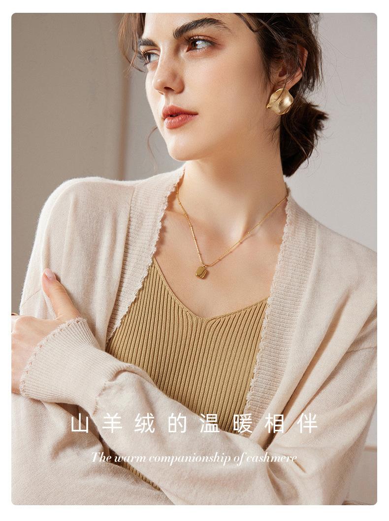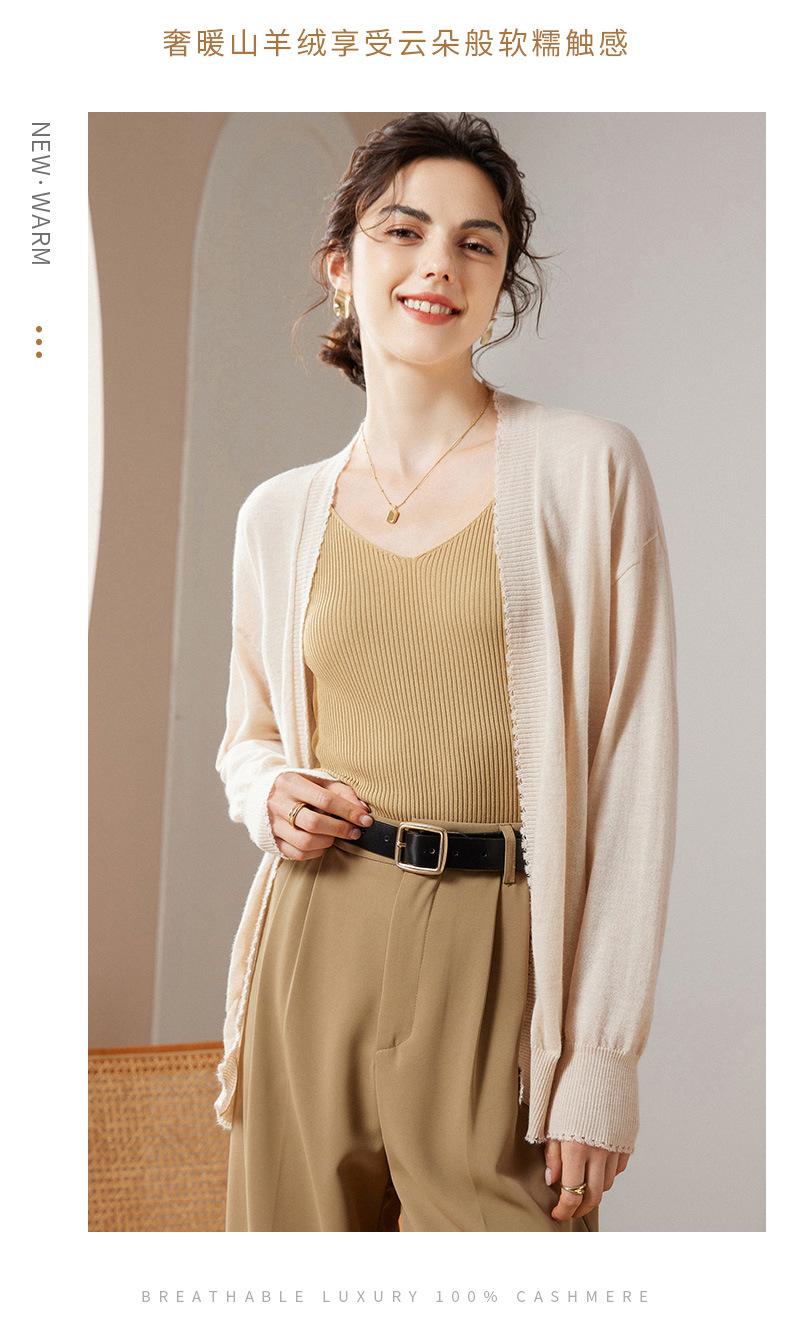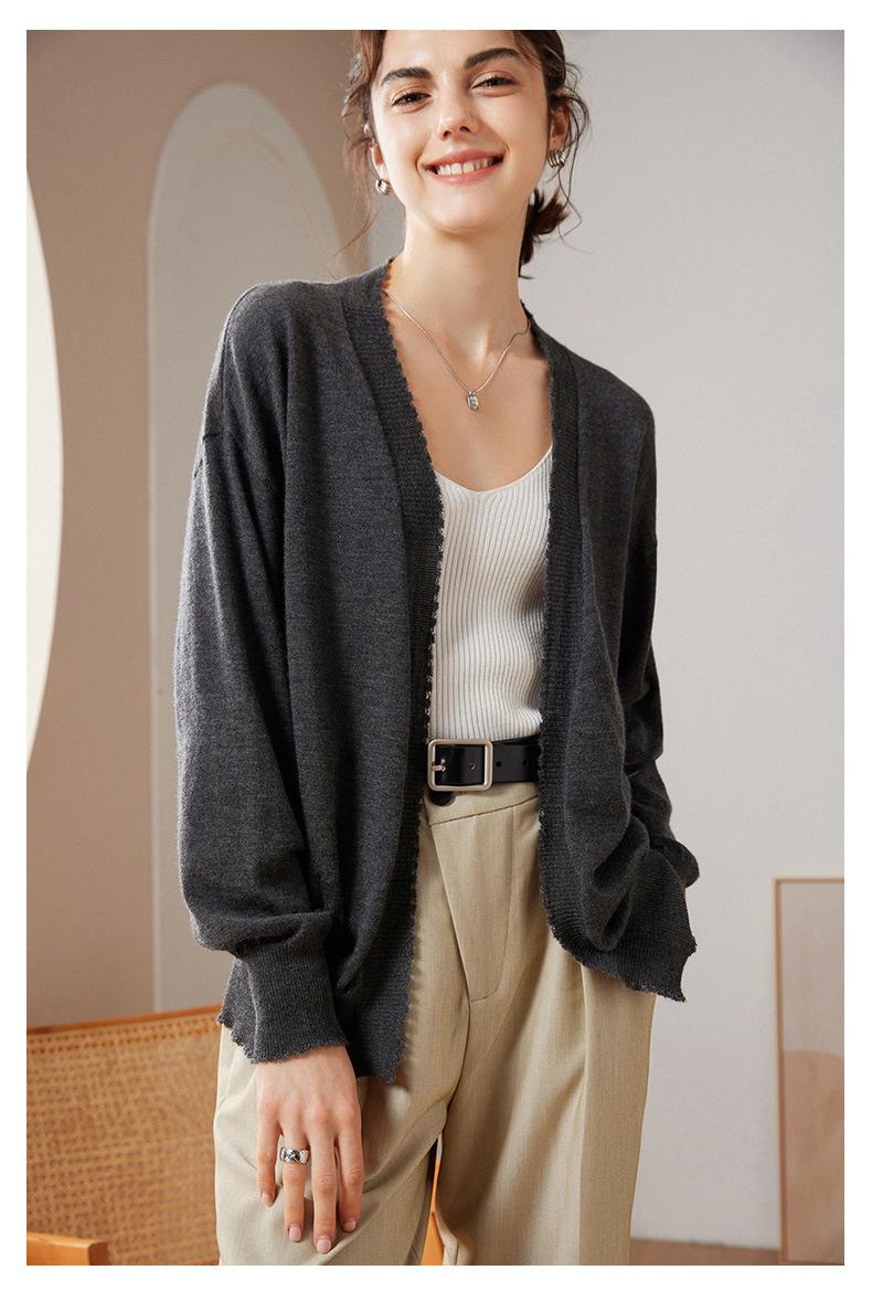 Cárdigan holgado de cachemira para mujer, otoño e invierno 2023, 100 % cachemira pura, largo medio, de punto fino