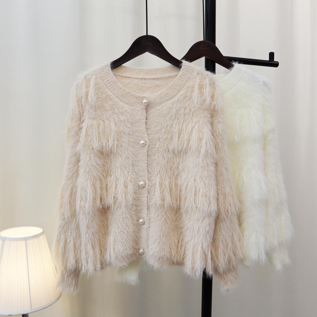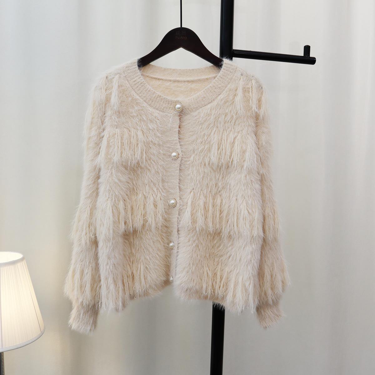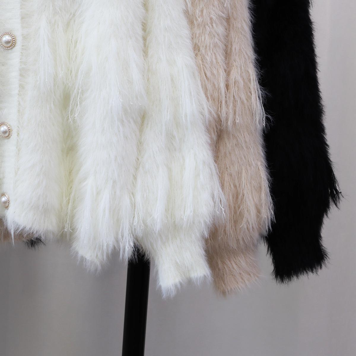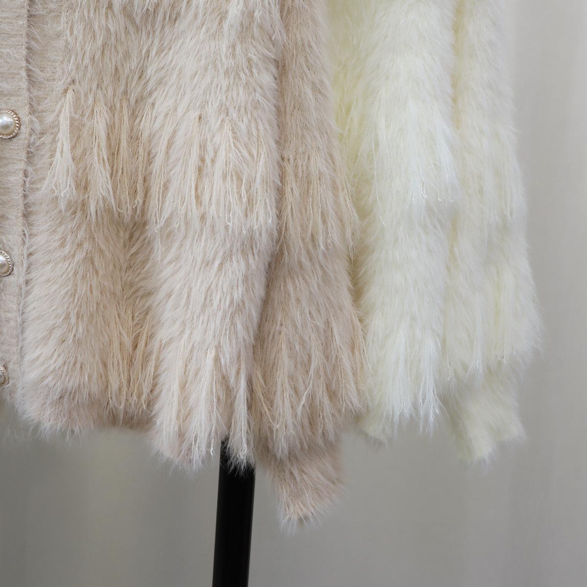 | Cárdigan de punto de lana de visón de imitación con cuentas para mujer, otoño e invierno 2023, nuevo abrigo largo de temperamento de diseño suelto de estilo coreano |