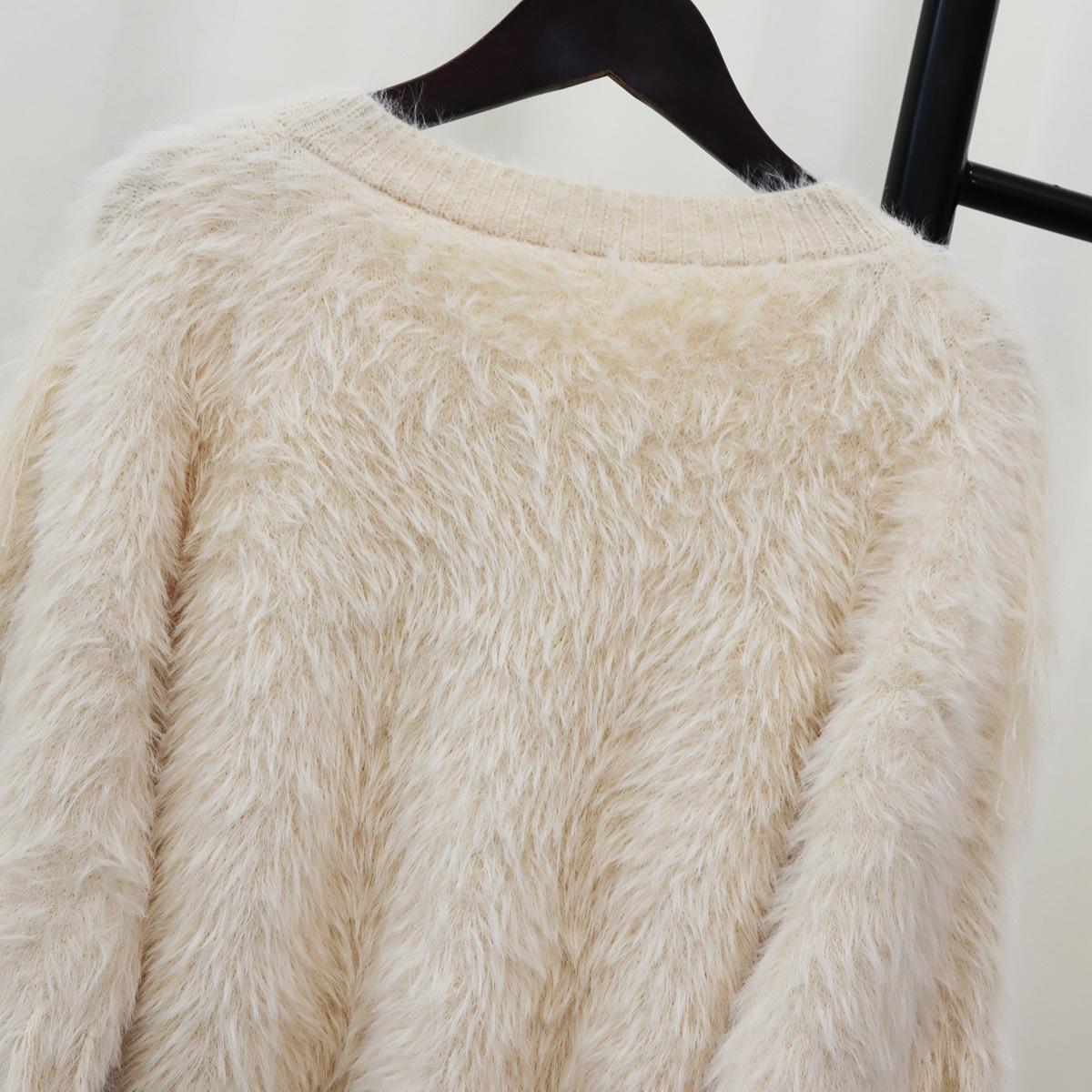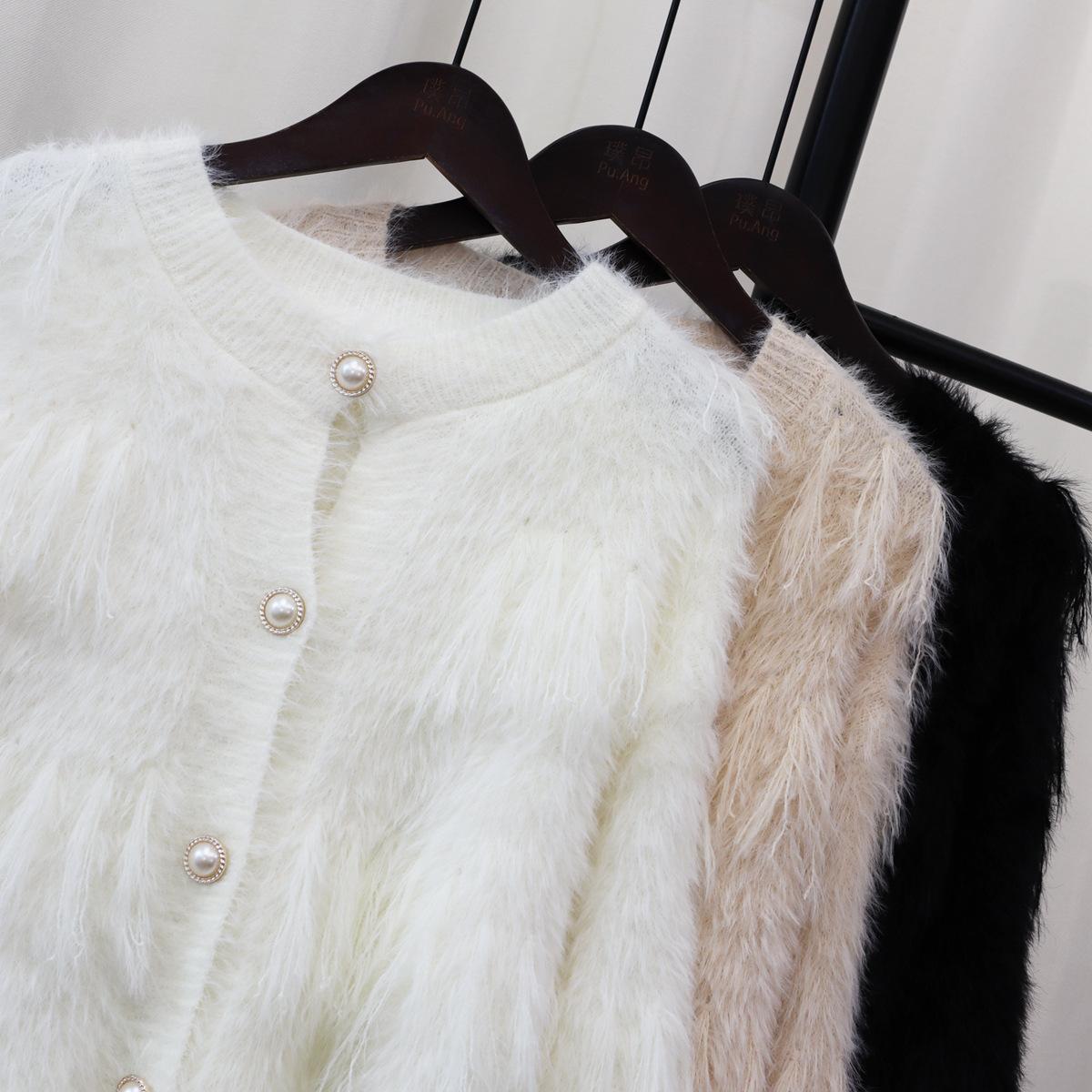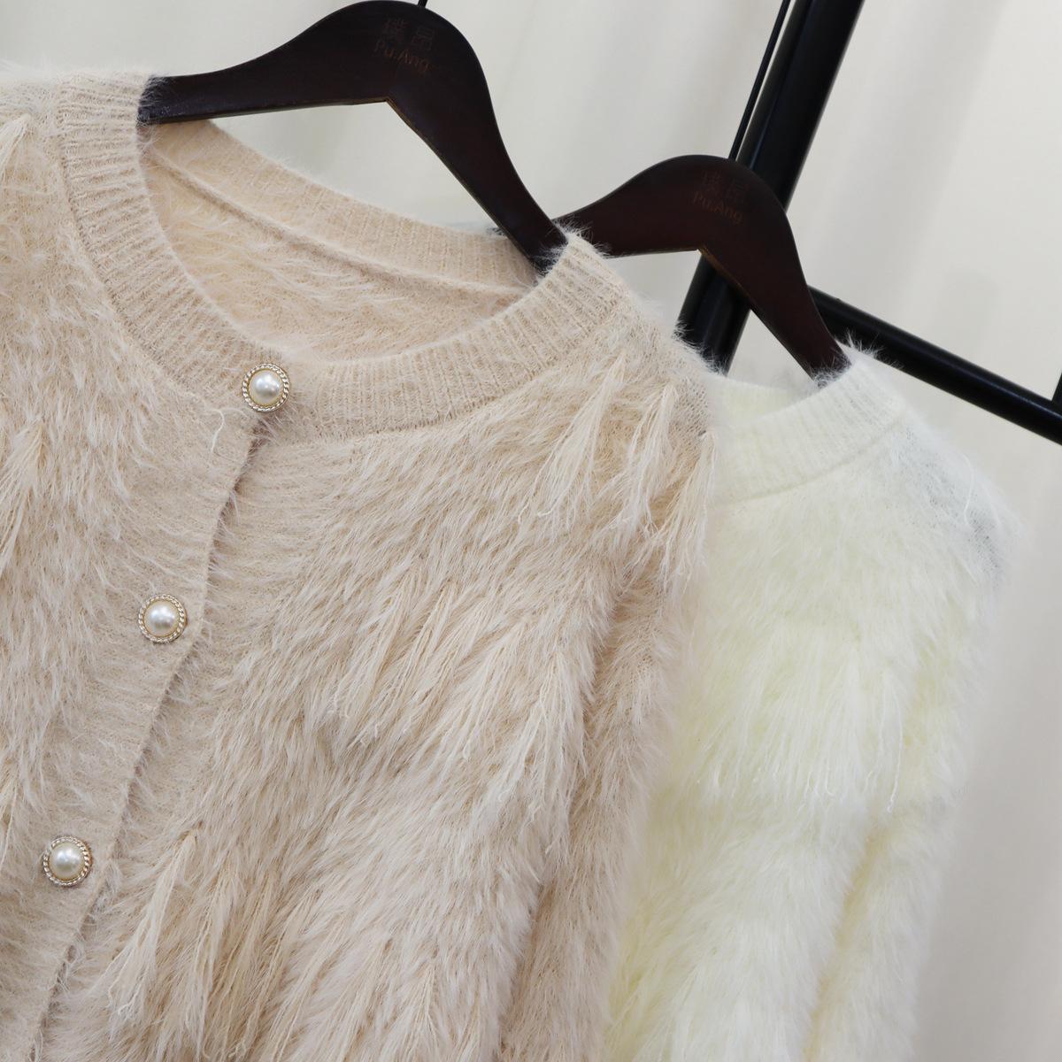 | Cárdigan de punto de lana de visón de imitación con cuentas para mujer, otoño e invierno 2023, nuevo abrigo largo de temperamento de diseño suelto de estilo coreano |