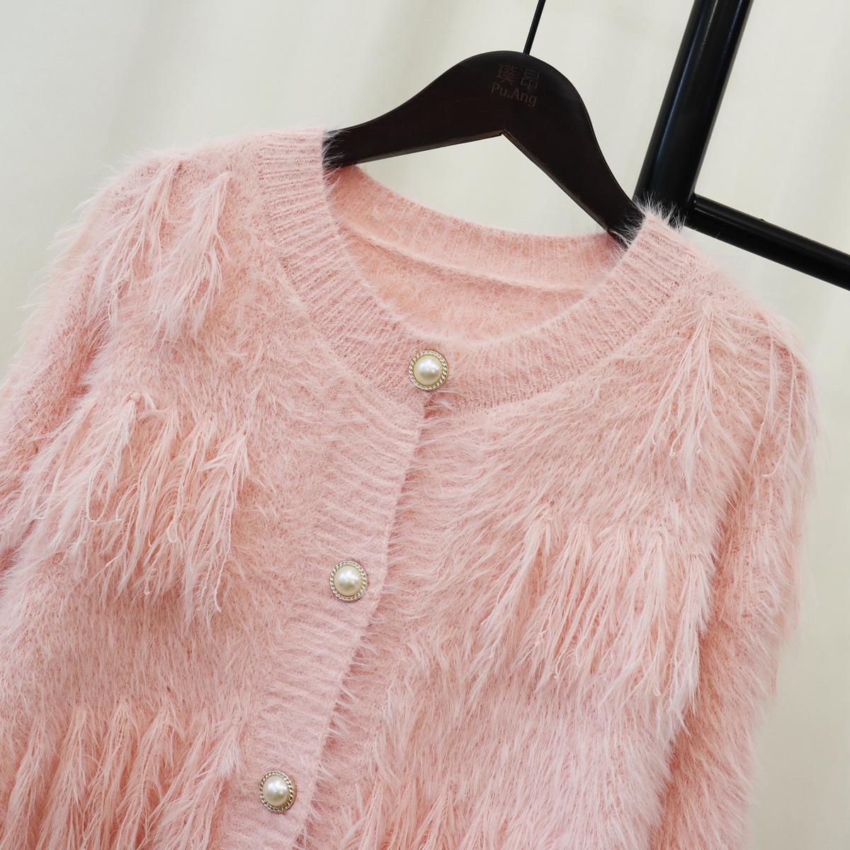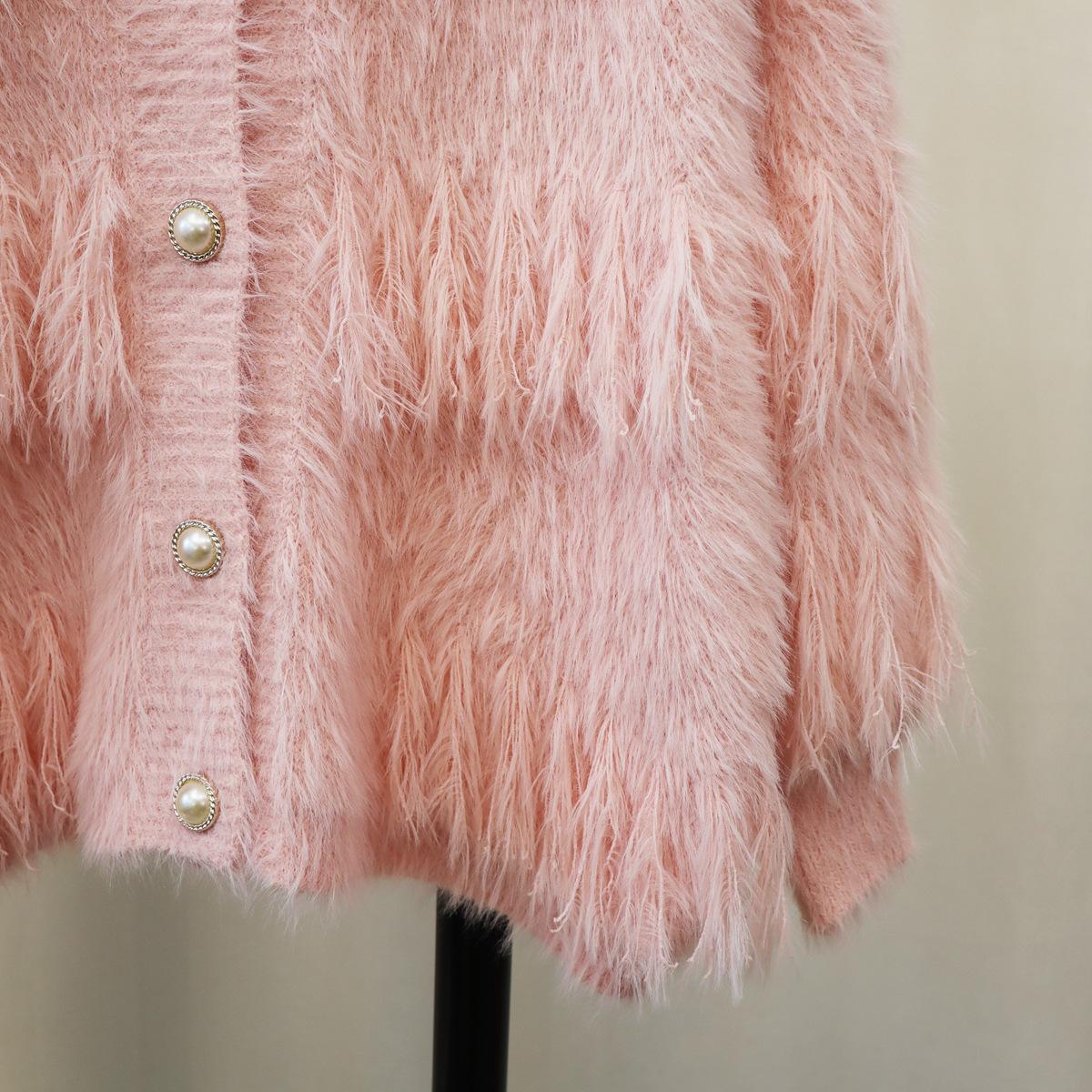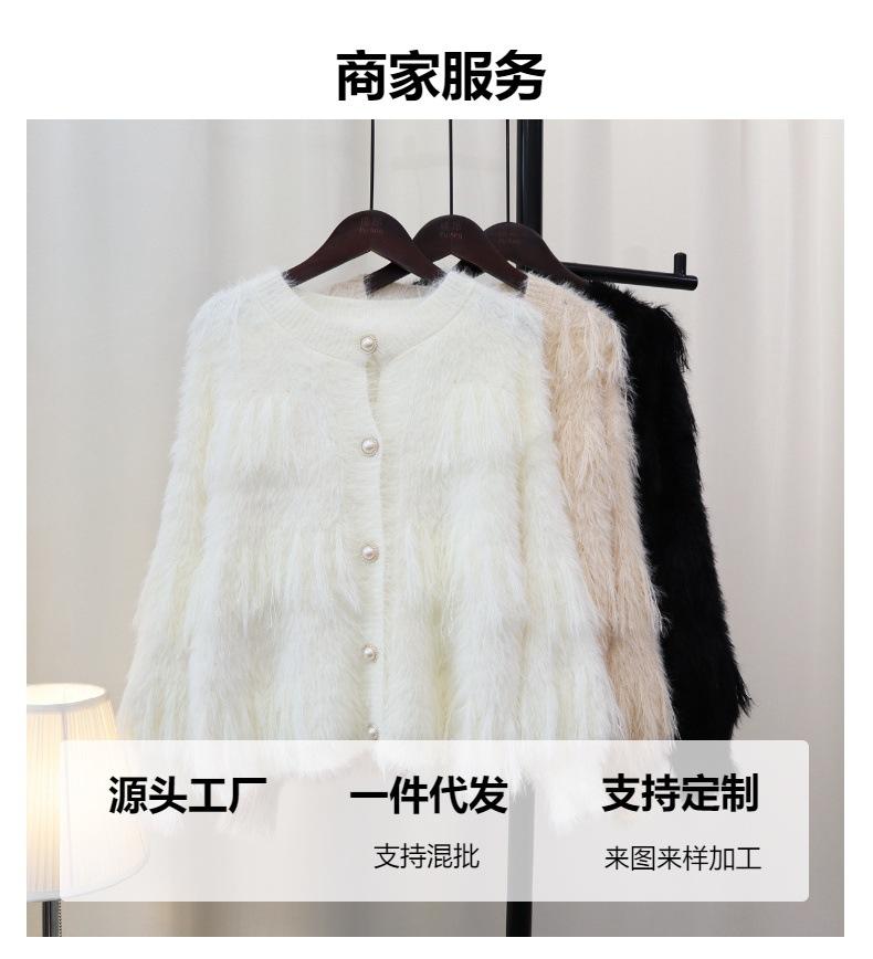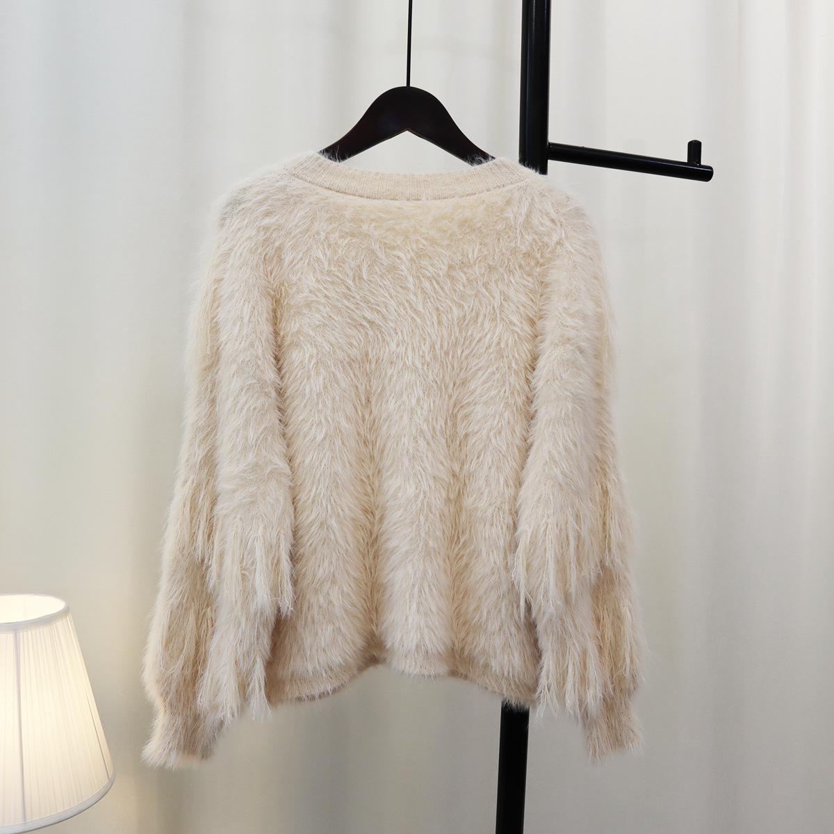 | Cárdigan de punto de lana de visón de imitación con cuentas para mujer, otoño e invierno 2023, nuevo abrigo largo de temperamento de diseño suelto de estilo coreano |
