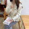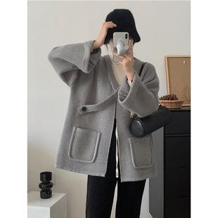 | Chaqueta tipo suéter de diseño de nicho para mujer, otoño e invierno, nueva versión coreana, cárdigan de punto holgado, versátil, estilo perezoso, mediano y largo. |