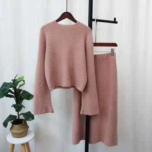 | Traje de punto de lana de visón sintético para mujer, otoño e invierno, nuevo estilo, suéter estilo Chanel de alta calidad con falda dentro del traje de dos piezas de moda. |