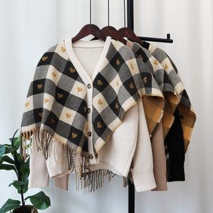 | Cárdigan de punto con cuello en V suelto para mujer, otoño e invierno, nuevo, falso, de dos piezas, con chal de empalme, a cuadros, chaqueta de suéter |