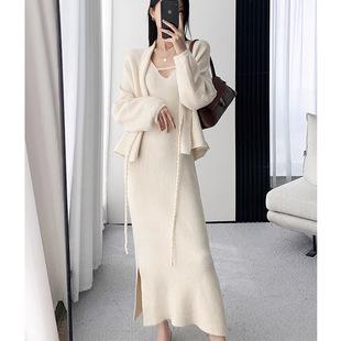 | Estación europea otoño e invierno nuevo 2023 de alta calidad con fragancia pequeña estilo vestido de tirantes de punto traje de moda femenina de dos piezas |