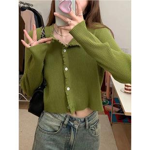 | Cárdigan de punto de manga larga con volantes estilo francés para mujer, otoño e invierno 2023, nueva chaqueta tipo suéter delgada y corta con temperamento |