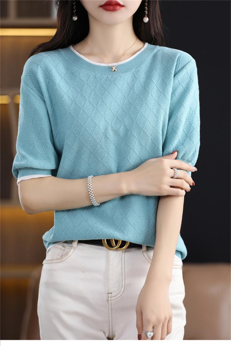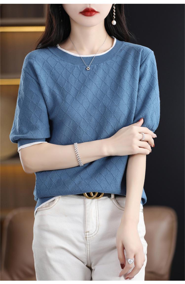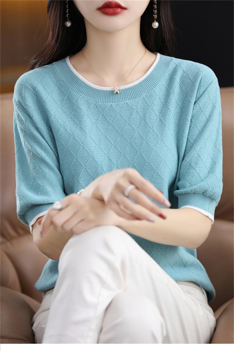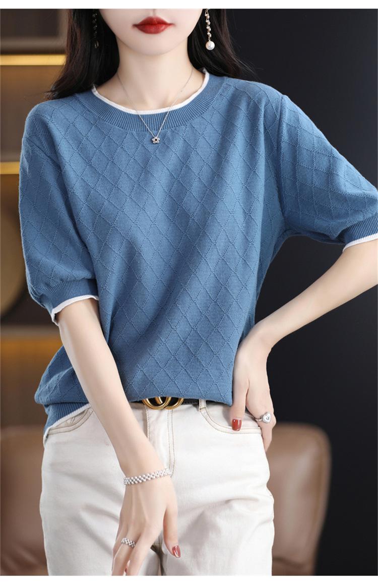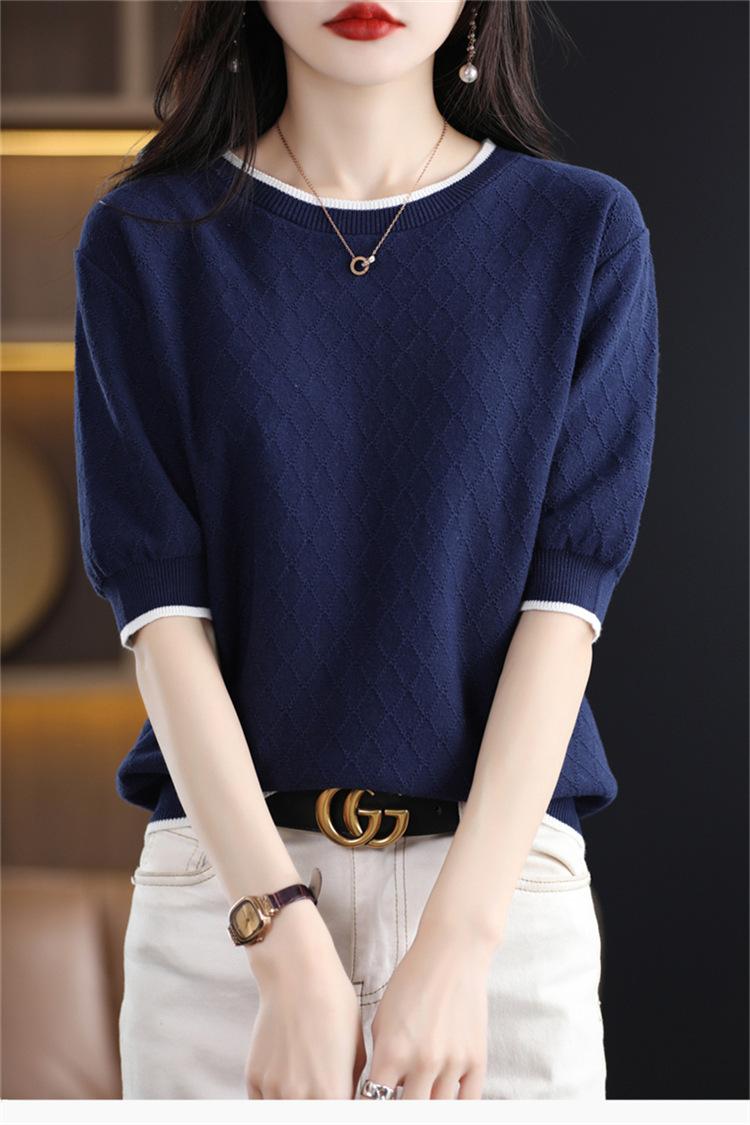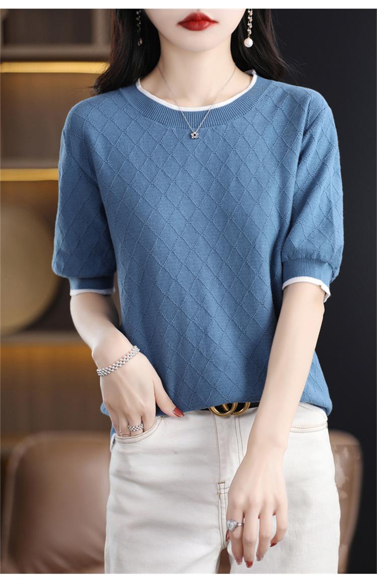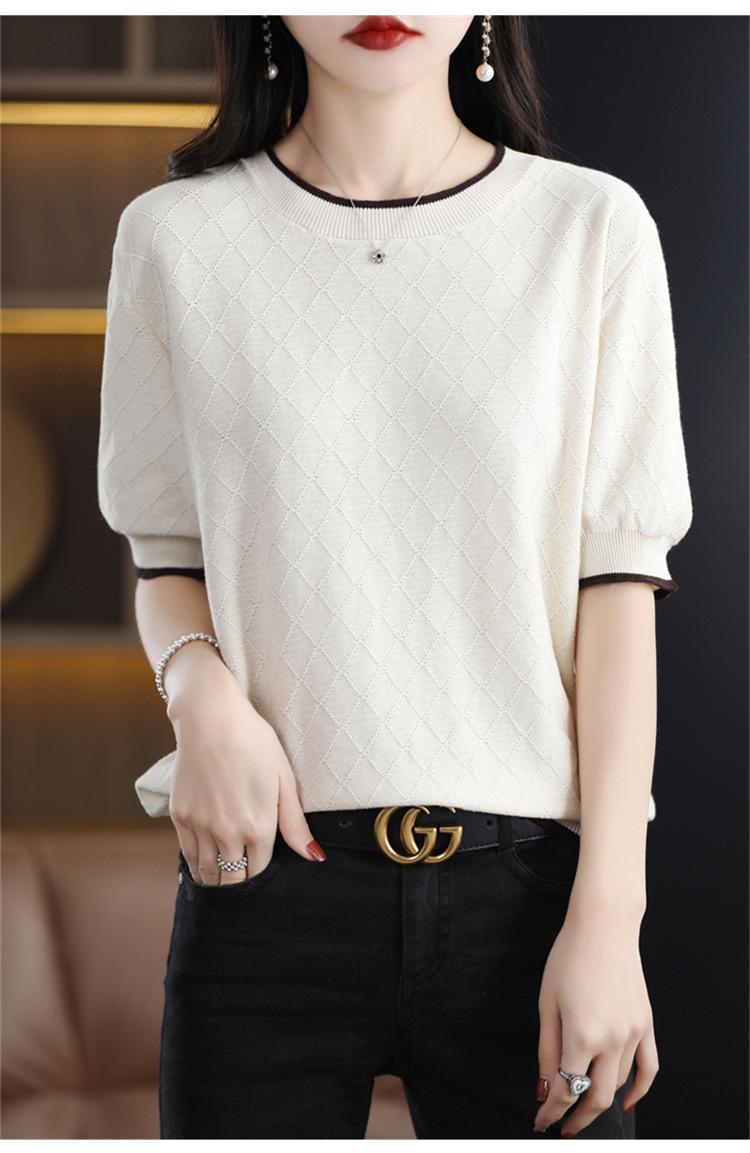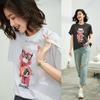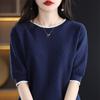 Camiseta de algodón holgada de manga corta con cuello redondo y diamantes a juego para mujer, talla grande, de moda, para verano de 2023