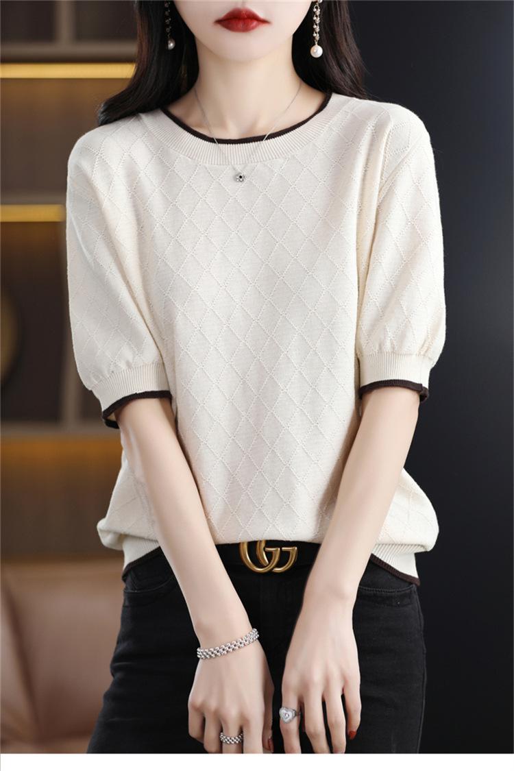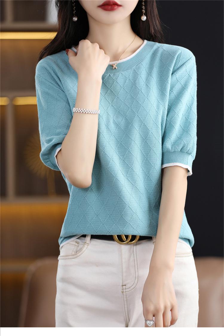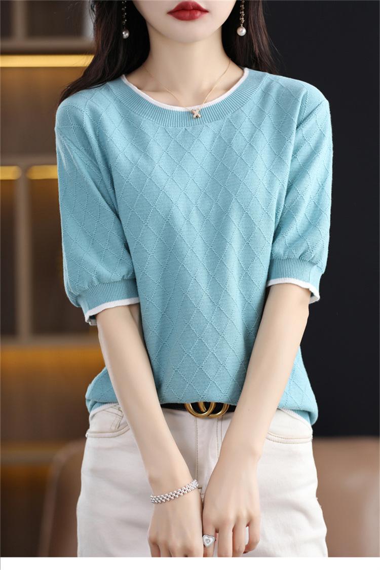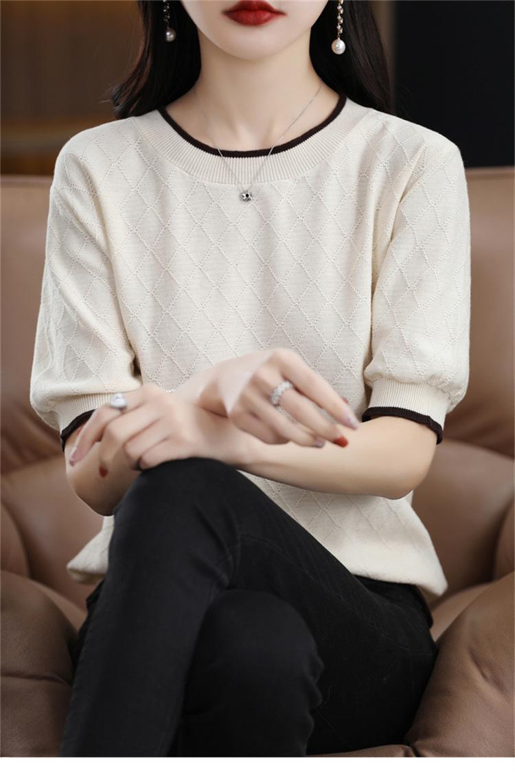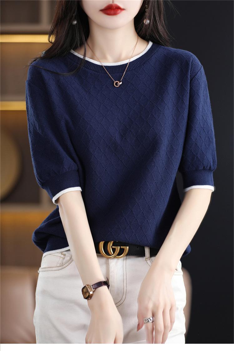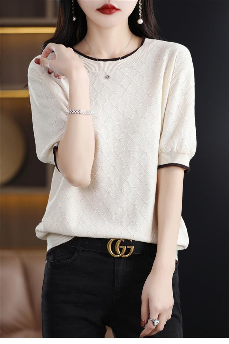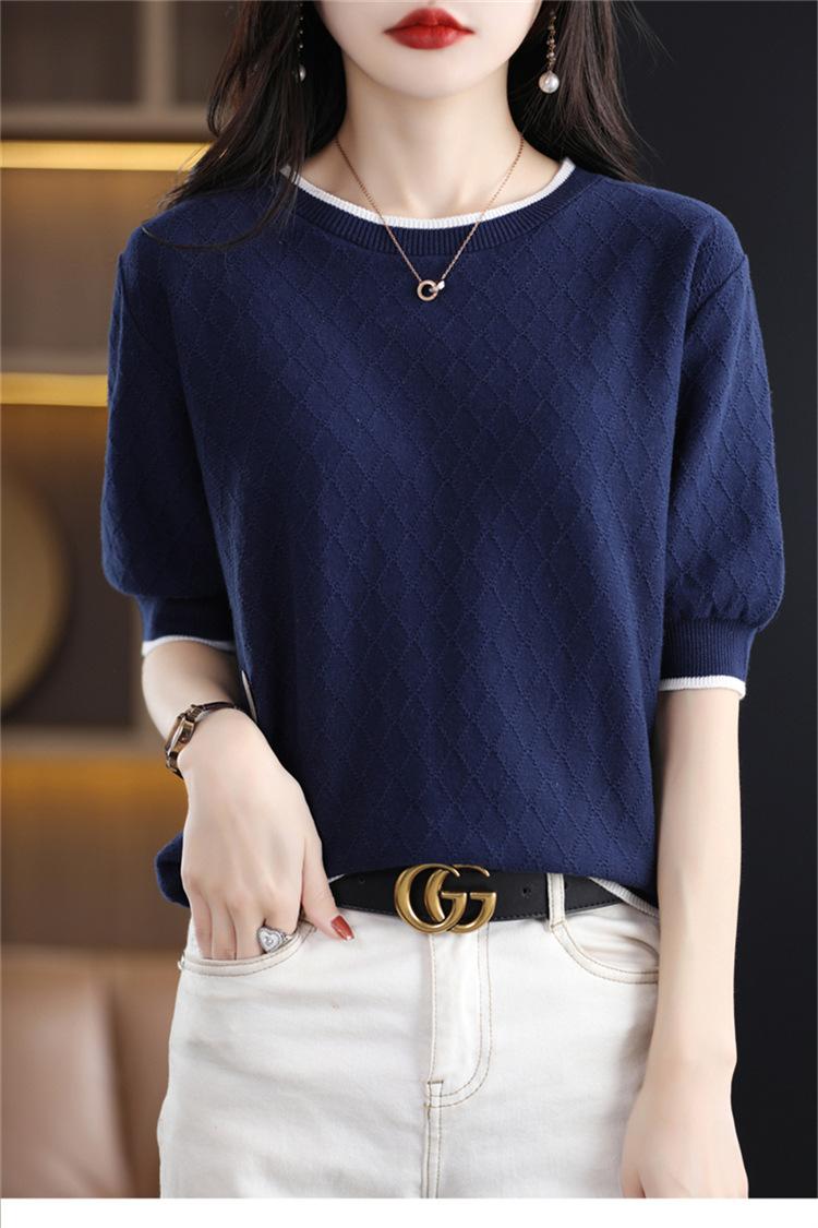 Camiseta de algodón holgada de manga corta con cuello redondo y diamantes a juego para mujer, talla grande, de moda, para verano de 2023
