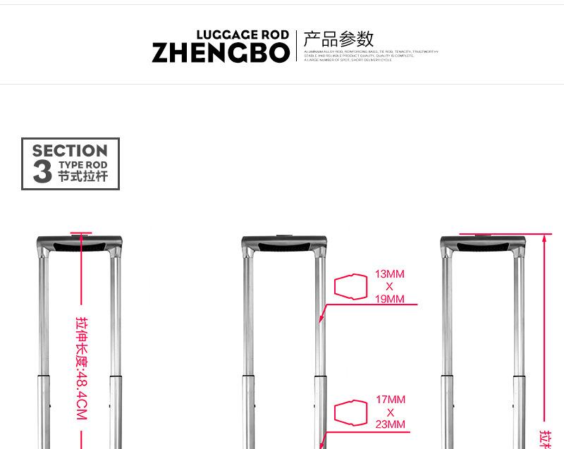 [Zhengbo] Accesorios de equipaje directos de fábrica, barra de tracción de aleación de aluminio, barra de tracción de caja dura incorporada, barra de tracción de equipaje