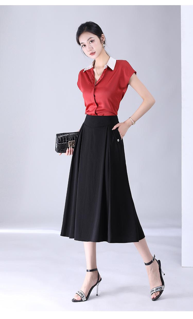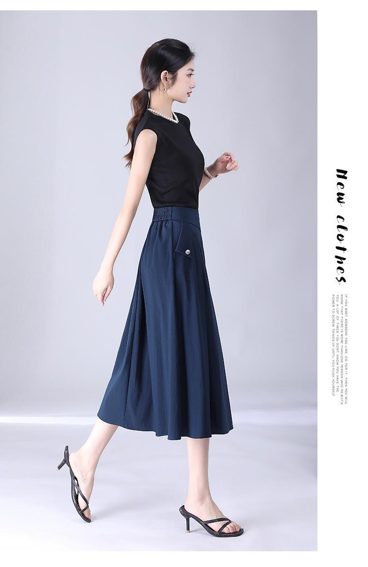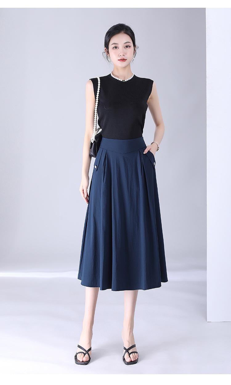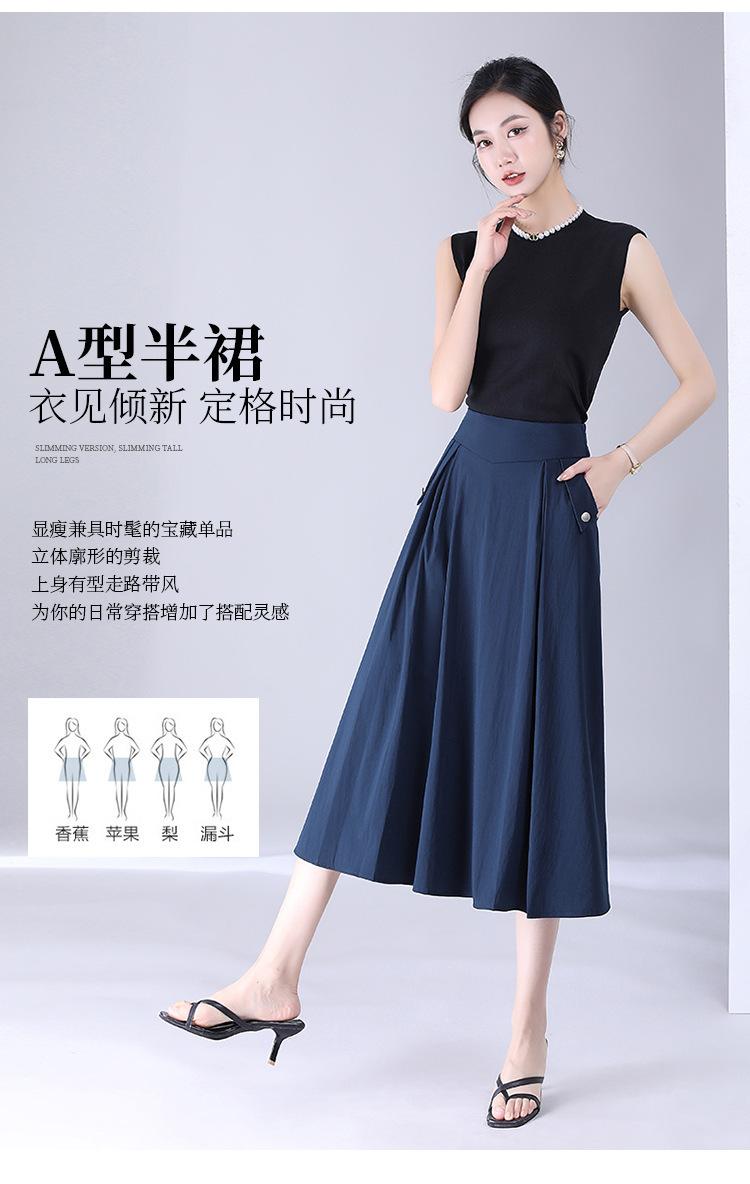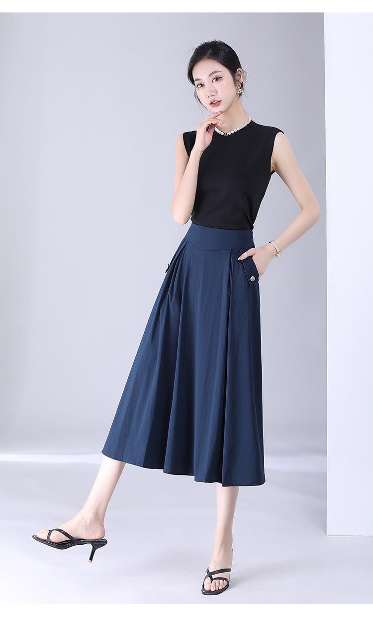 Falda drapeada informal de moda para mujer, falda de longitud media con cintura alta y plisada, para verano de 2023