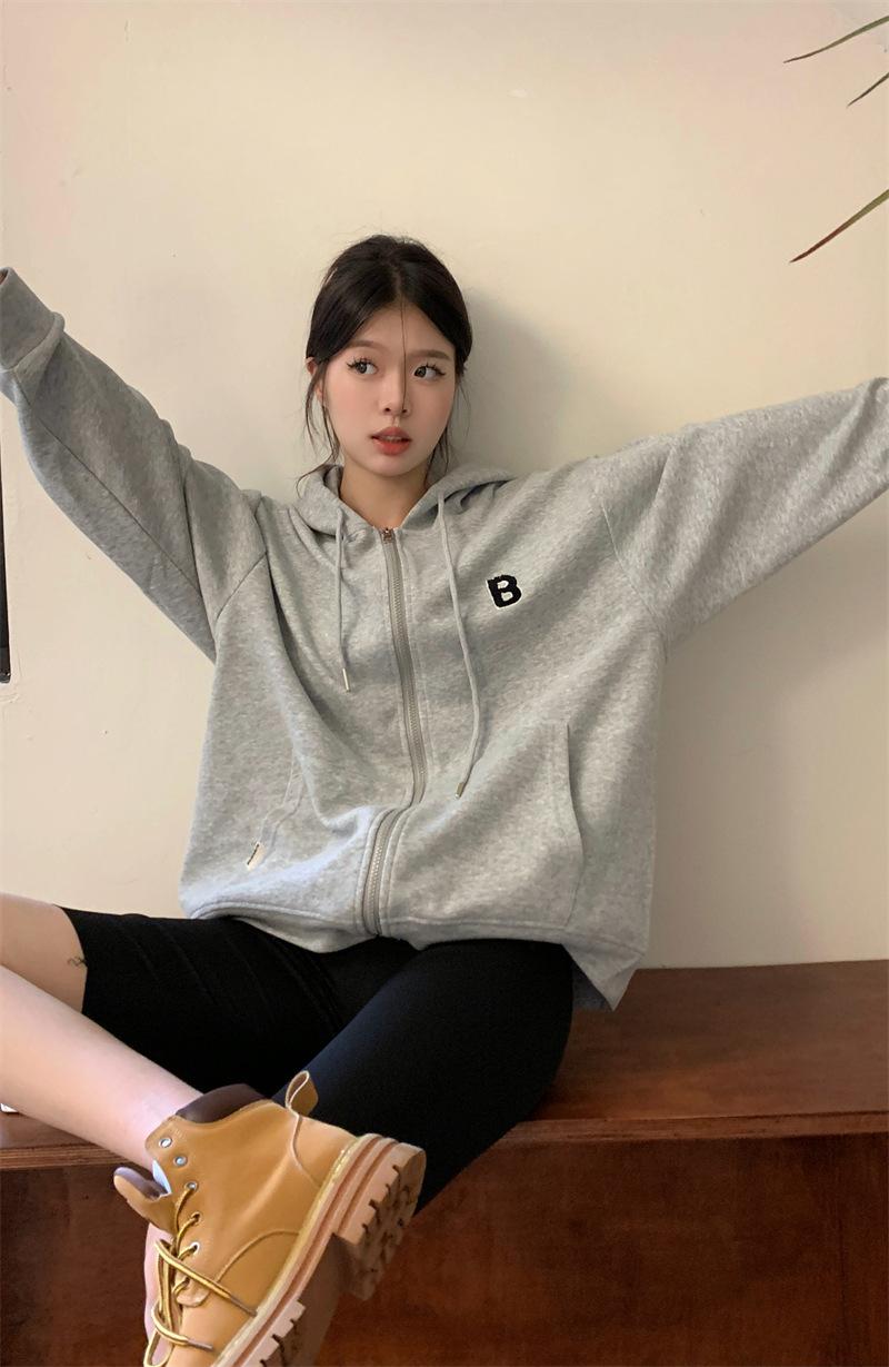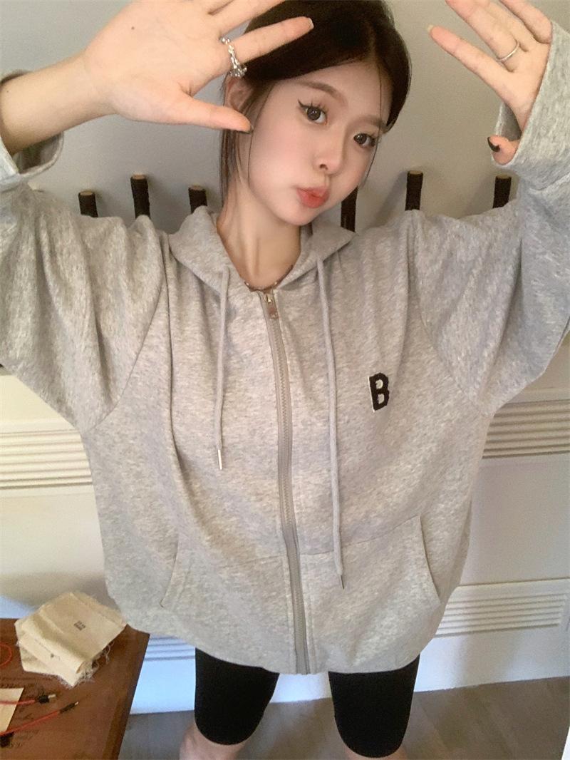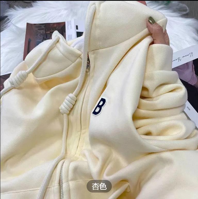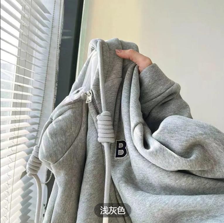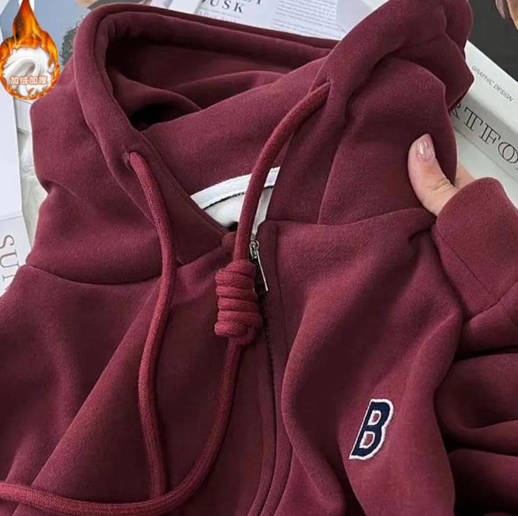 Sudadera de Terciopelo Gruesa y a la Moda al por Mayor para Mujer 2025 para Usar Estilo Holgado y Perezoso Chaqueta con Capucha y Cremallera Bordada