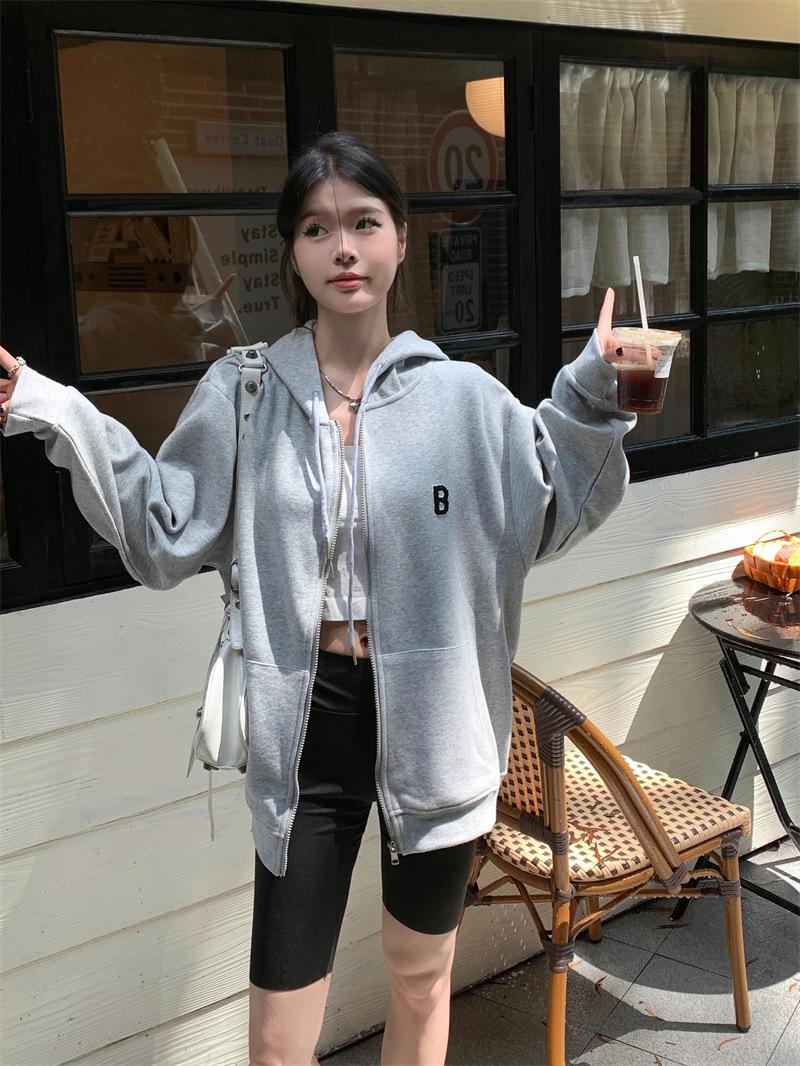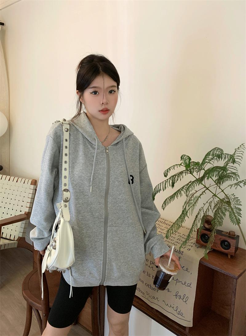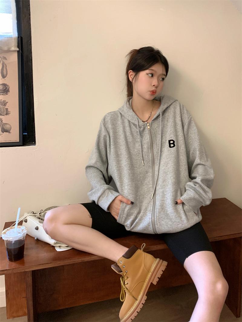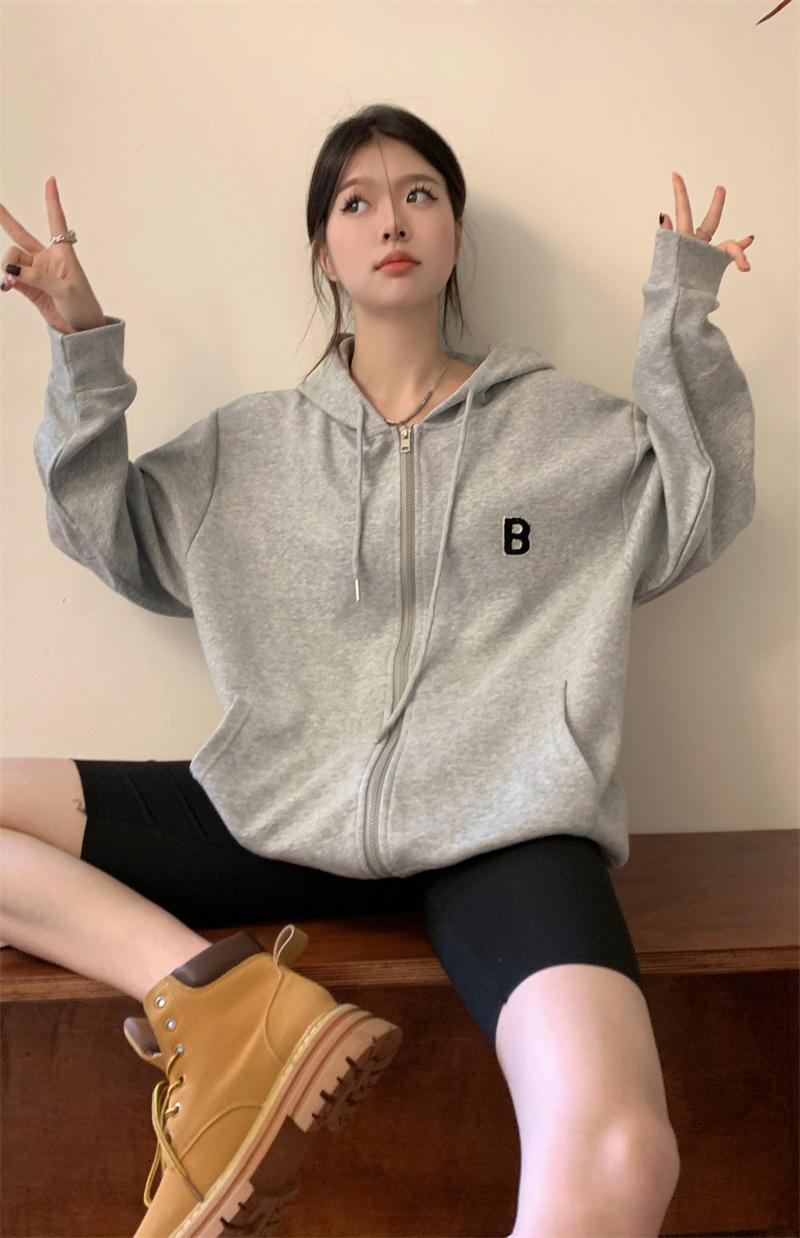 Sudadera de Terciopelo Gruesa y a la Moda al por Mayor para Mujer 2025 para Usar Estilo Holgado y Perezoso Chaqueta con Capucha y Cremallera Bordada