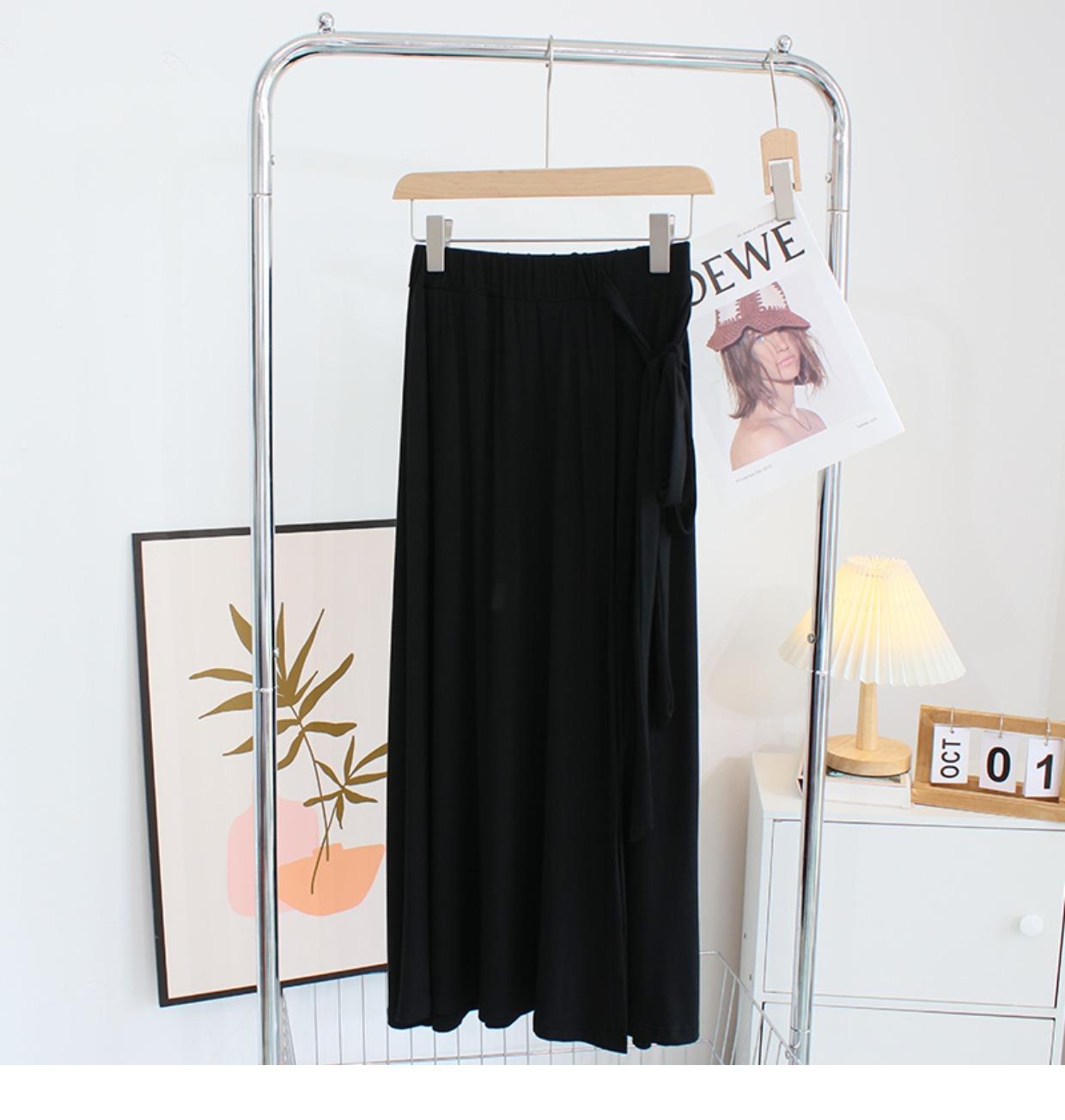 Falda modal de verano para mujer, color liso, con abertura, informal, holgada, drapeada, suave, con diseño encerado, con tirantes frescos, falda grande con vuelo