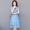 Vestido blanco de verano nuevo estilo coreano elegante moda pastel falda costura media longitud color gasa falda