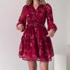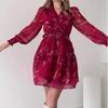 Otoño 2024 nuevo vestido corto de temperamento estampado de moda transfronteriza europea y americana transfronteriza de Amazon de manga larga y cintura alta
