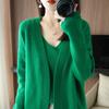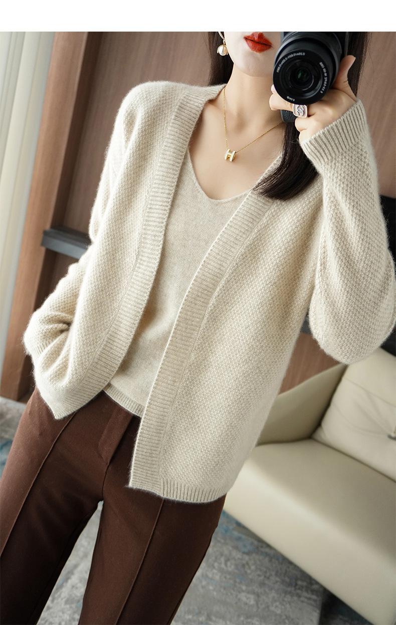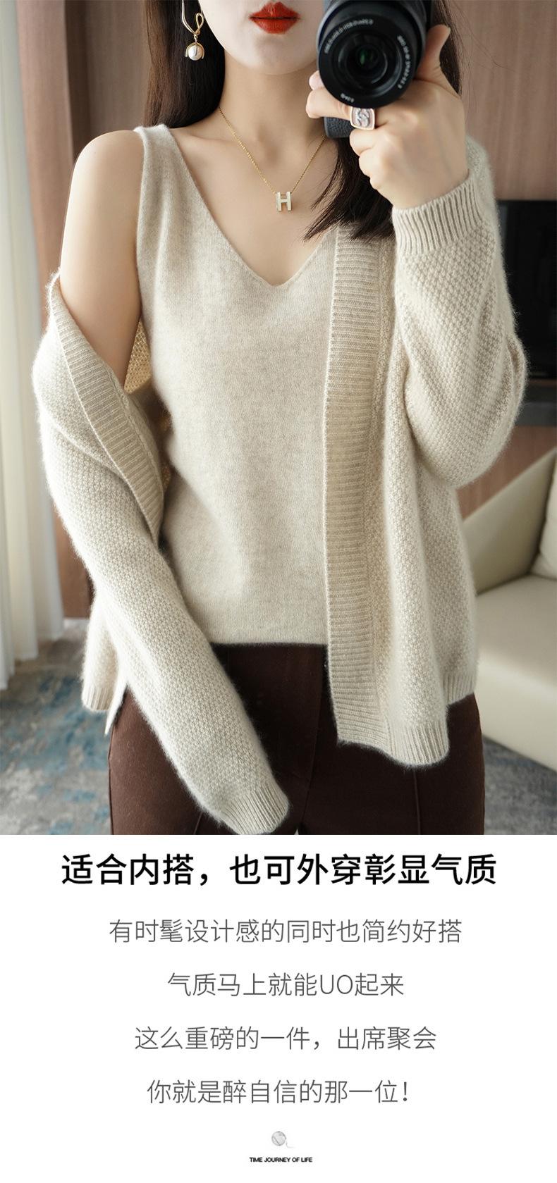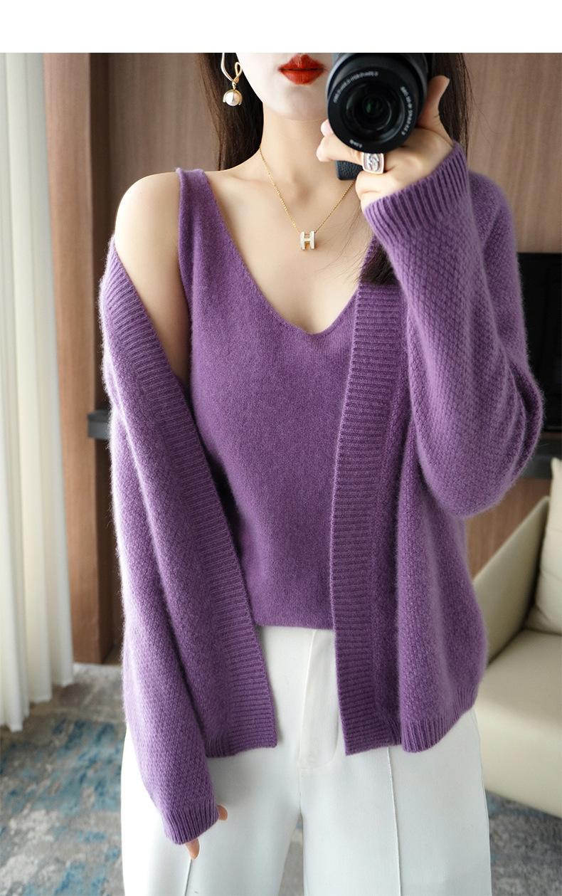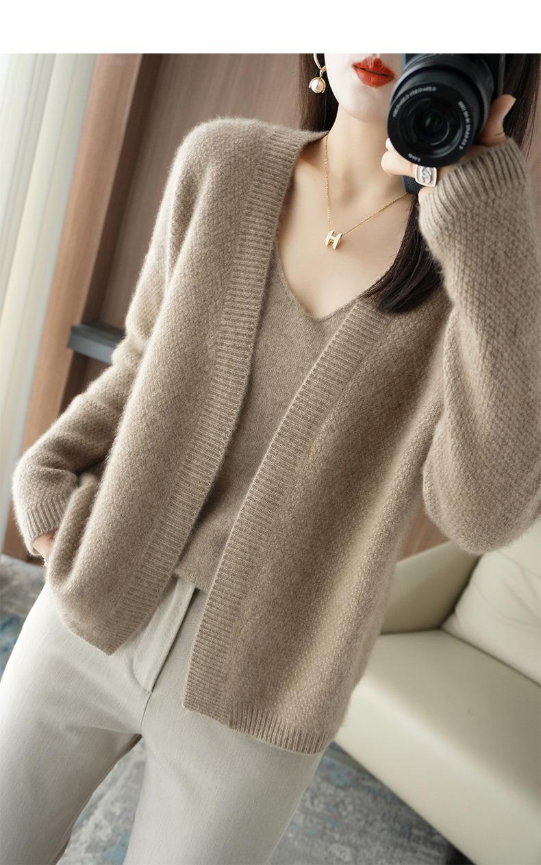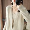 Cárdigan de dos piezas para otoño e invierno, nuevo, con cuello en V, para mujer, de color liso, con tirantes, chaqueta de punto holgada.
