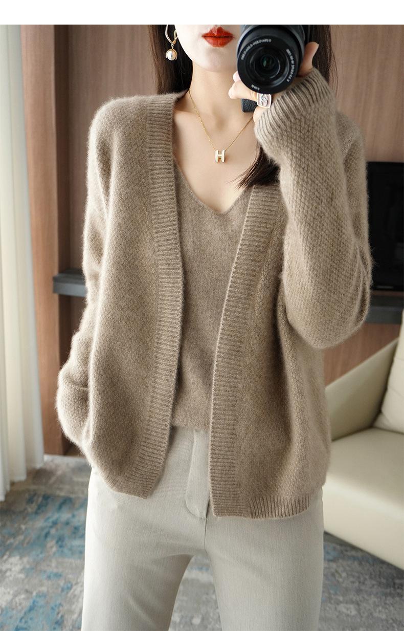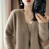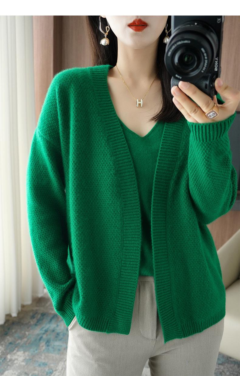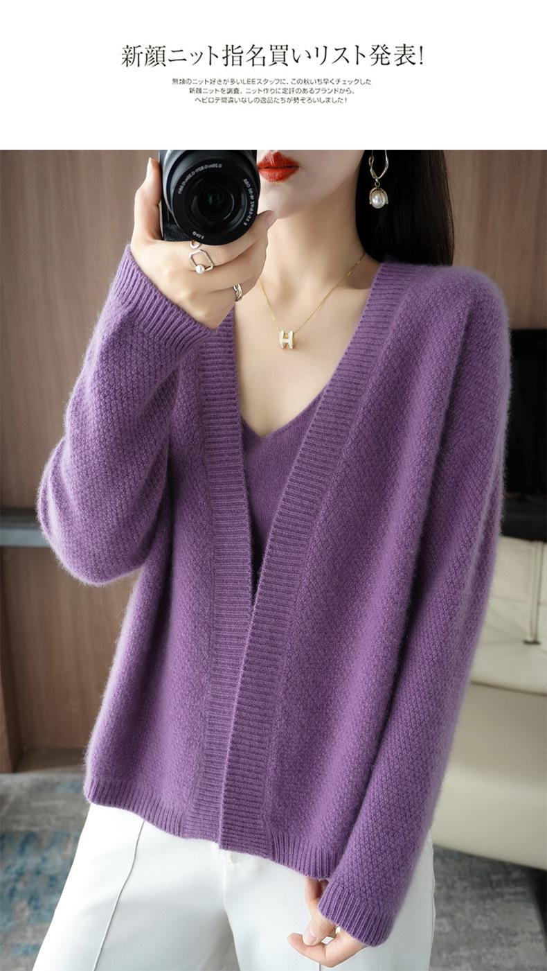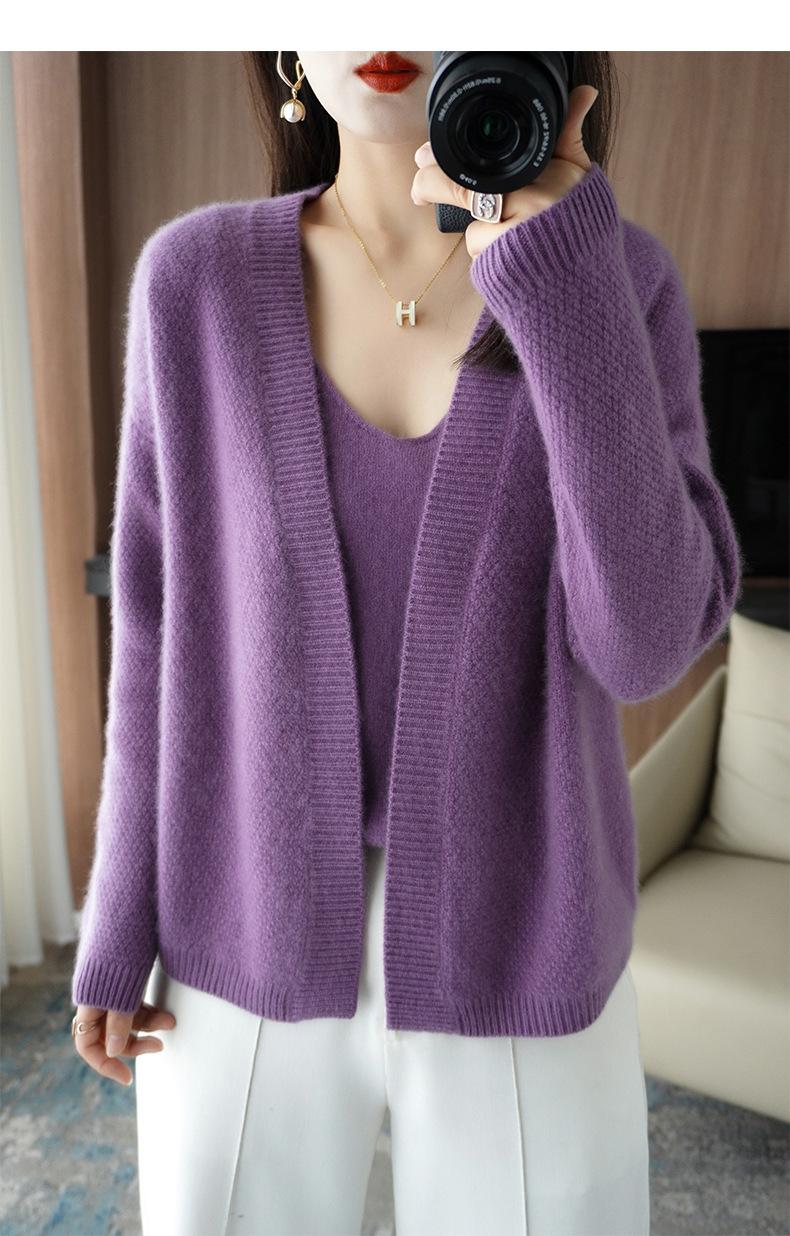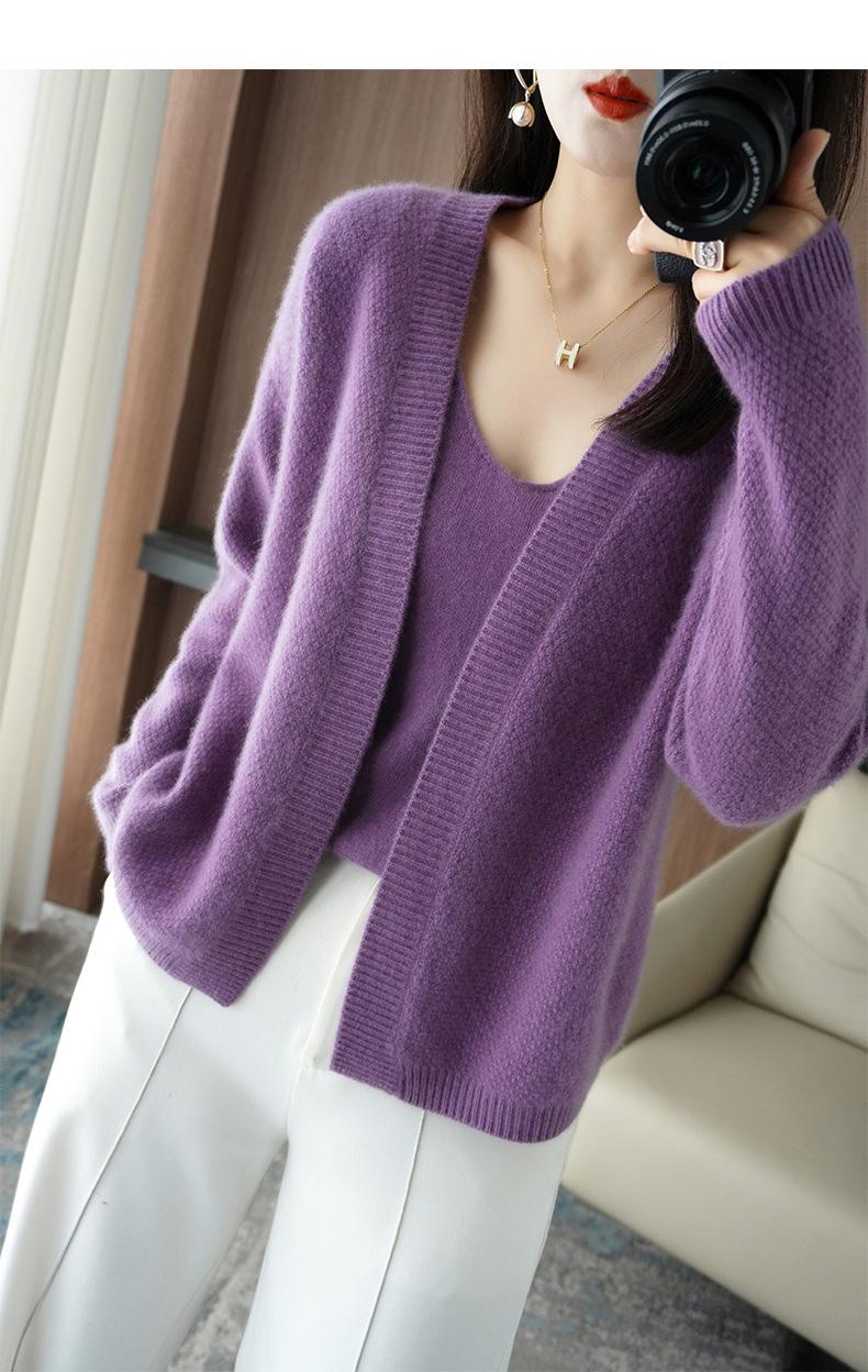 Cárdigan de dos piezas para otoño e invierno, nuevo, con cuello en V, para mujer, de color liso, con tirantes, chaqueta de punto holgada.