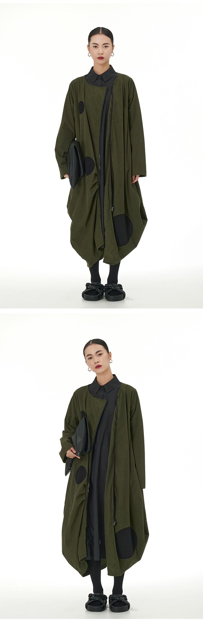 Abrigo de lunares con ondas originales de temperamento europeo y americano, primavera 2025, nuevo abrigo holgado y ajustado de talla grande para mujer, tendencia 11063