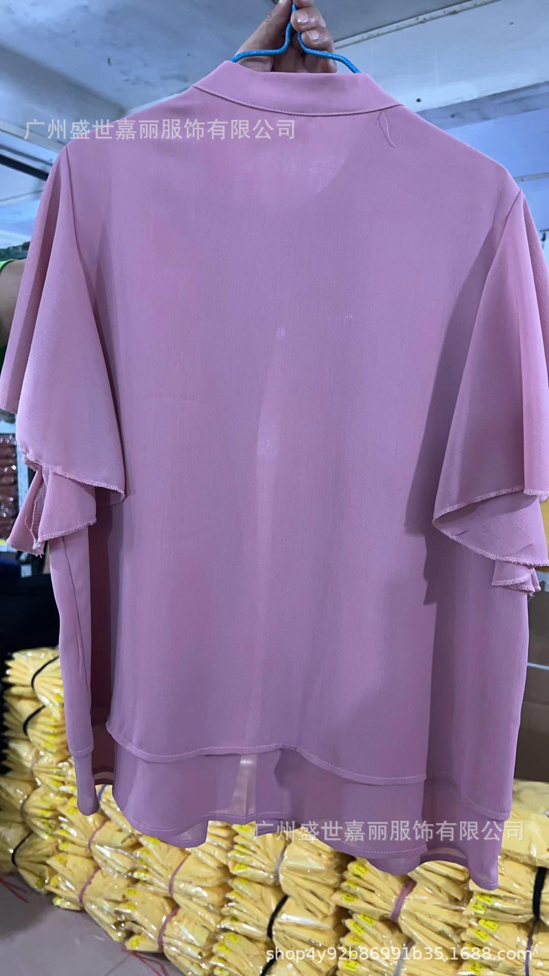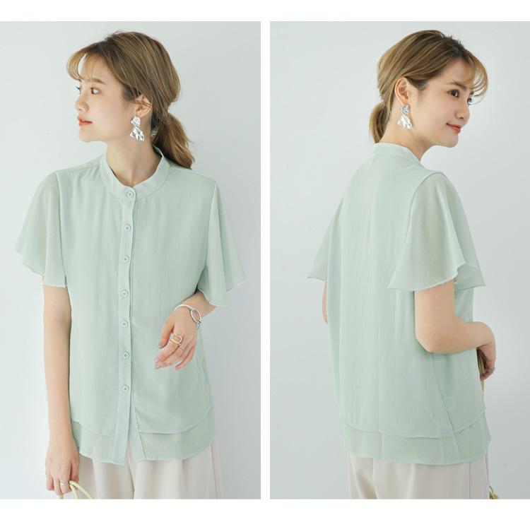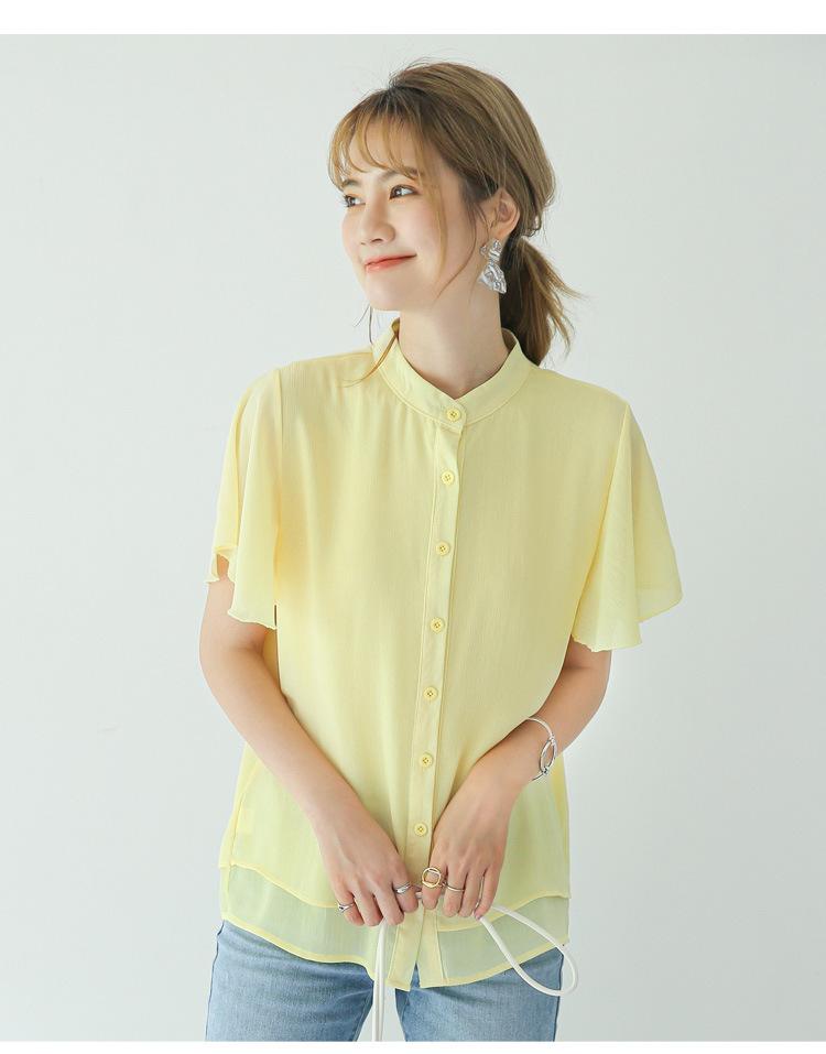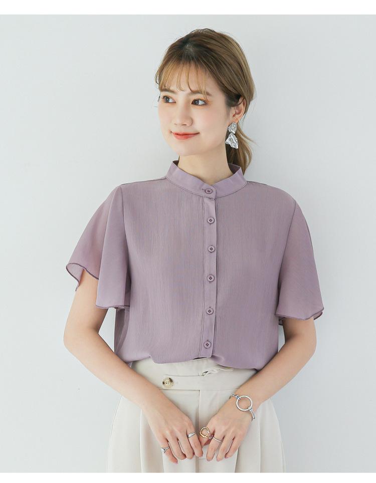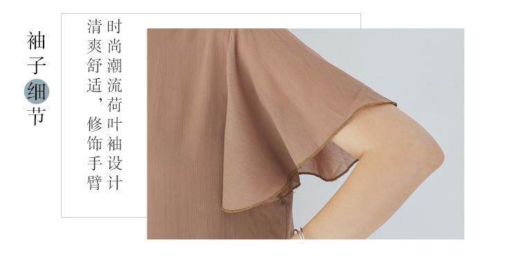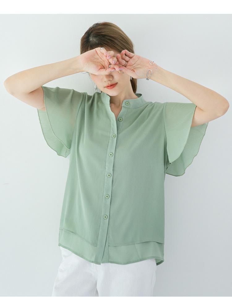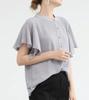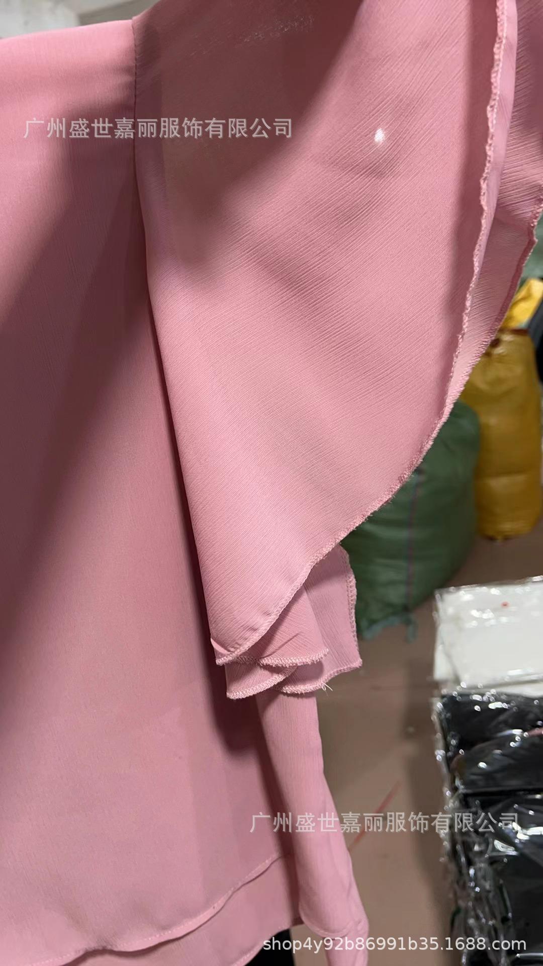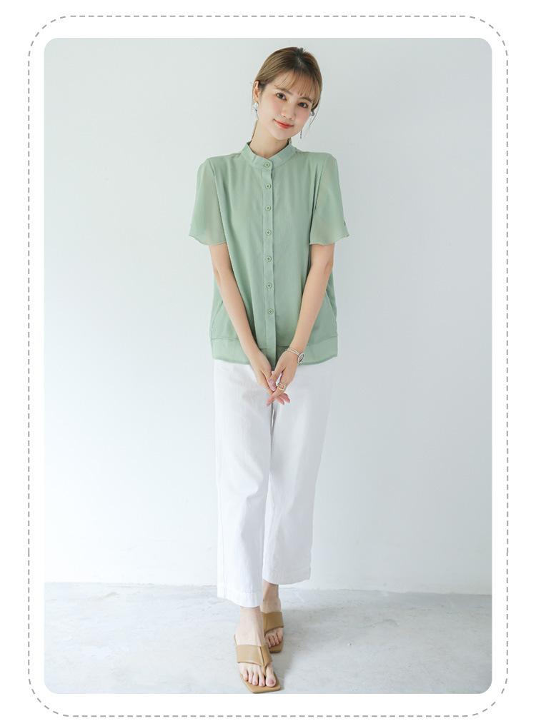 14 Colores en Stock 2025 Nuevo Estilo de Verano Suelto Cuello Alto Color Puro Camisa de Manga Corta con Volantes Top de Chifón para Mujer