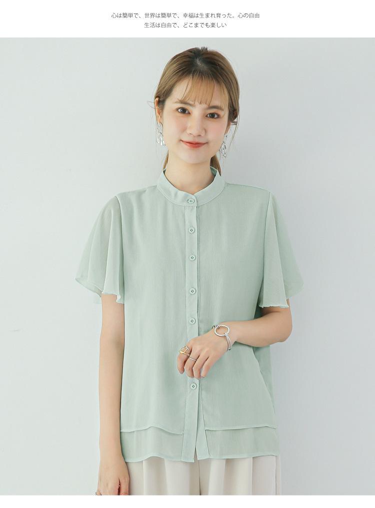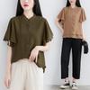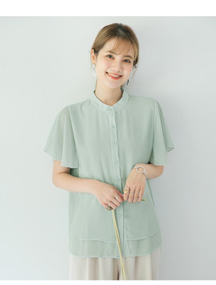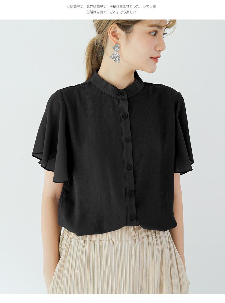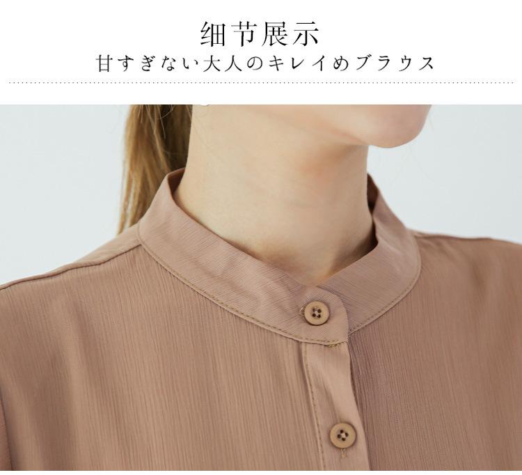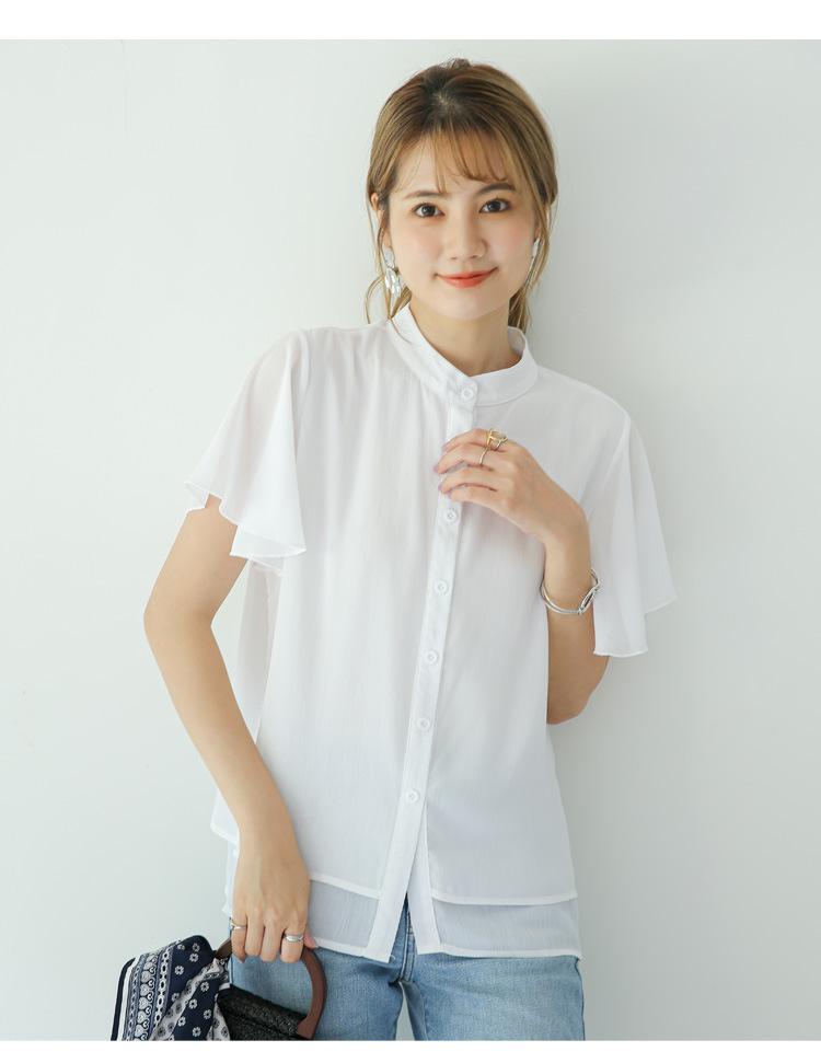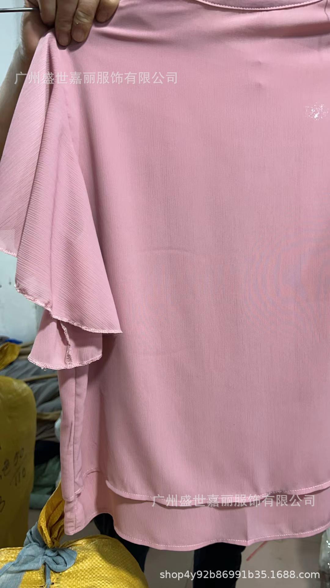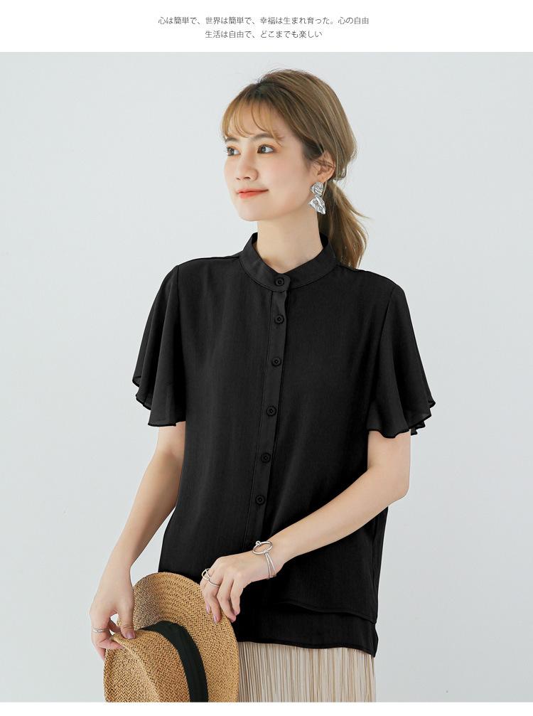 14 Colores en Stock 2025 Nuevo Estilo de Verano Suelto Cuello Alto Color Puro Camisa de Manga Corta con Volantes Top de Chifón para Mujer
