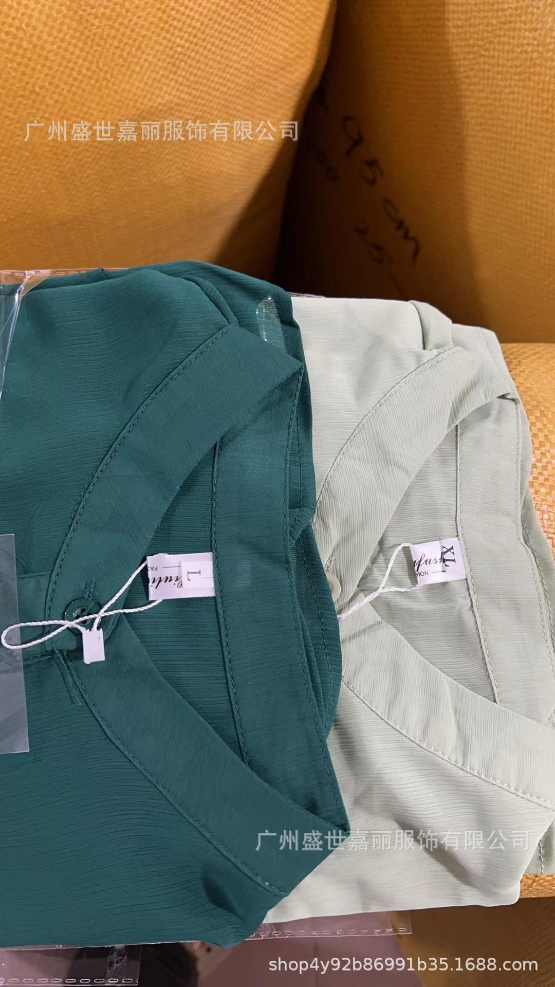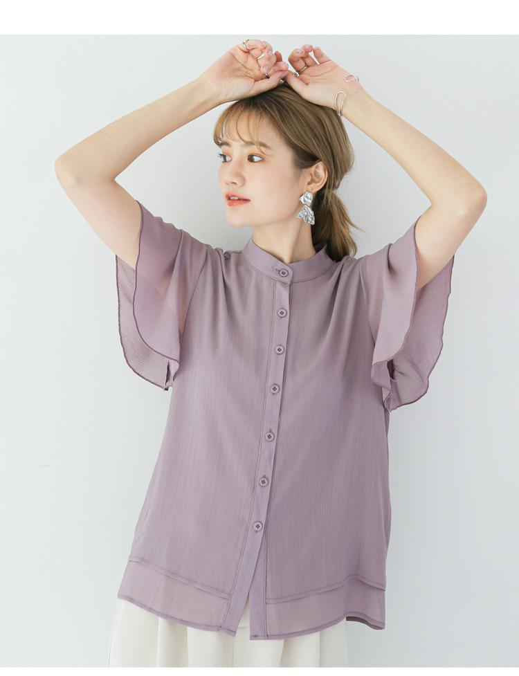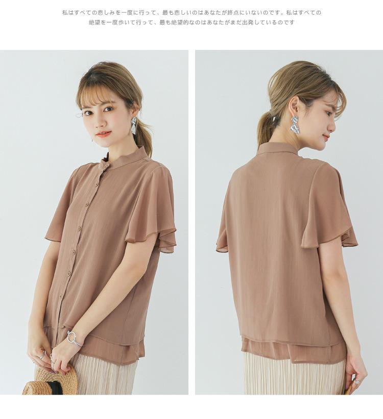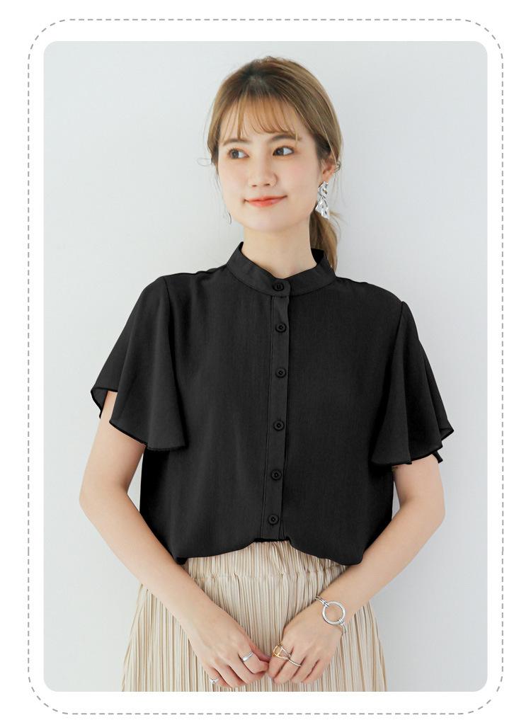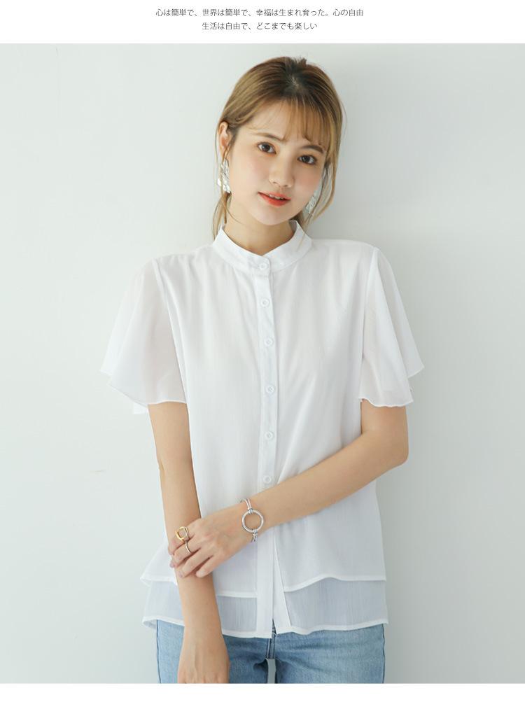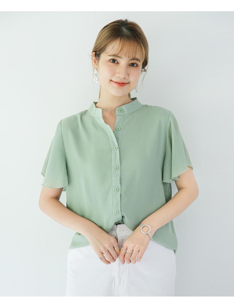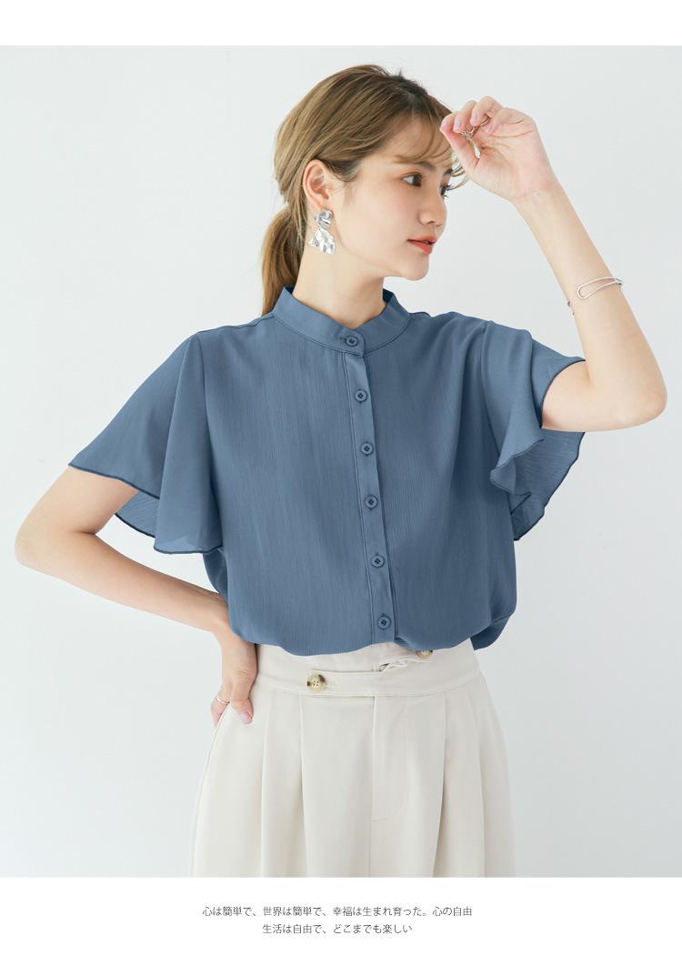 14 Colores en Stock 2025 Nuevo Estilo de Verano Suelto Cuello Alto Color Puro Camisa de Manga Corta con Volantes Top de Chifón para Mujer