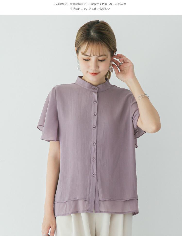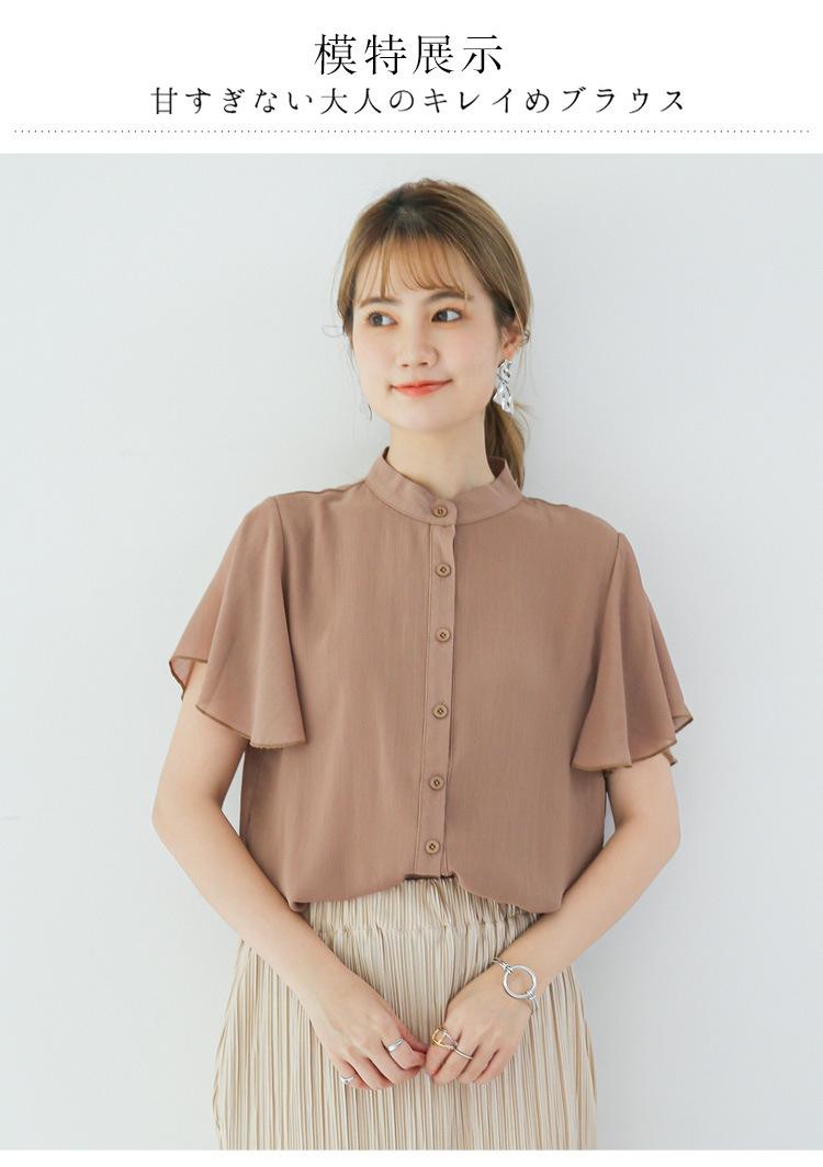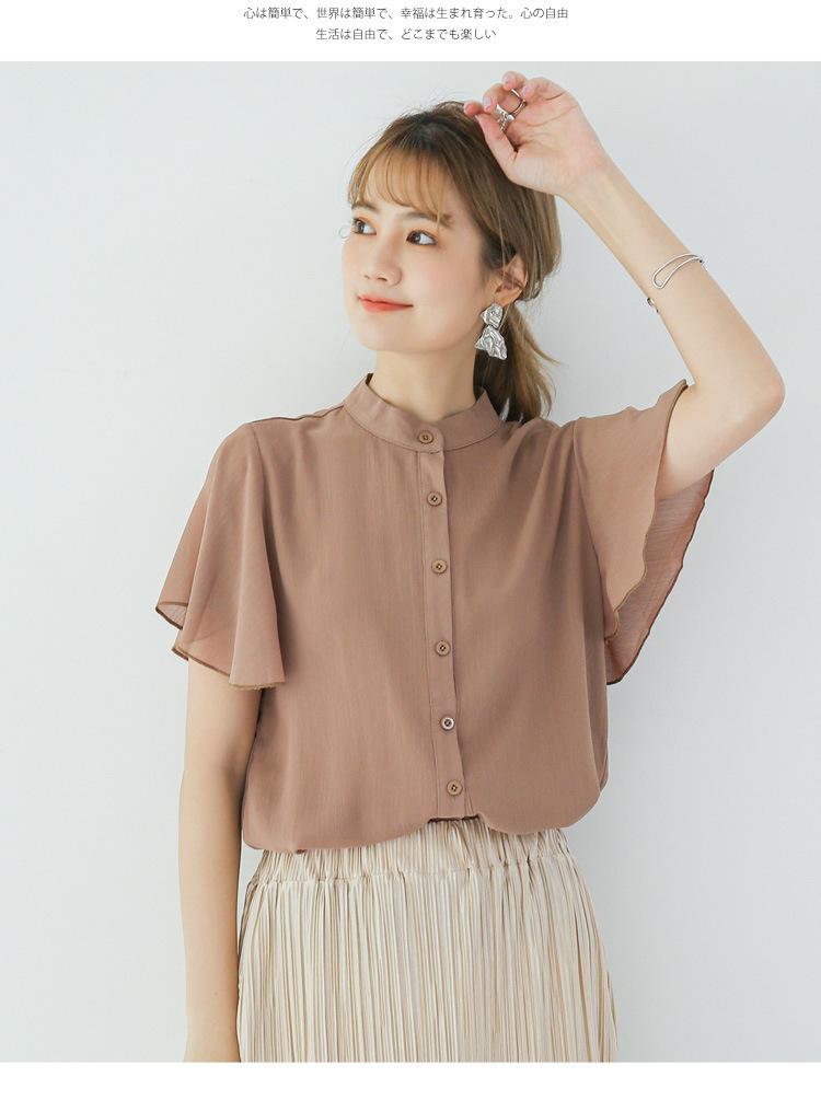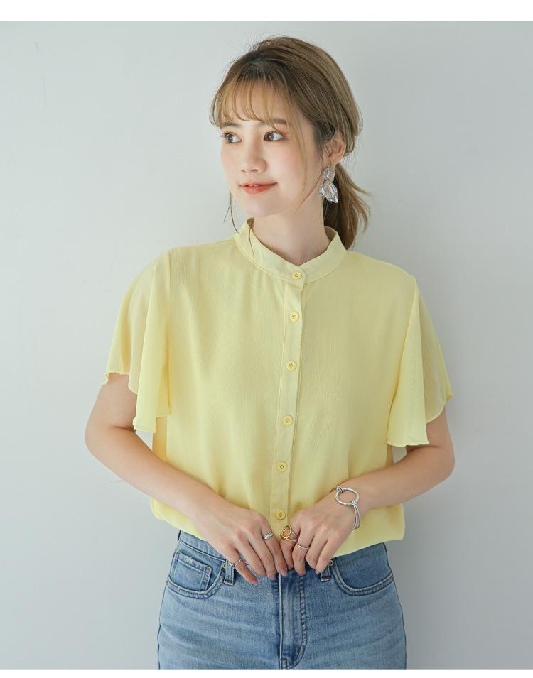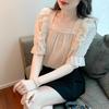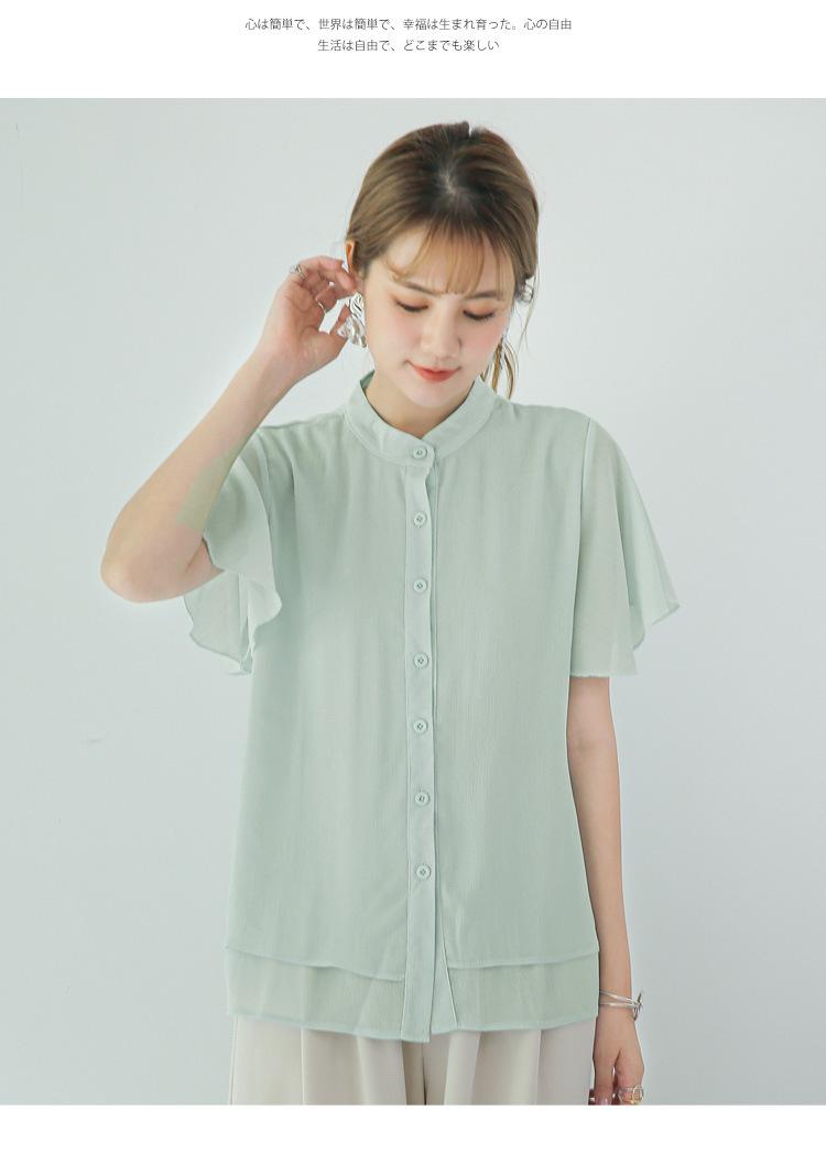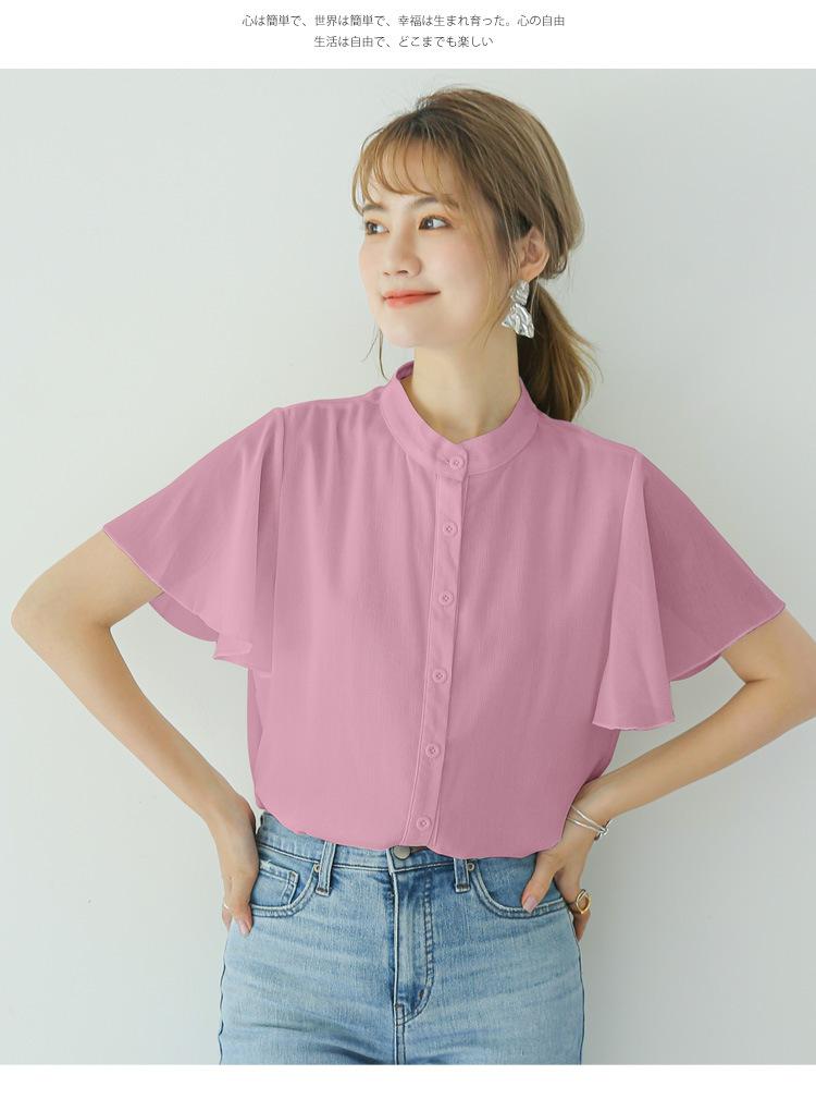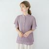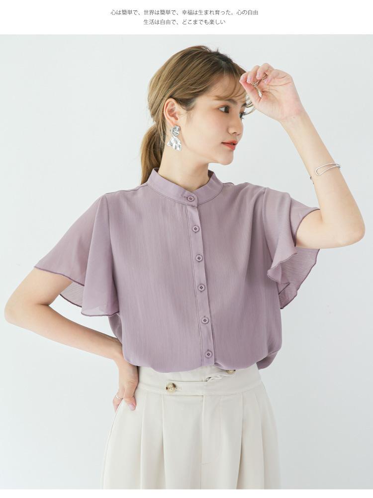 14 Colores en Stock 2025 Nuevo Estilo de Verano Suelto Cuello Alto Color Puro Camisa de Manga Corta con Volantes Top de Chifón para Mujer