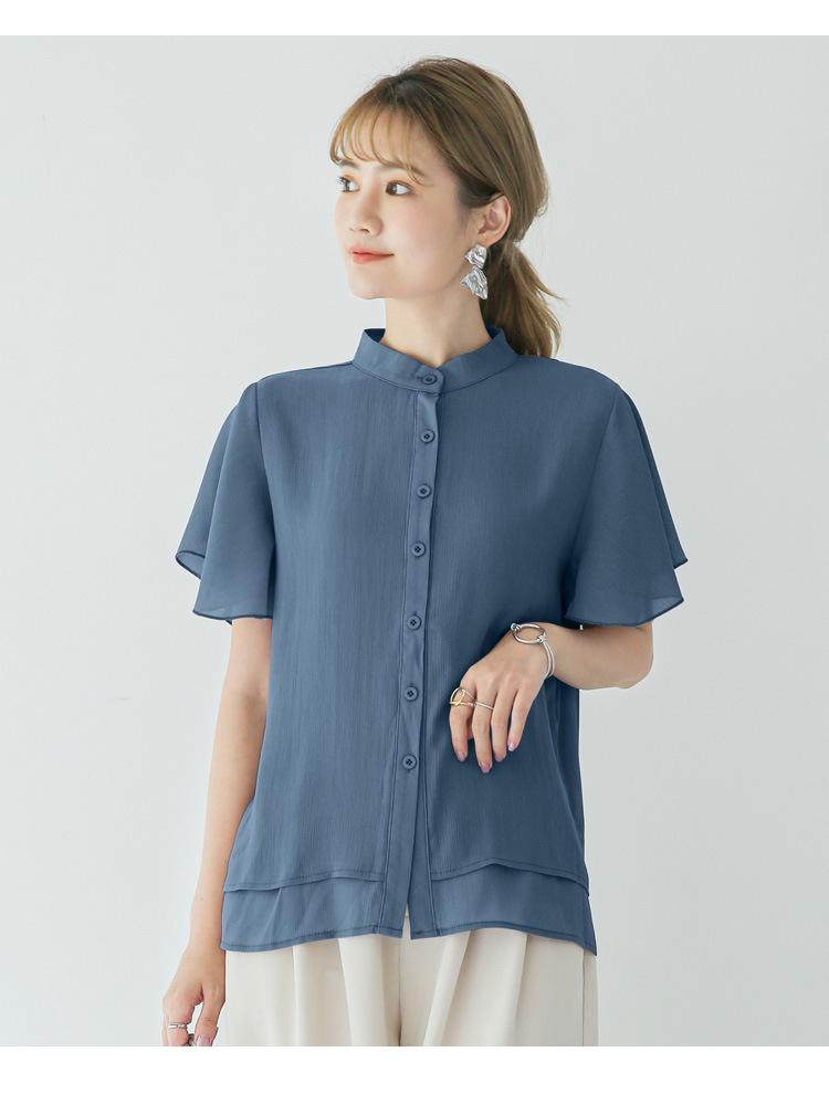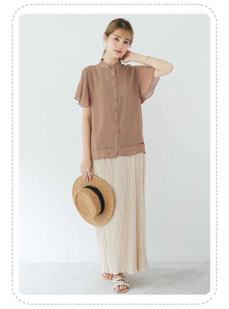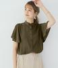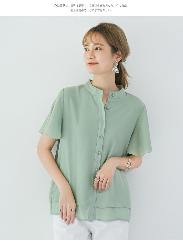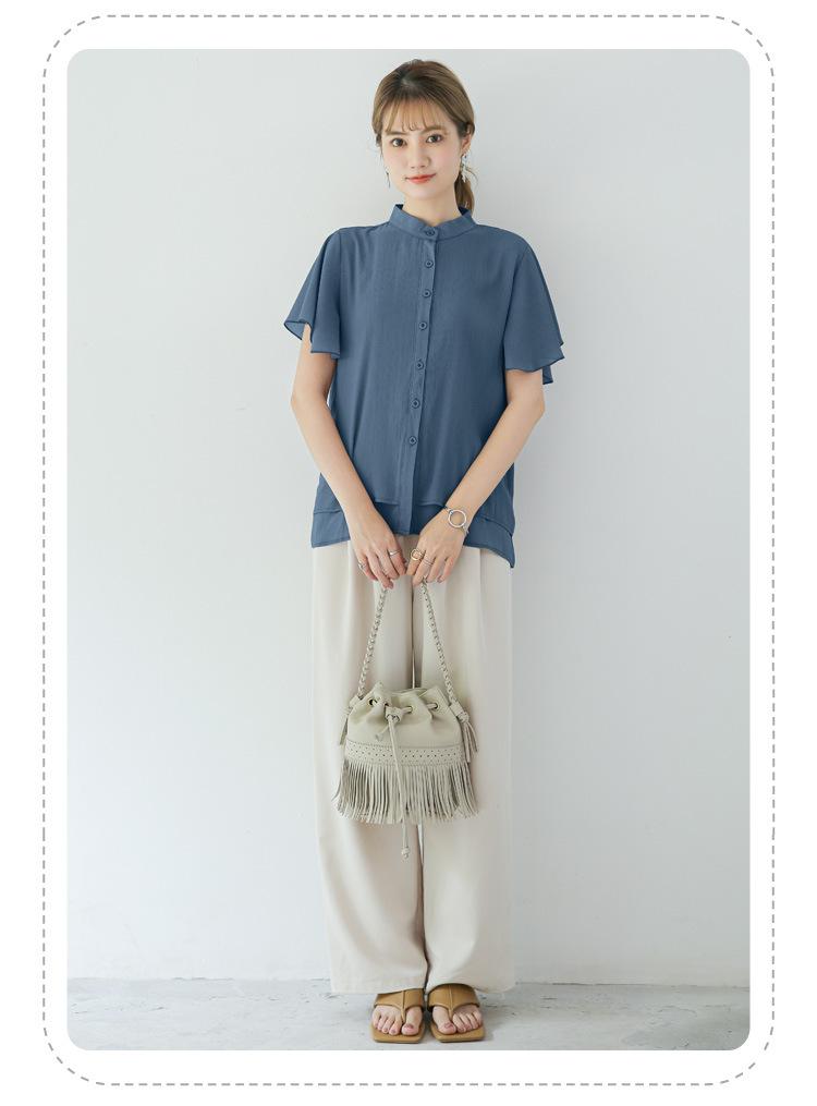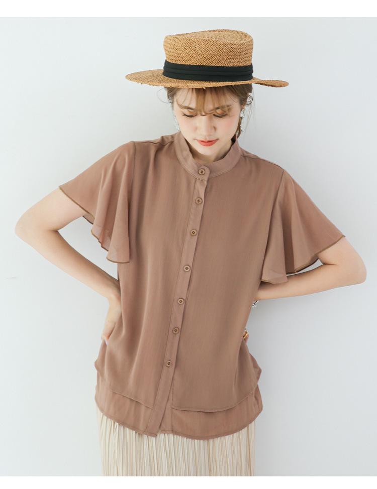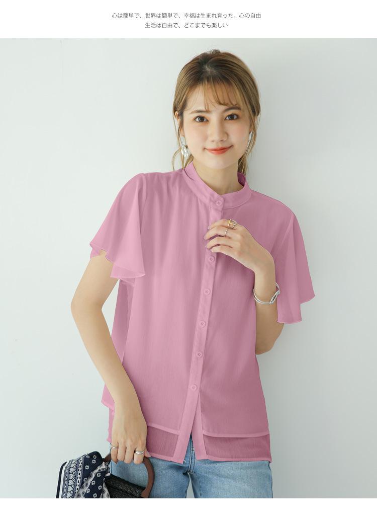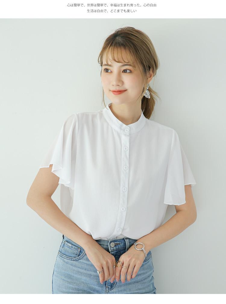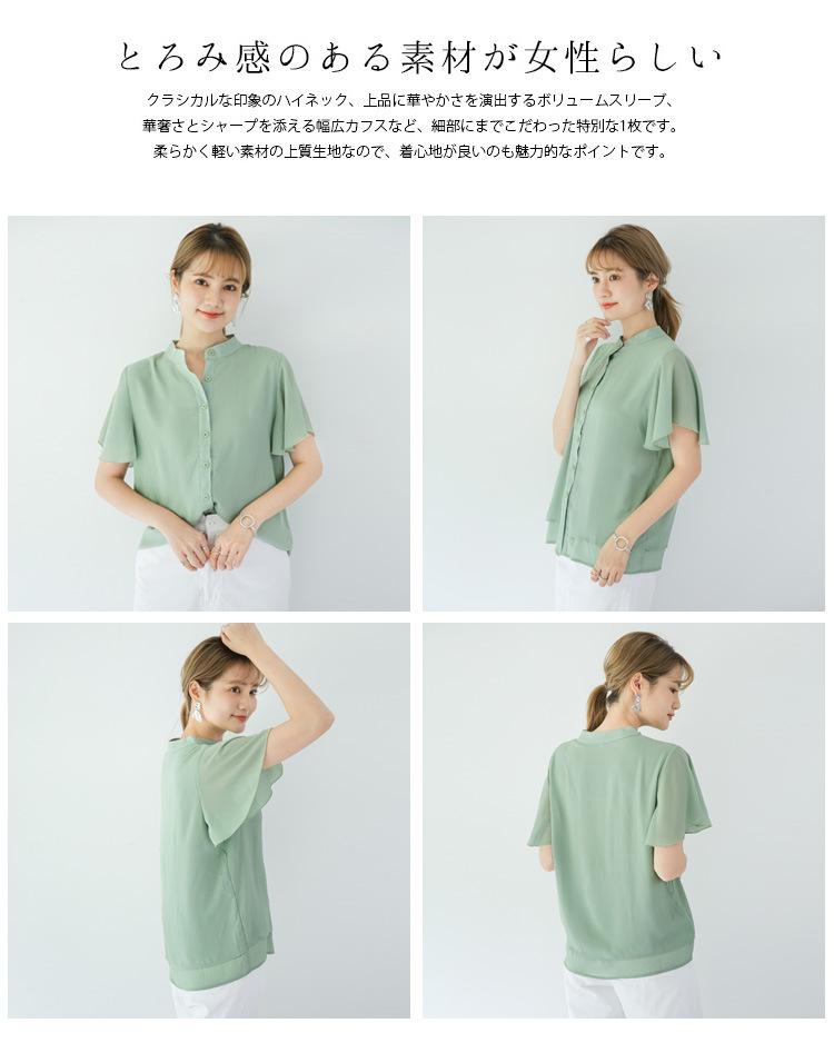 14 Colores en Stock 2025 Nuevo Estilo de Verano Suelto Cuello Alto Color Puro Camisa de Manga Corta con Volantes Top de Chifón para Mujer