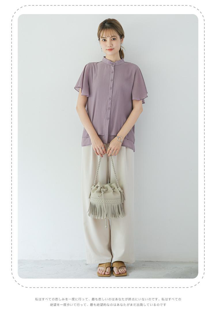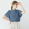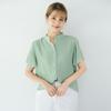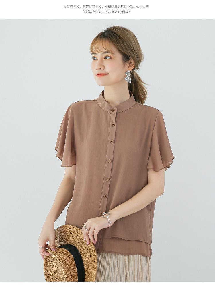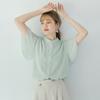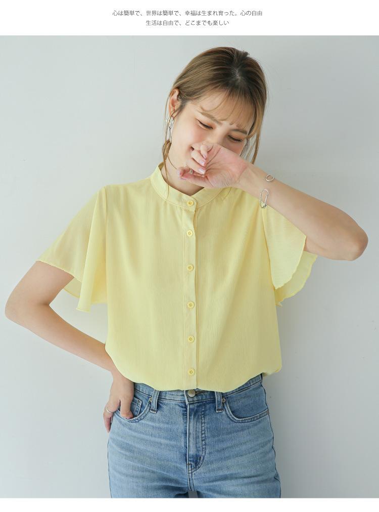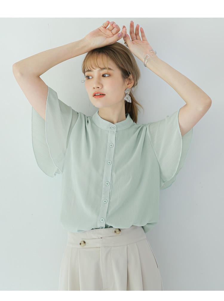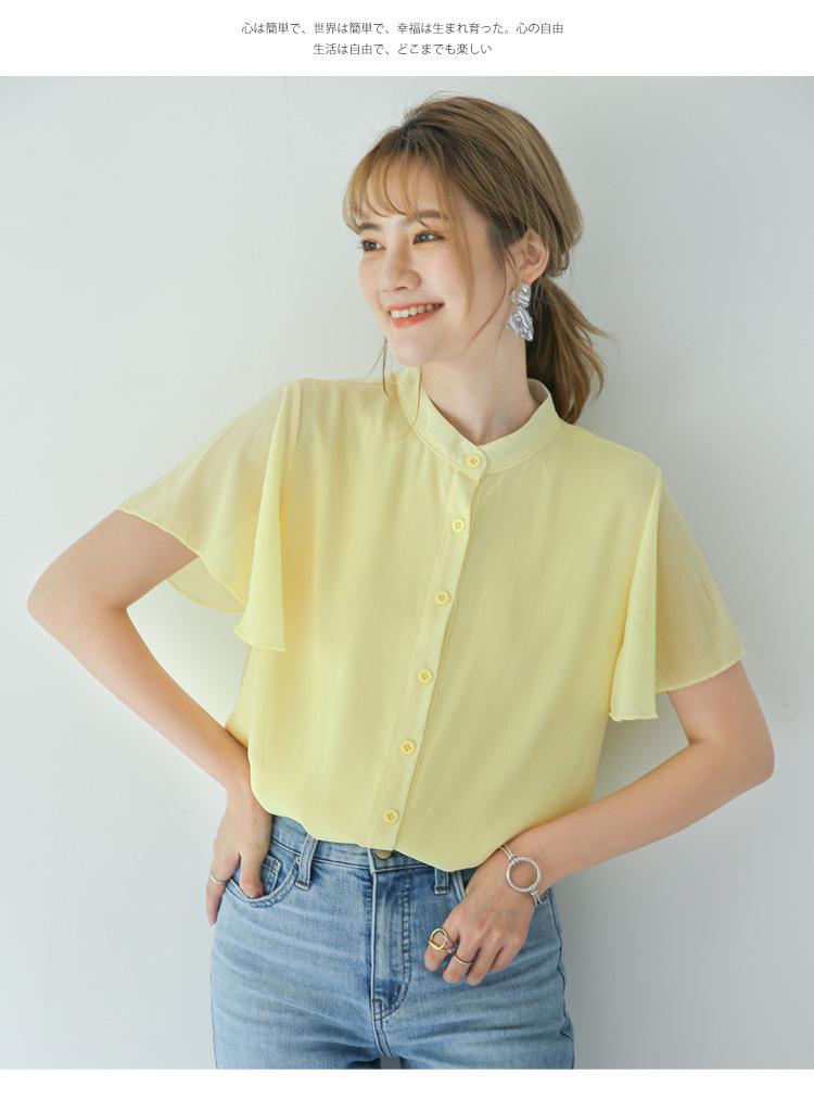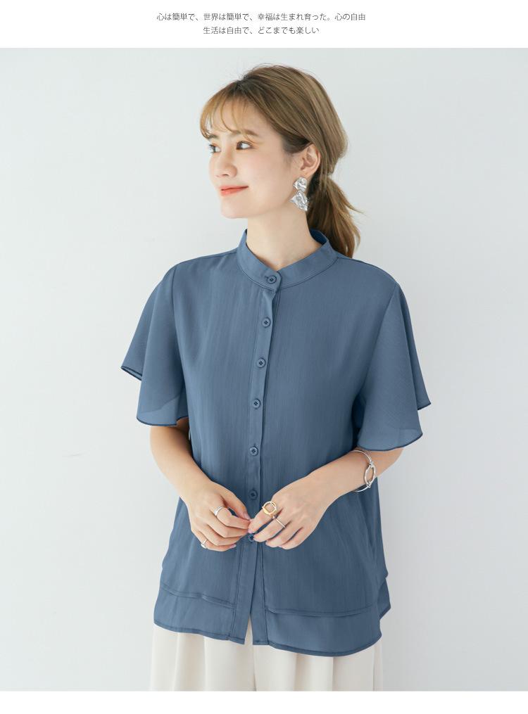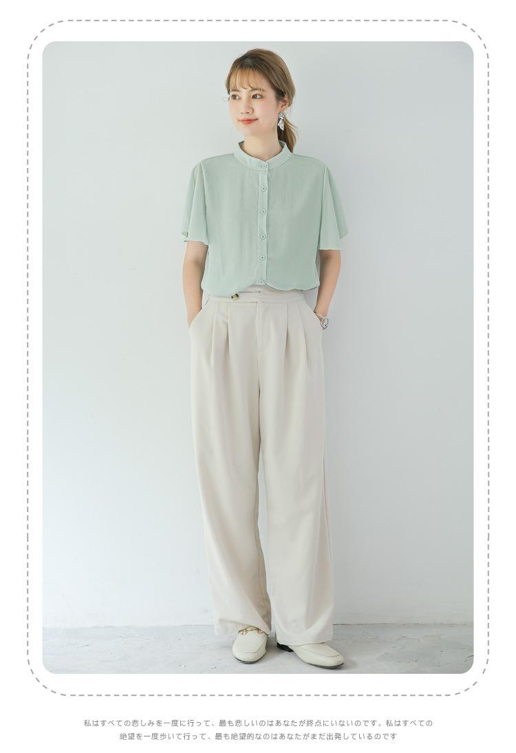 14 Colores en Stock 2025 Nuevo Estilo de Verano Suelto Cuello Alto Color Puro Camisa de Manga Corta con Volantes Top de Chifón para Mujer