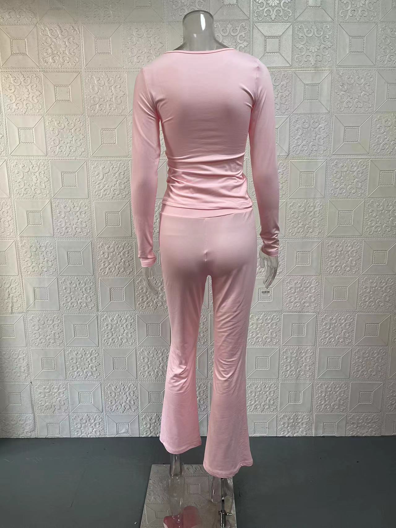 Traje de pantalón acampanado de cintura baja, ajustado, de color sólido, de nueva moda, para comercio exterior de Amazon, Europa y Estados Unidos, transfronterizo, 2023