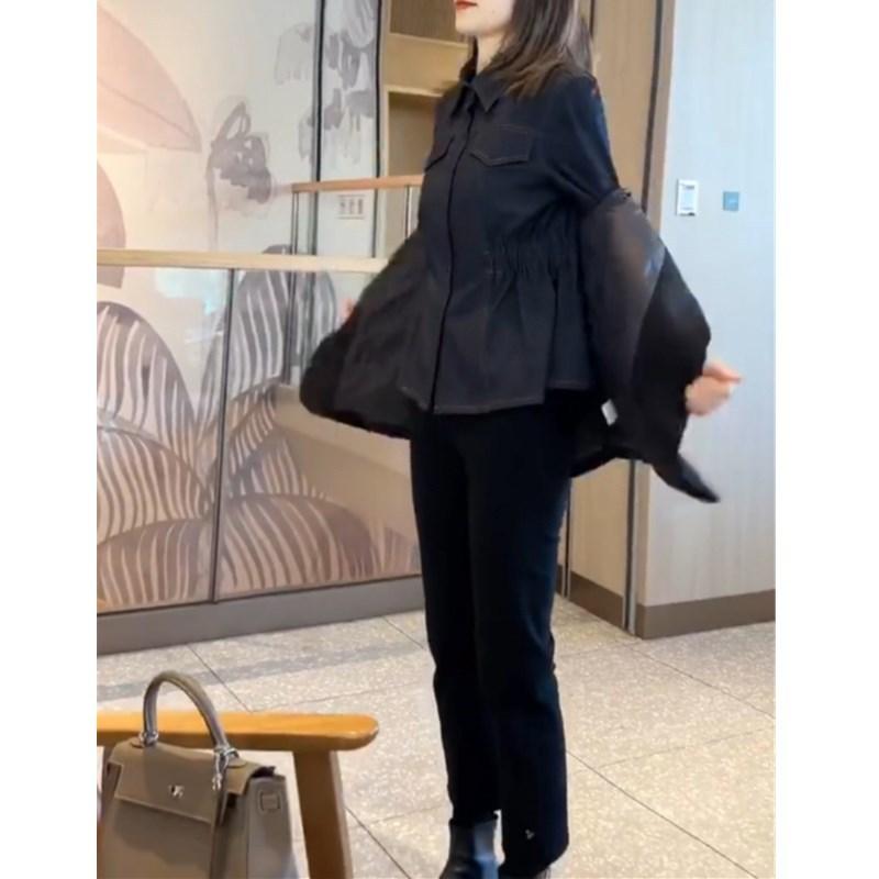 22935 Gran Amor Meiyuan 2025 Primavera Nuevo Camisa de Mezclilla Chaqueta Pequeña para Mujer Cintura Adelgazante Estilo Occidental