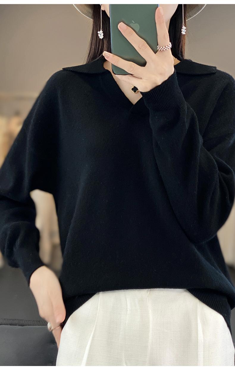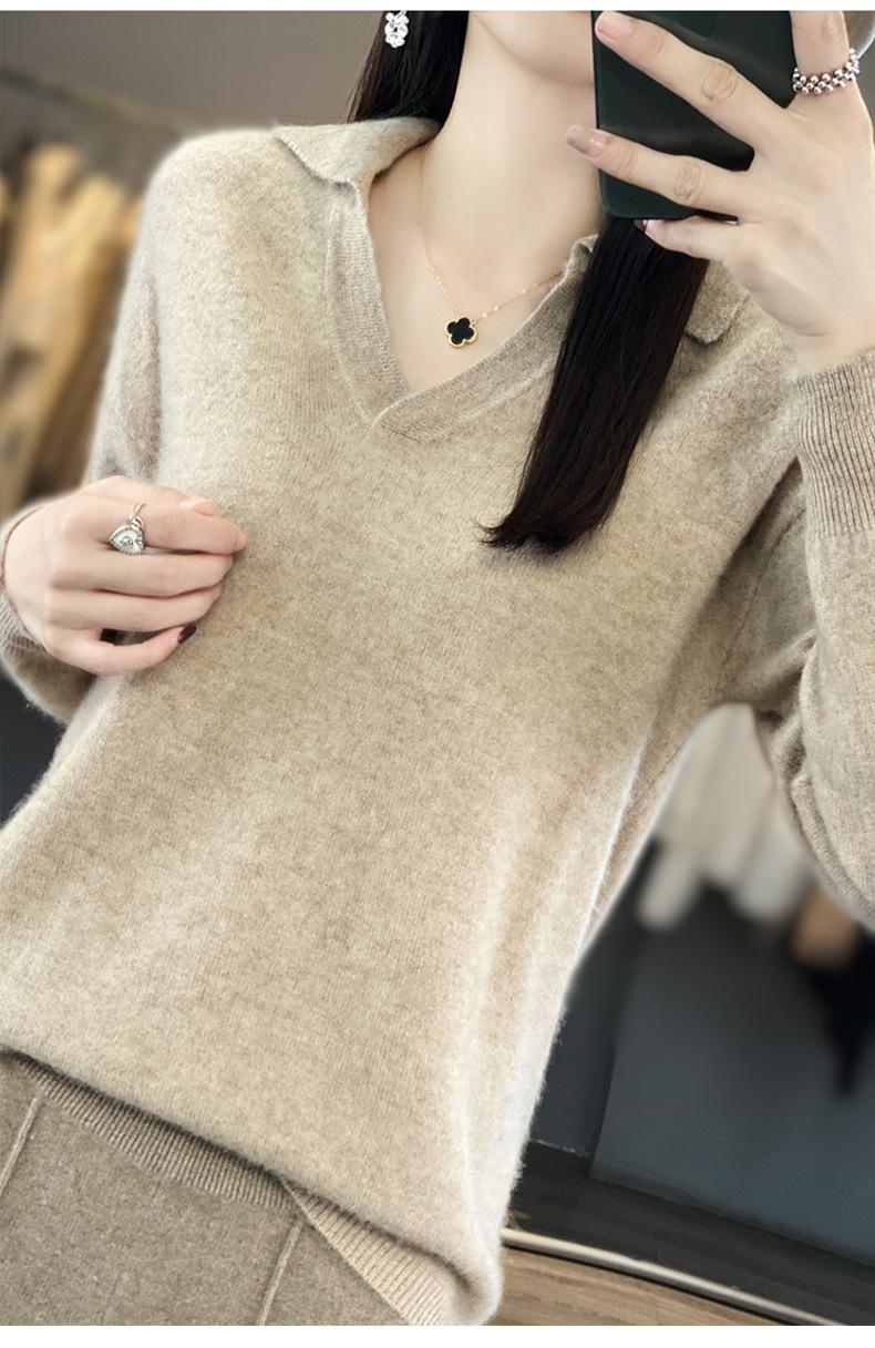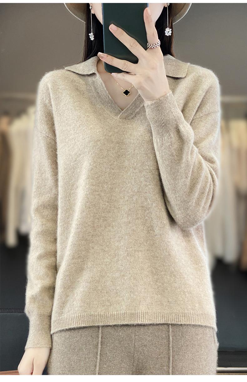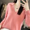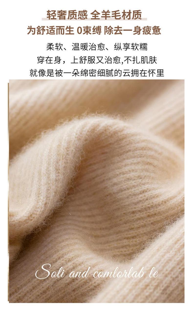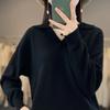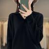 Suéter de lana 100% para mujer, suéter holgado de cuello alto, color sólido, grueso, de manga larga, de punto, para otoño e invierno