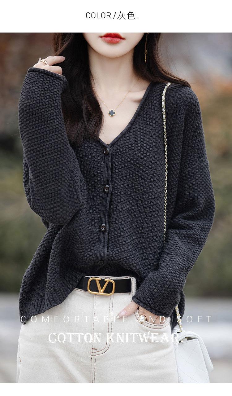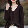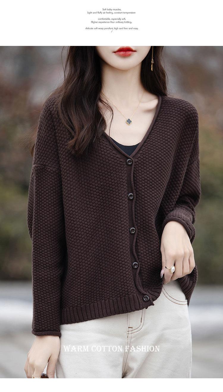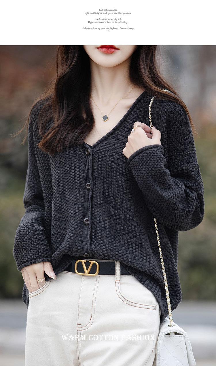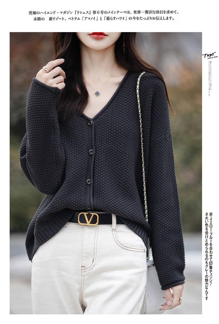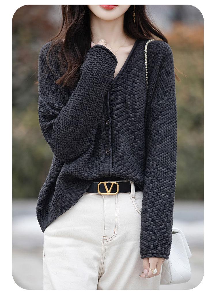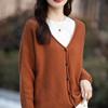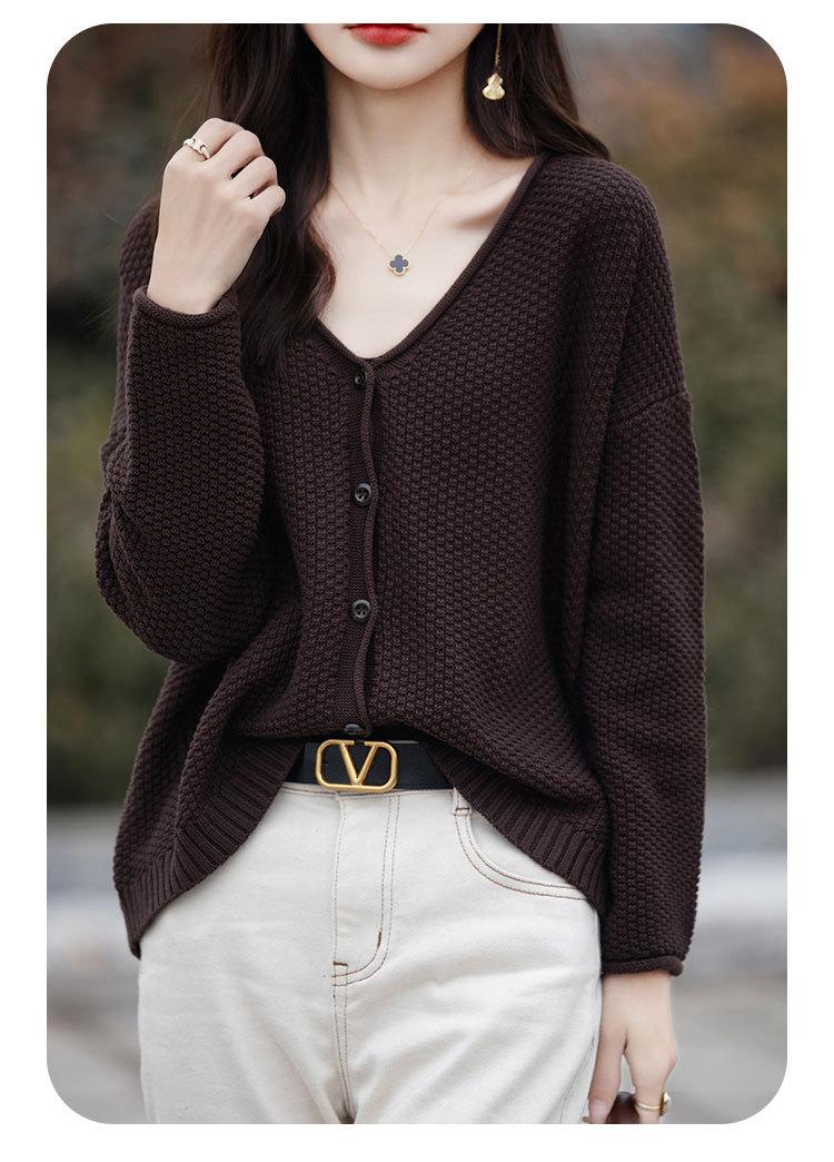 Cárdigan de punto de color sólido con cuello en V, sencillo y holgado, estilo coreano, para mujer, primavera 2024, abrigo de algodón cómodo e informal, moda